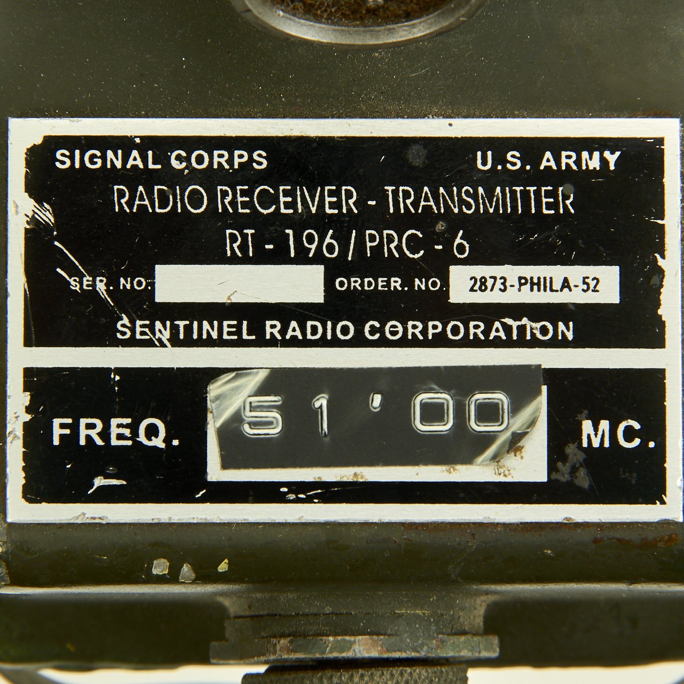 Original Item: Only One Available. This is very nice service used original Korean War Era U.S. Signal Corps RT-196/PRC-6 Radio Receiver Transmitter Walkie Talkie. This equipment has not been tested by IMA but we were told it is functional. However, we will not guarantee functionality.