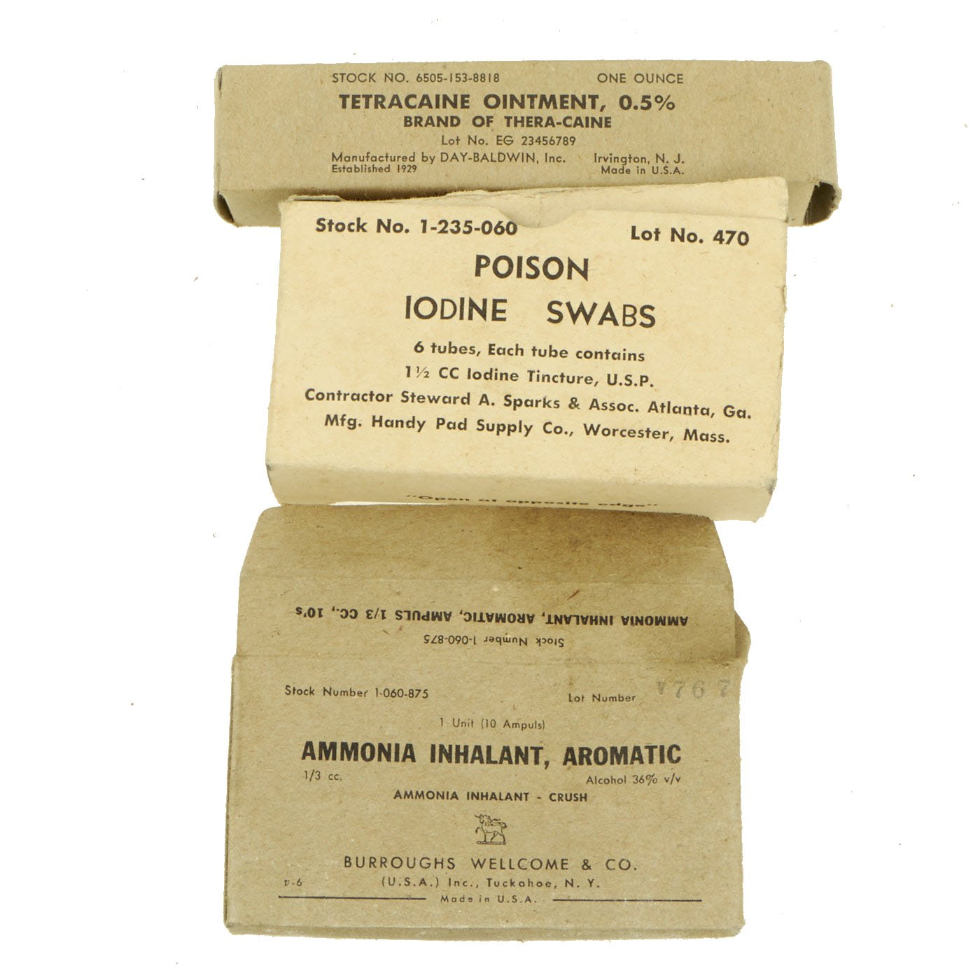 The internal containers are offered in good to very condition with a capacity of 1.5 gallons of food per container. Therefore, all three containers can hold 4.5 gallons. Inside one of the containers is a variety of first aid supplies, mostly bandages. Please consult photographs for further details.