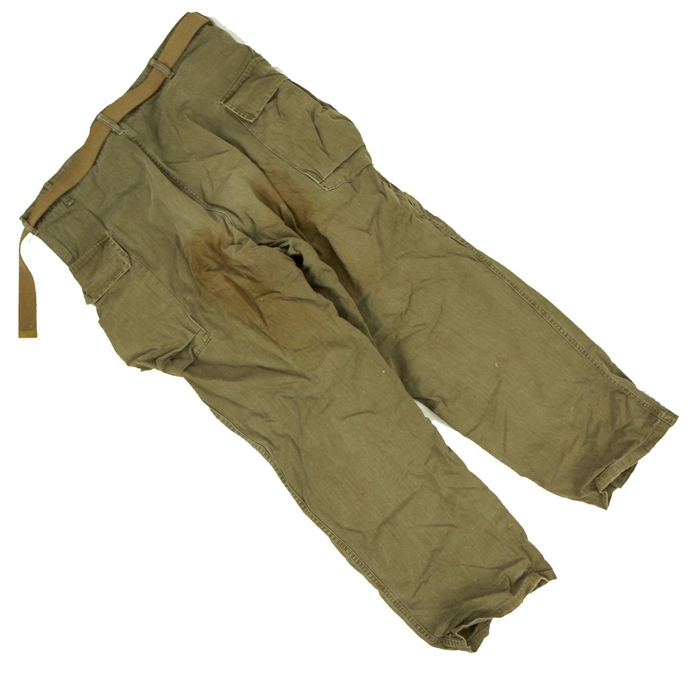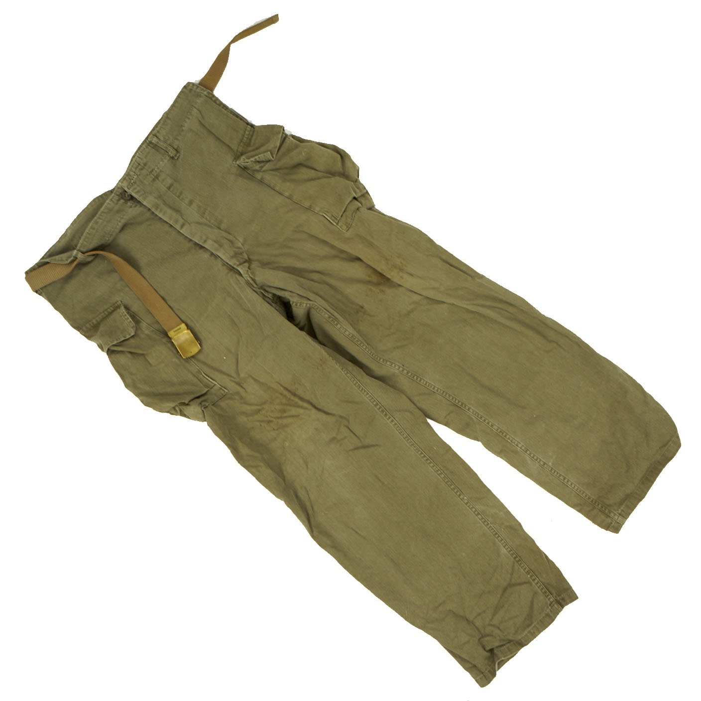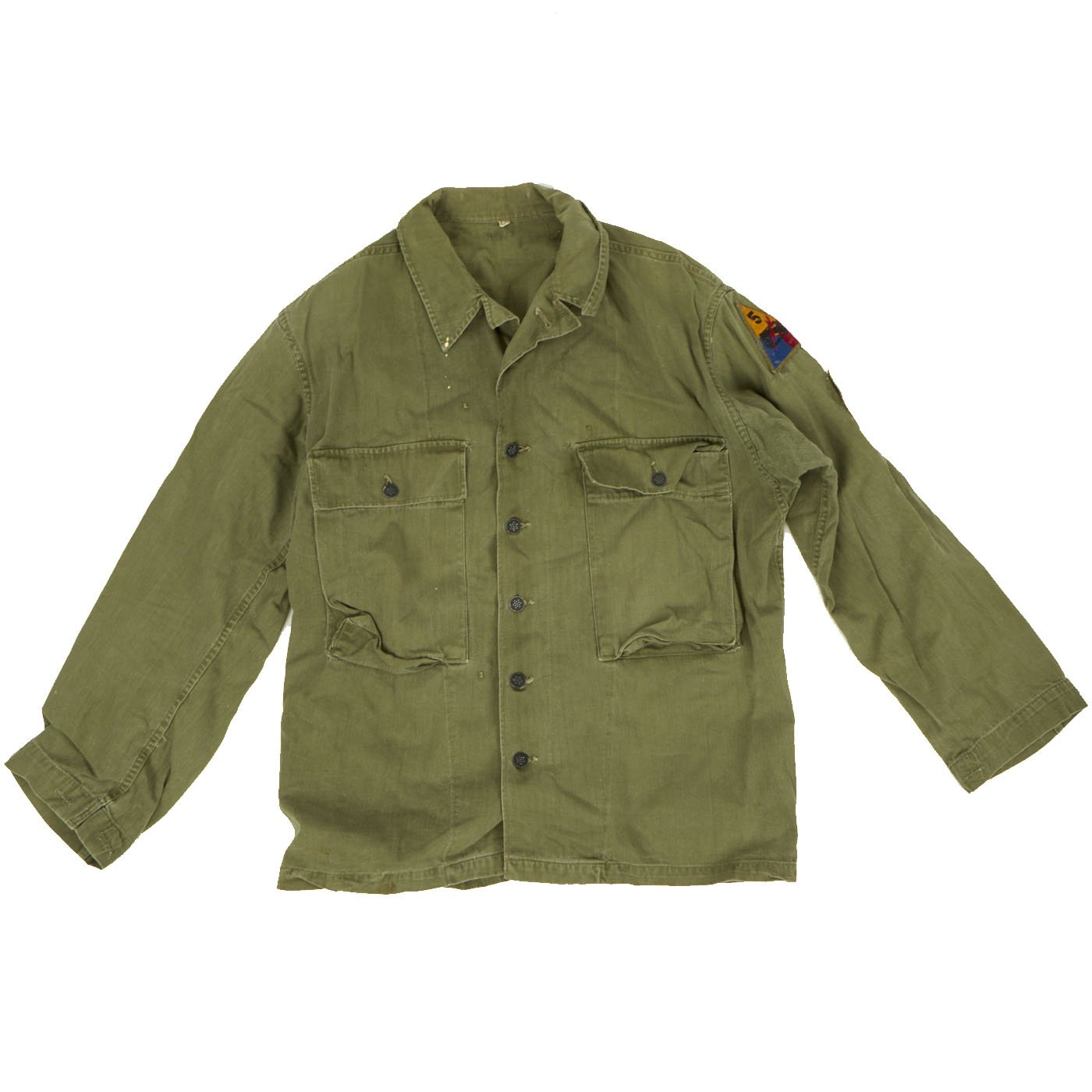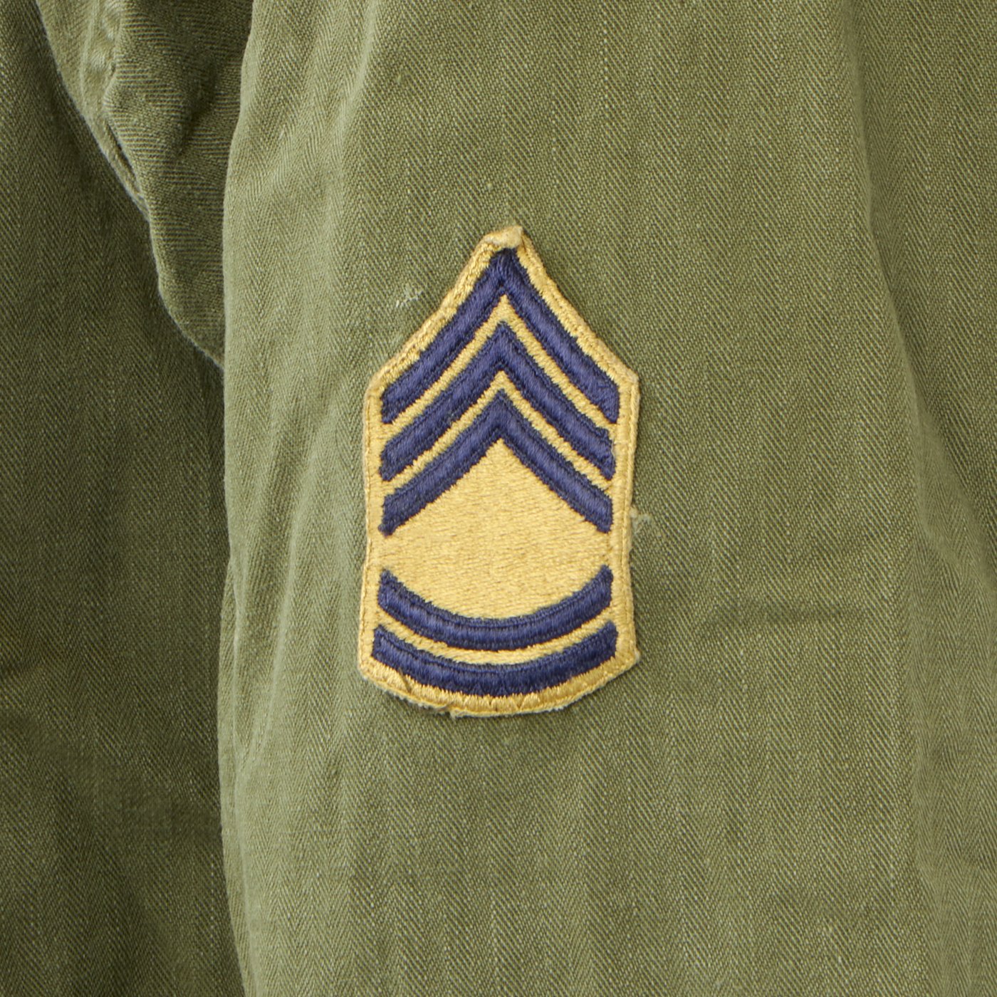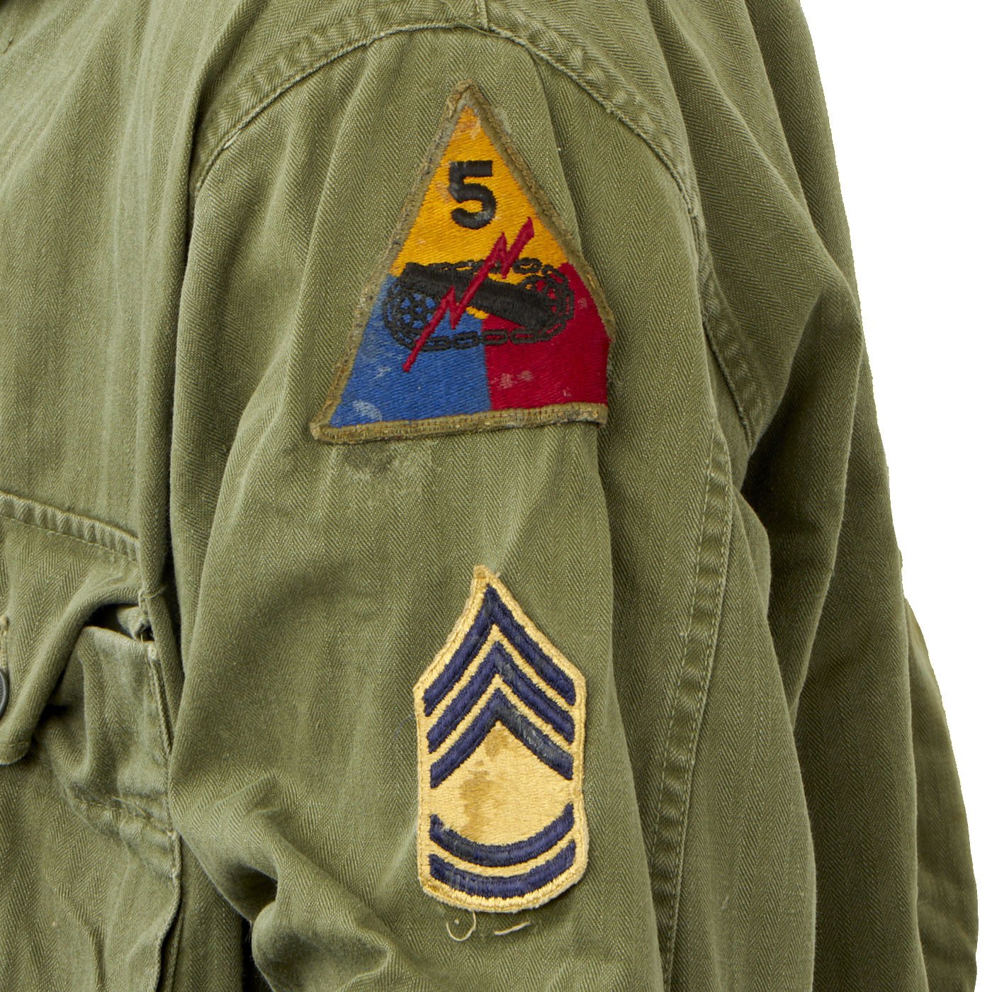 - Original Items: Only One Set Available. This set consists of a United States Army Korean War era Herring Bone Twill jacket and trousers (size 34/32) uniform set. The jacket (Size 40) features a 5th Armored Division patch and sergeant chevrons. Also included is a M38 tanker helmet in size 7 1/4 manufactured by Spalding. One ear flap has become separated from the helmet but is included.