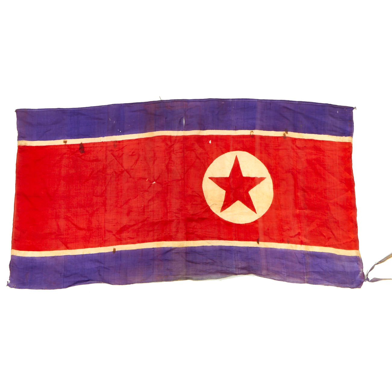 Original Item: Only One Available. The flag of North Korea, also known as the Ramhongsaek Konghwagukgi (Korean: 람홍색공화국기; literally "blue and red-colored flag of the republic"), consists of a central red panel, bordered both above and below by a narrow white stripe and a broad blue stripe. The central red panel bears a five-pointed red star within a white circle near the hoist.