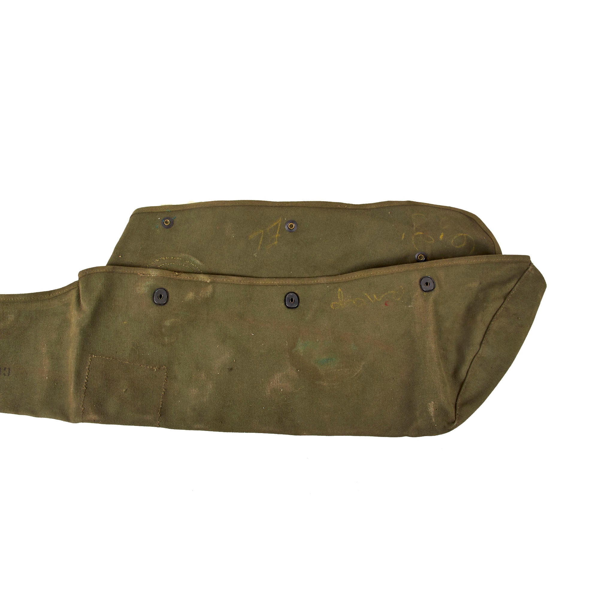 Original Item: Only One Available. This is a lovely Korean War Era USGI M13 Canvas cover for the 1919A4 Browning Machine Gun. It is in the correct OD Green #7 color introduced late in WWII, and possibly could be WWII remarked, but is most likely Korean War era production. The M1919A4 was in service for decades, and saw extensive use in WWII and Korea, and continued in service through the 1960s. These covers were designed to protect the gun while in transport, and even have a leather "boot" on the bottom to accommodate the pintle when it is attached. It also provides some nice protection when the gun is on the tripod.