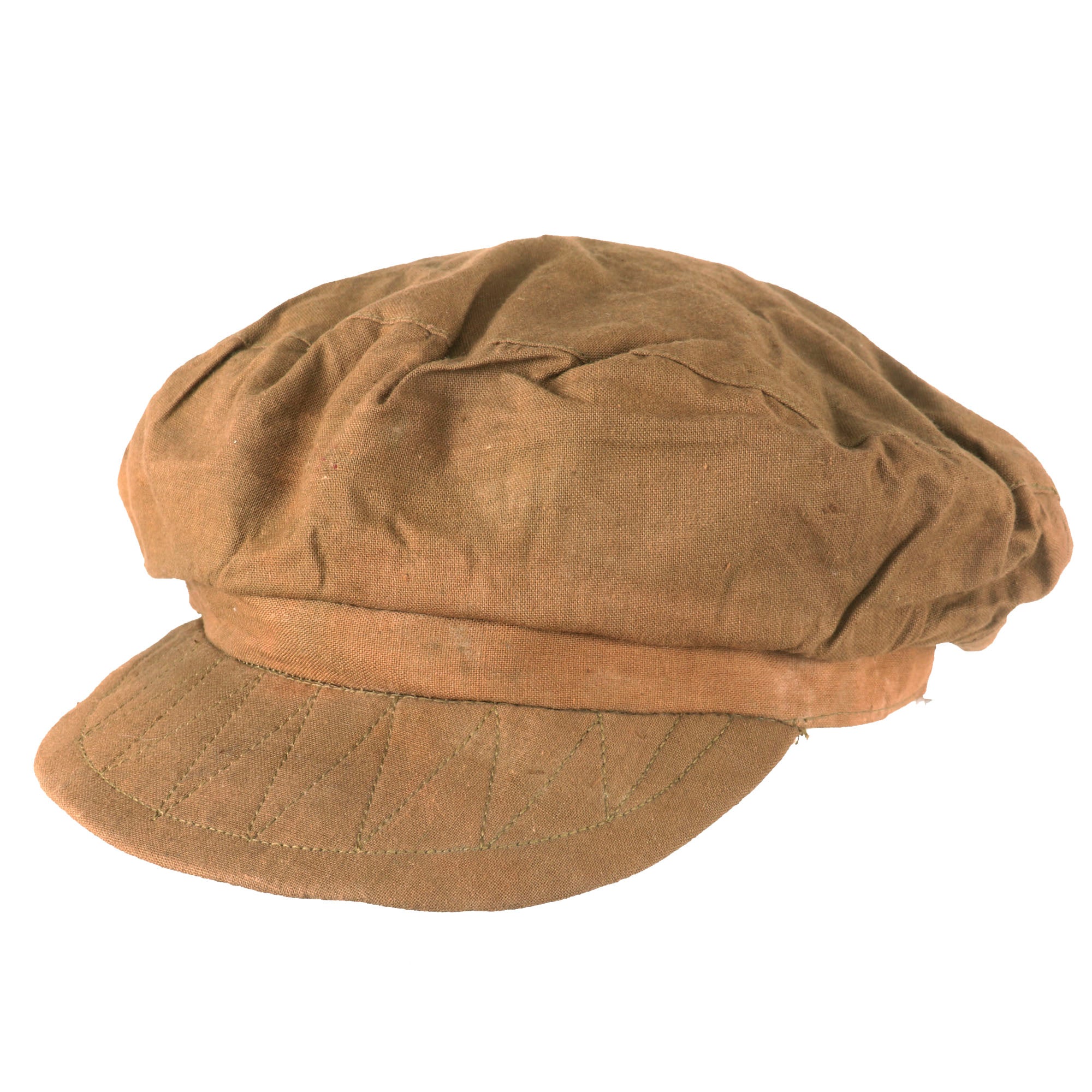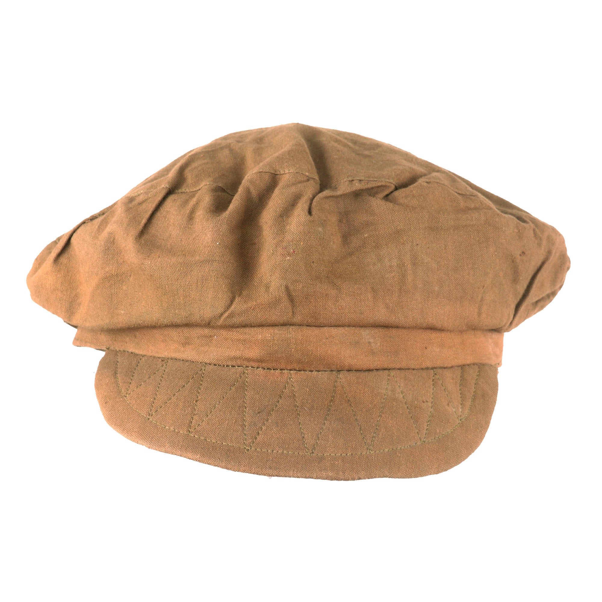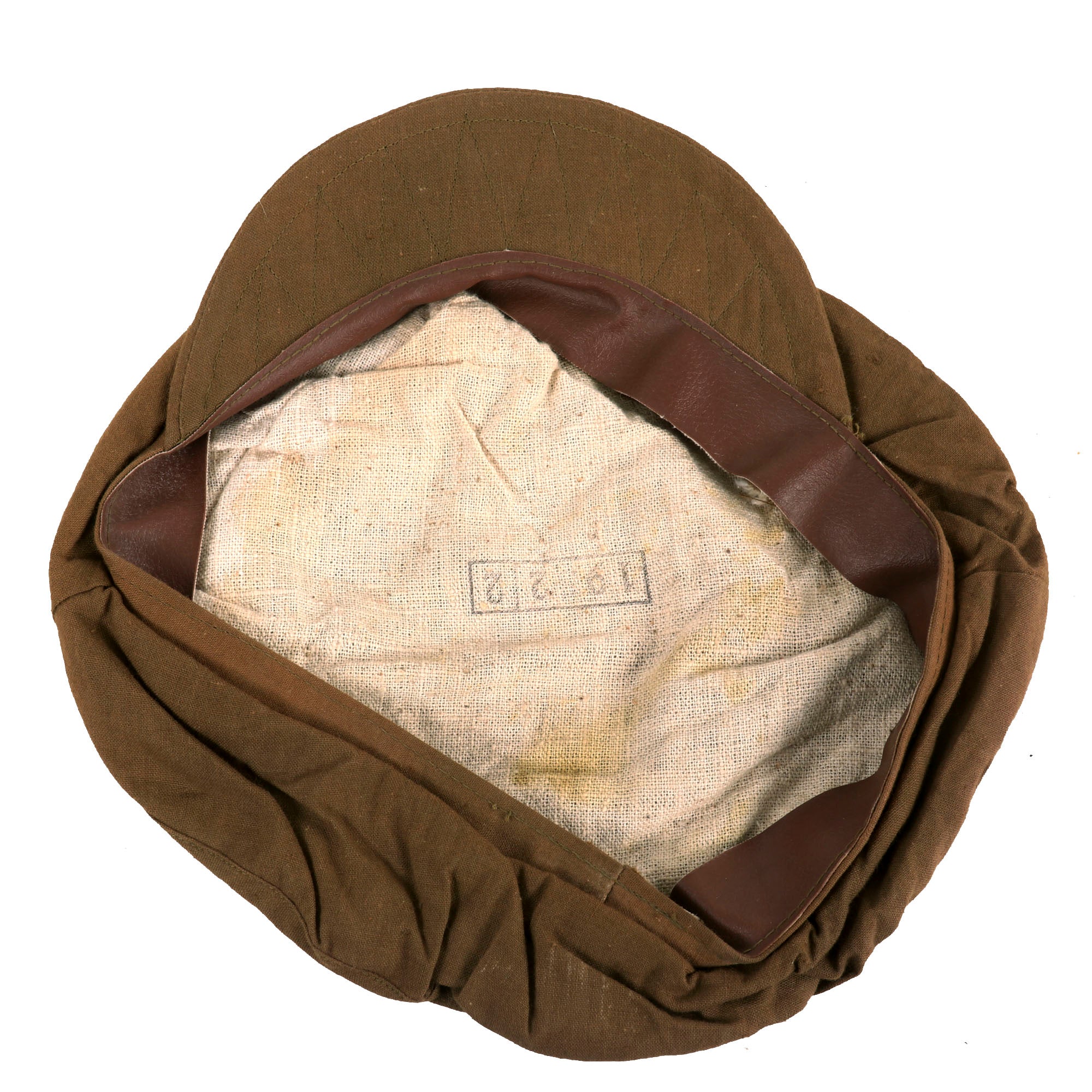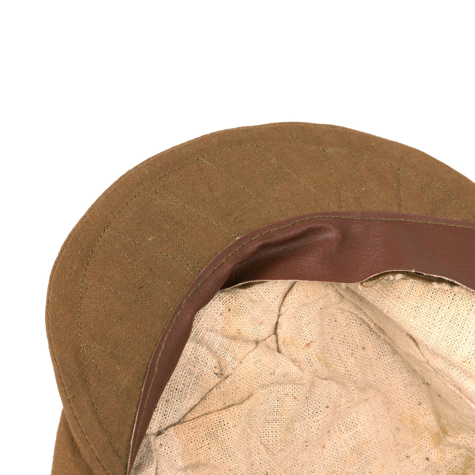 Original Item: Only One Available. This is a lovely Type 50 style summer cap as used by Chinese forces during the Korean War. The cap is of a non-rigid style and khaki in color. There are no serious wear, blemishes or cosmetic issues. Unlike most we see, there is still a faint 1952-2 issue date stamped in black on the interior! It has the correct zig-zag stitching running across the front brim, with a nice faux leather sweatband. Size is approximately 57cm / US 7 1/8.