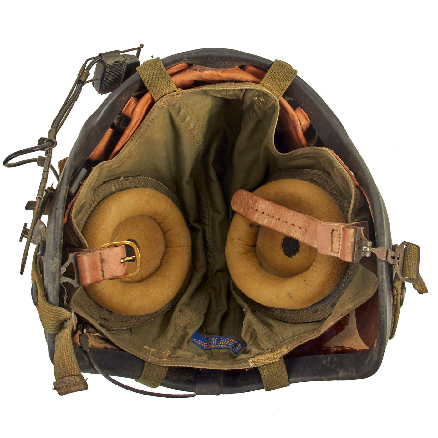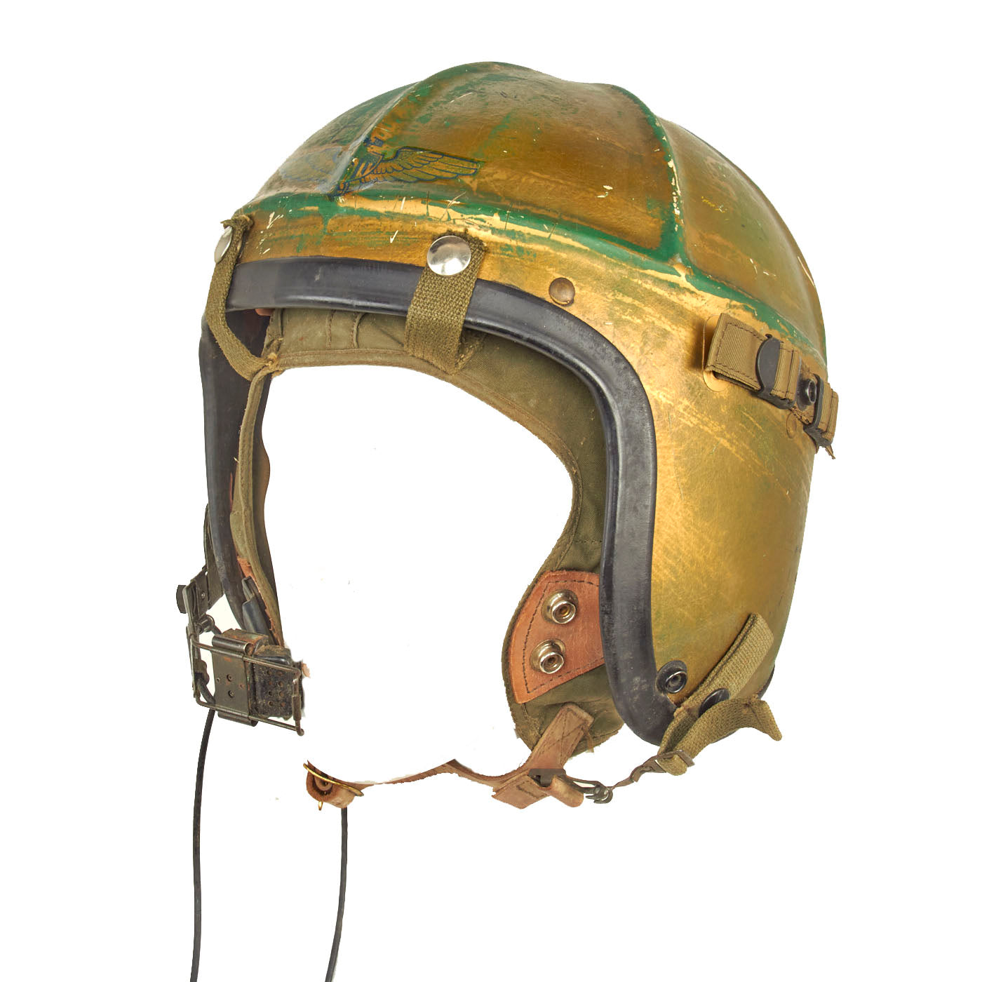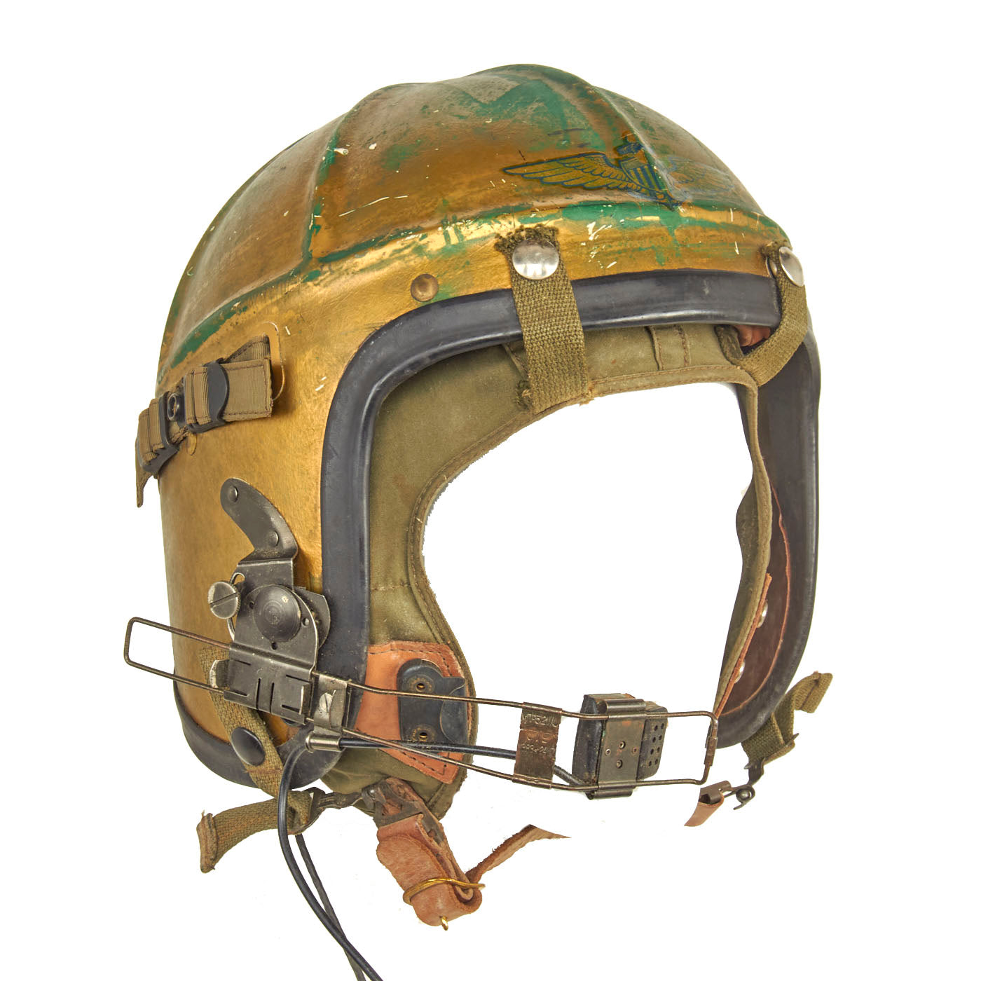 Original Items: Only One Available. This is an excellent condition, 1950s USN size “X-LARGE” Gentex H-3 helmet that comes complete with an internal cloth helmet “EX-LARGE” which contains the ear phones and boom mic. Helmet features original gold paint and USN / USMC Aviator wings to front. All parts are in very good to excellent condition. Also included is a wonderful helmet bag which has the pilot’s name rank and branch on a leather name tag: