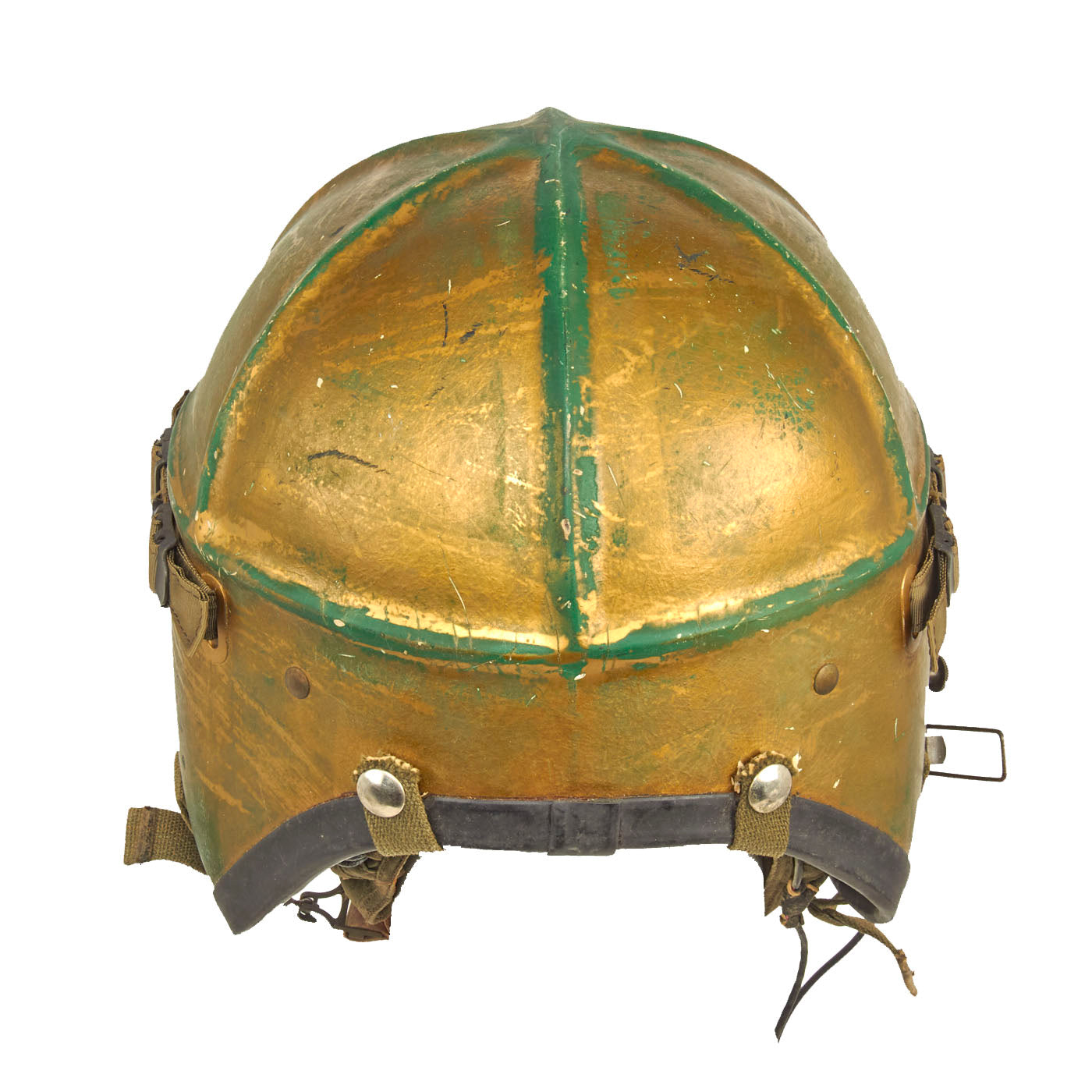 The helmets were painted gold because it was determined that this color provided efficient thermal protection against solar radiation. Other colors would have a tendency to make the helmet warm and therefore uncomfortable to the pilot. It was therefore recommended that no markings that covered larger areas of the helmet shells were applied.