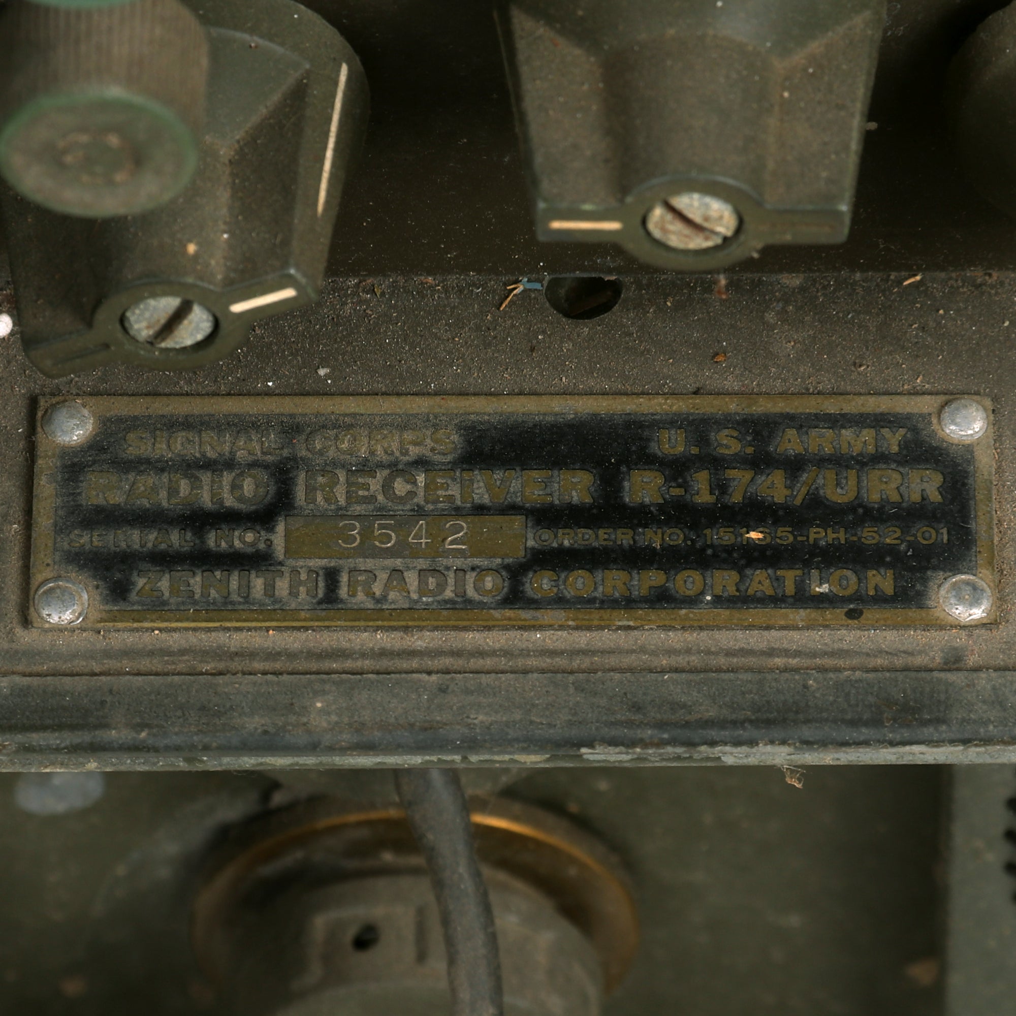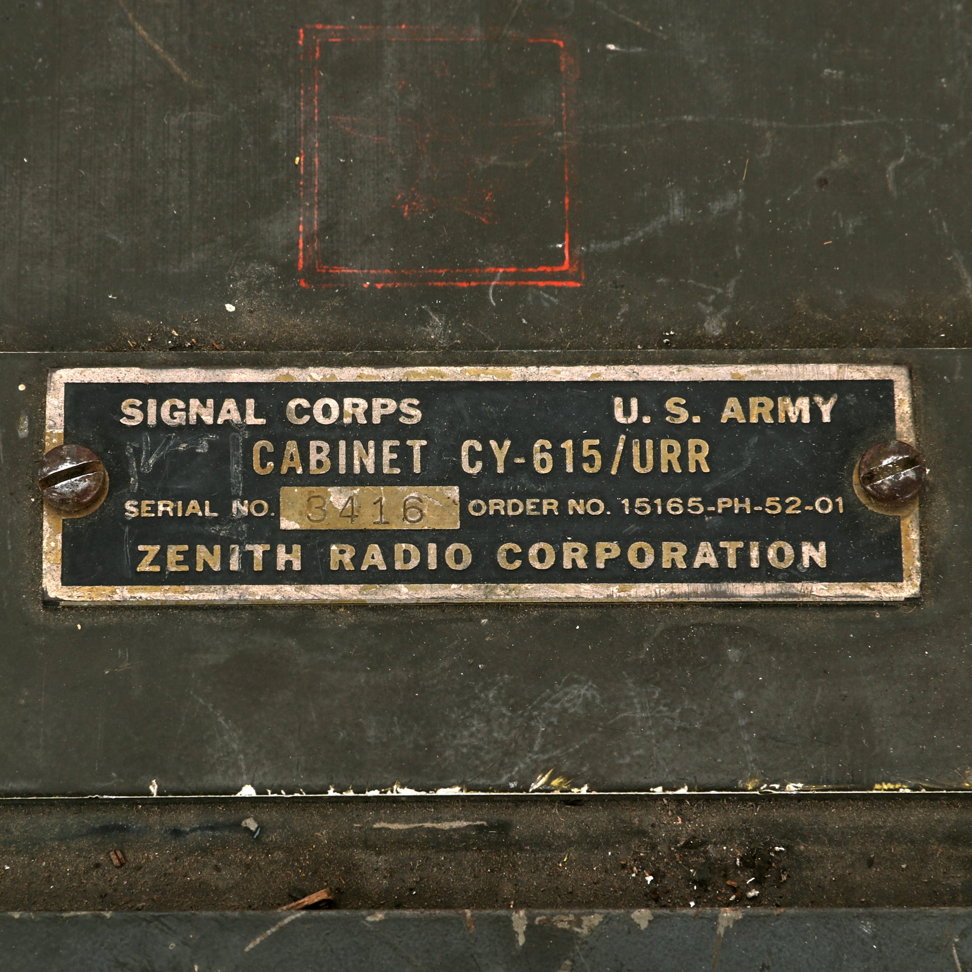 The radio set is composed of two chassis, namely the R-174/URR receiver and the PP-308/URR power supply. The cabinet, which has the model number CY-615/URR, consists of two compartments that house the components. The set is complete, and both the receiver and the power supply are present. Although the unit looks attractive, we cannot guarantee its functionality since we have no means of testing it. This item is being sold as a novelty display item only. It measures 15" H x 14 1/2"W x11" D, and weighs approximately 50lbs.