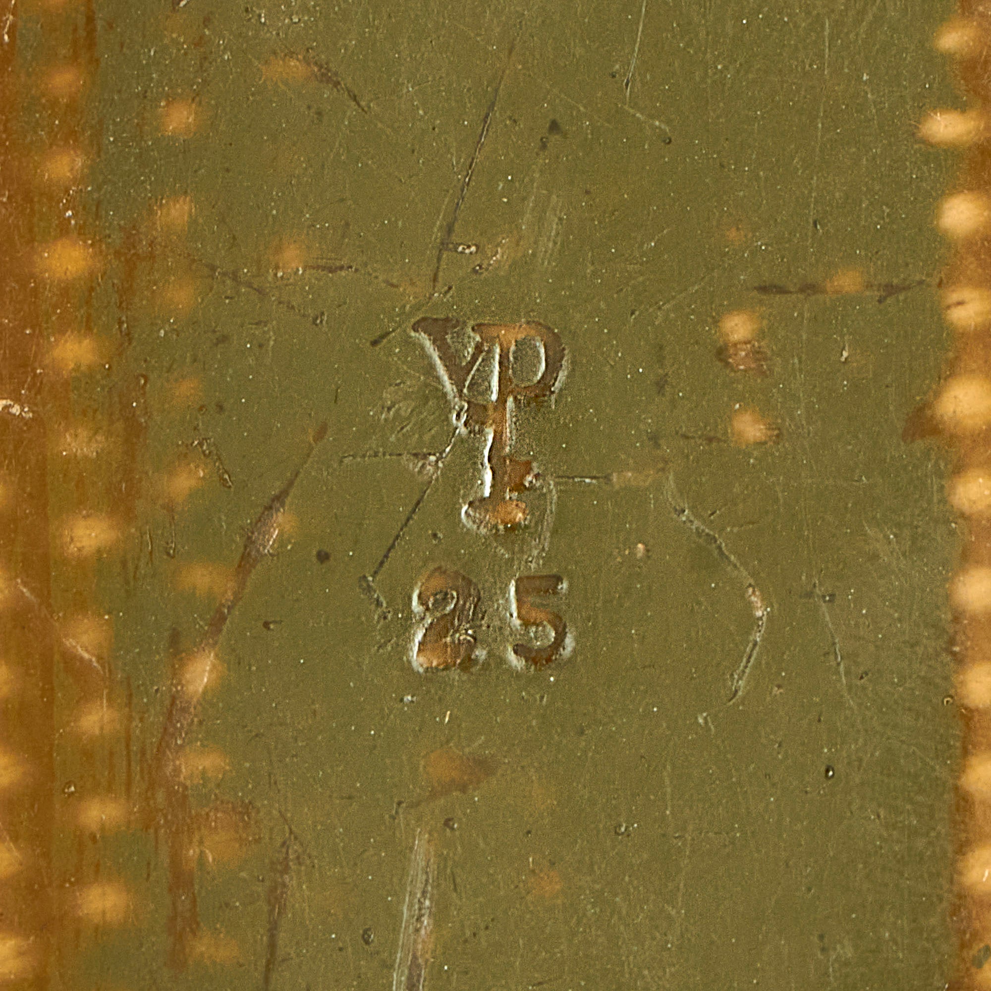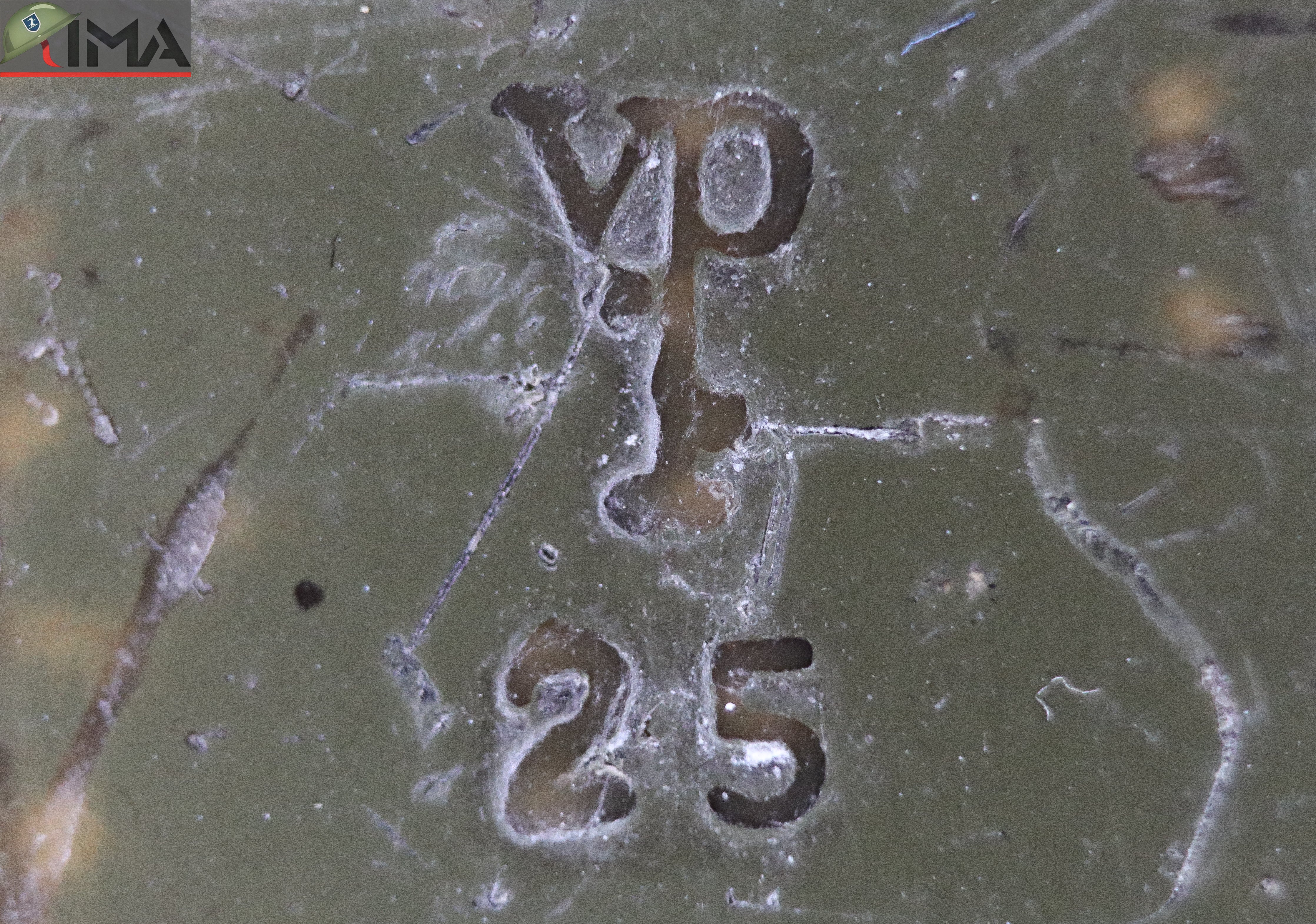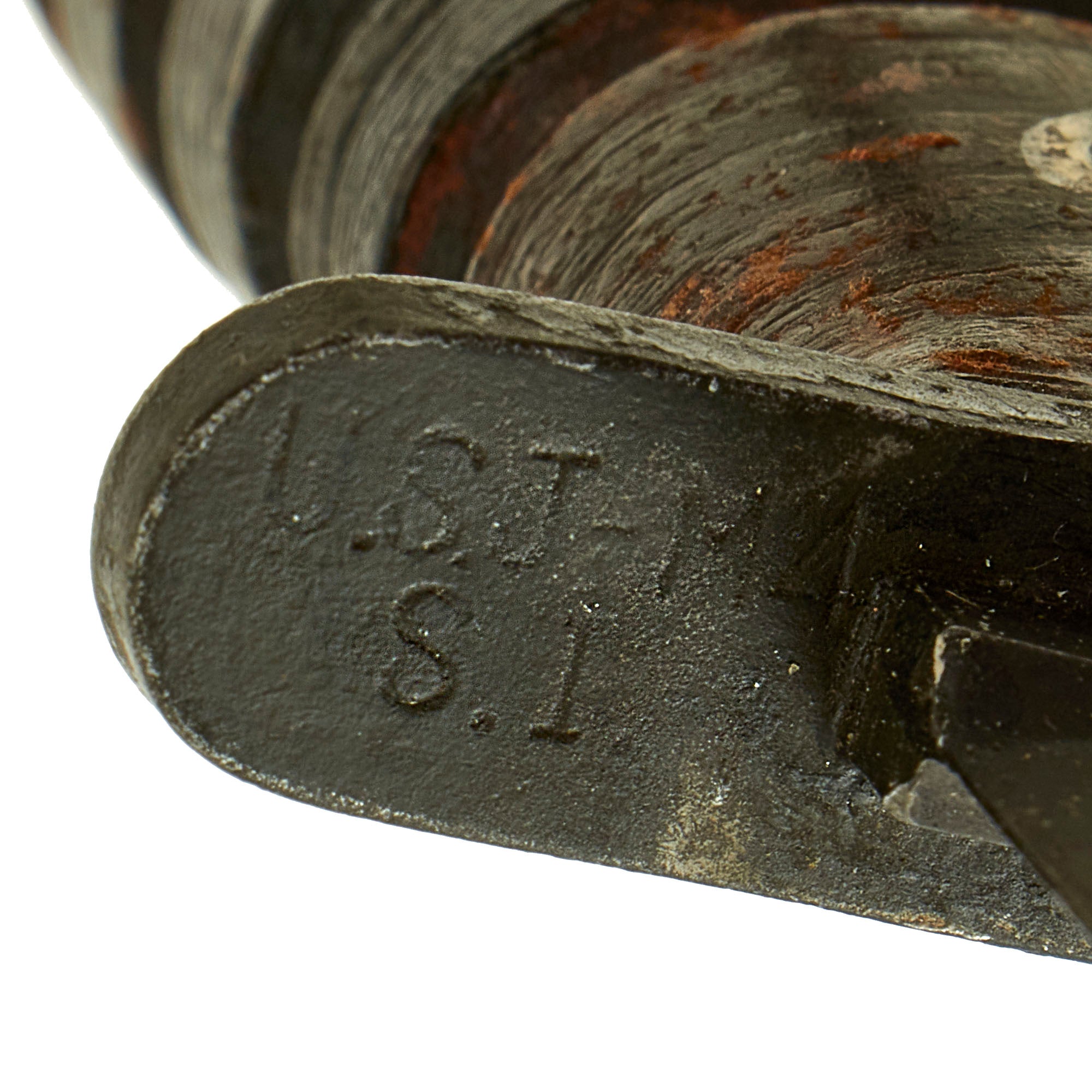 Comes with an OD green fiber scabbard marked U.S. M8 / B.M. CO. also offered in very nice condition. This design features a thermoplastic impregnated duck canvas body, metal throat, and canvas frog and securing strap with a steel pistol belt hook. The scabbard was manufactured by Beckwith Manufacturing Co, a division of Victory Plastics, whose stylized V P logo is also present on the scabbard body. The canvas is in great shape, as are the metal fittings and snap. The original parkerized finish on the throat is in very good condition.