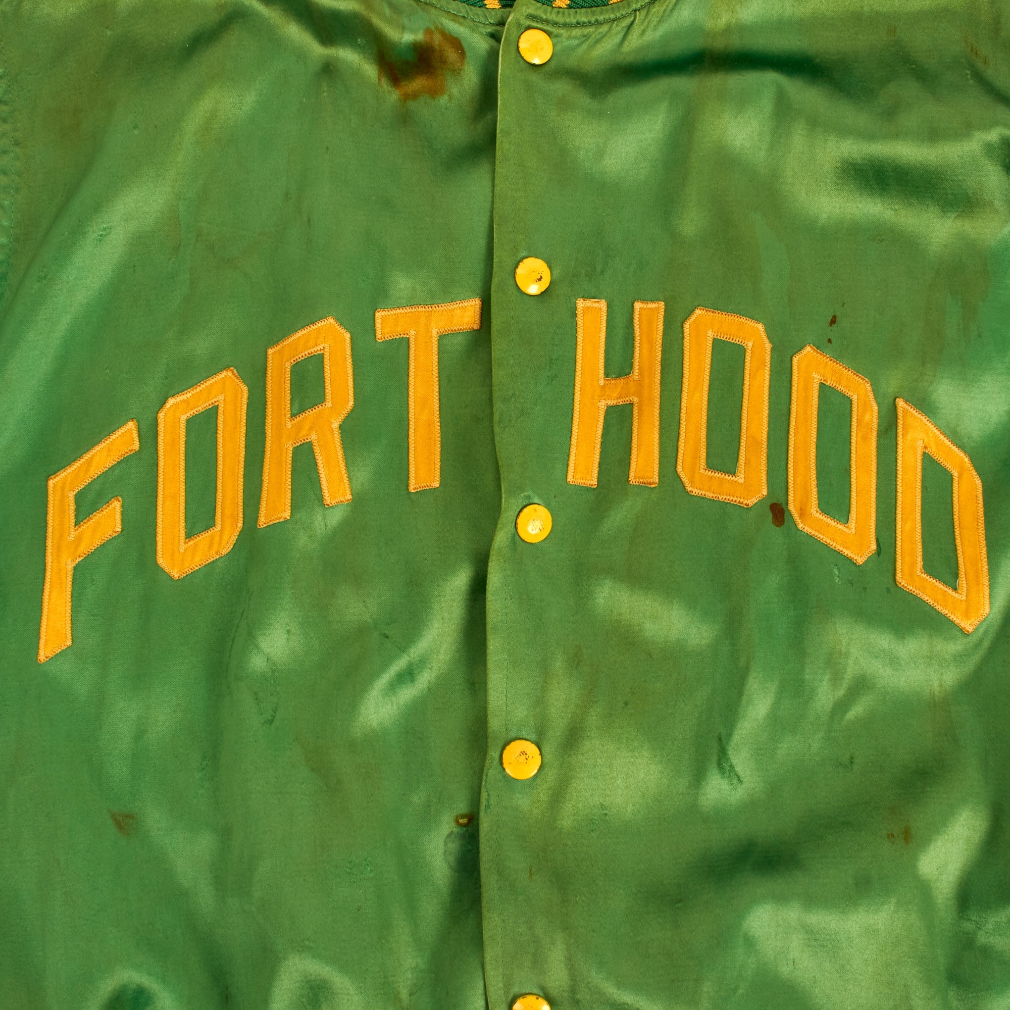 Original Item: Only One Available. Now this is a lovely US Army sports jacket! PT is a regular when it comes to Military life and competition is always an occurrence, so why not make it organized? This jacket originated from Fort Hood and was worn by a member of a Tanker unit, but as to which sport we are unsure. We believe the sport to possibly have been baseball, as its appearance looks very similar to baseball jackets of the time.