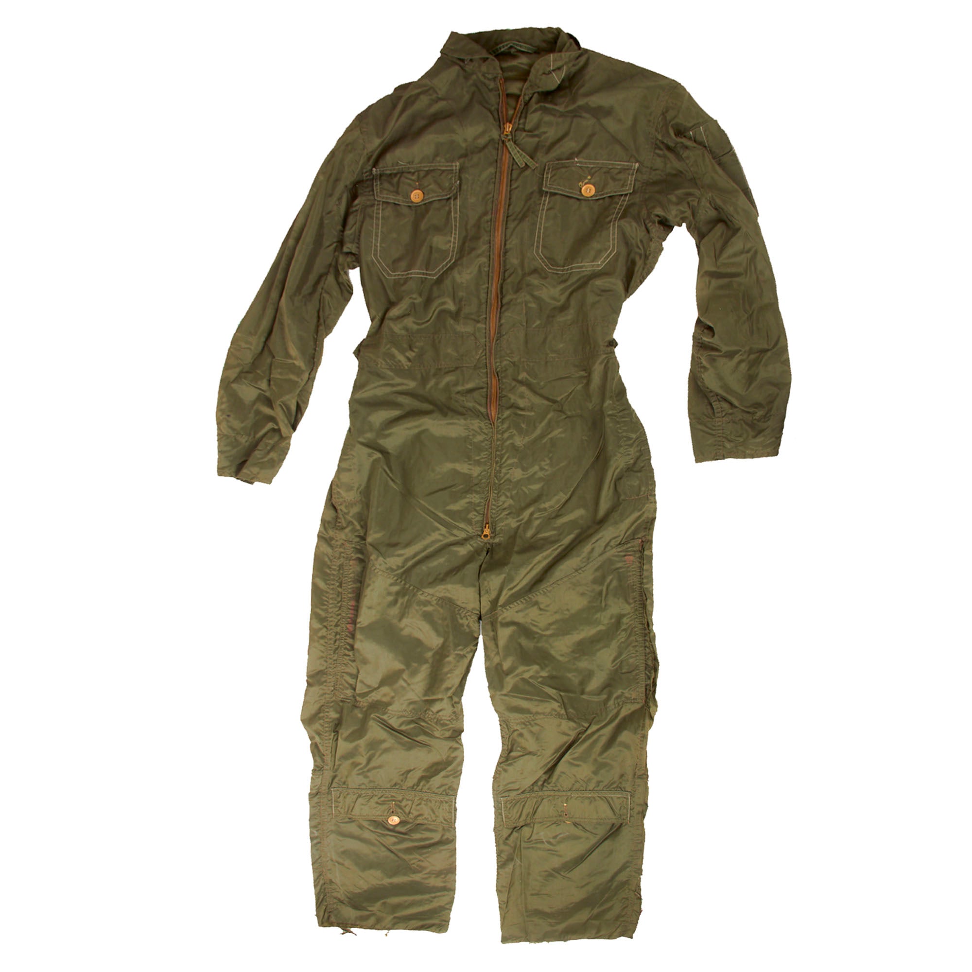 The nylon flightsuit is in good condition although there is some fraying of the material. The suit retains the tag: