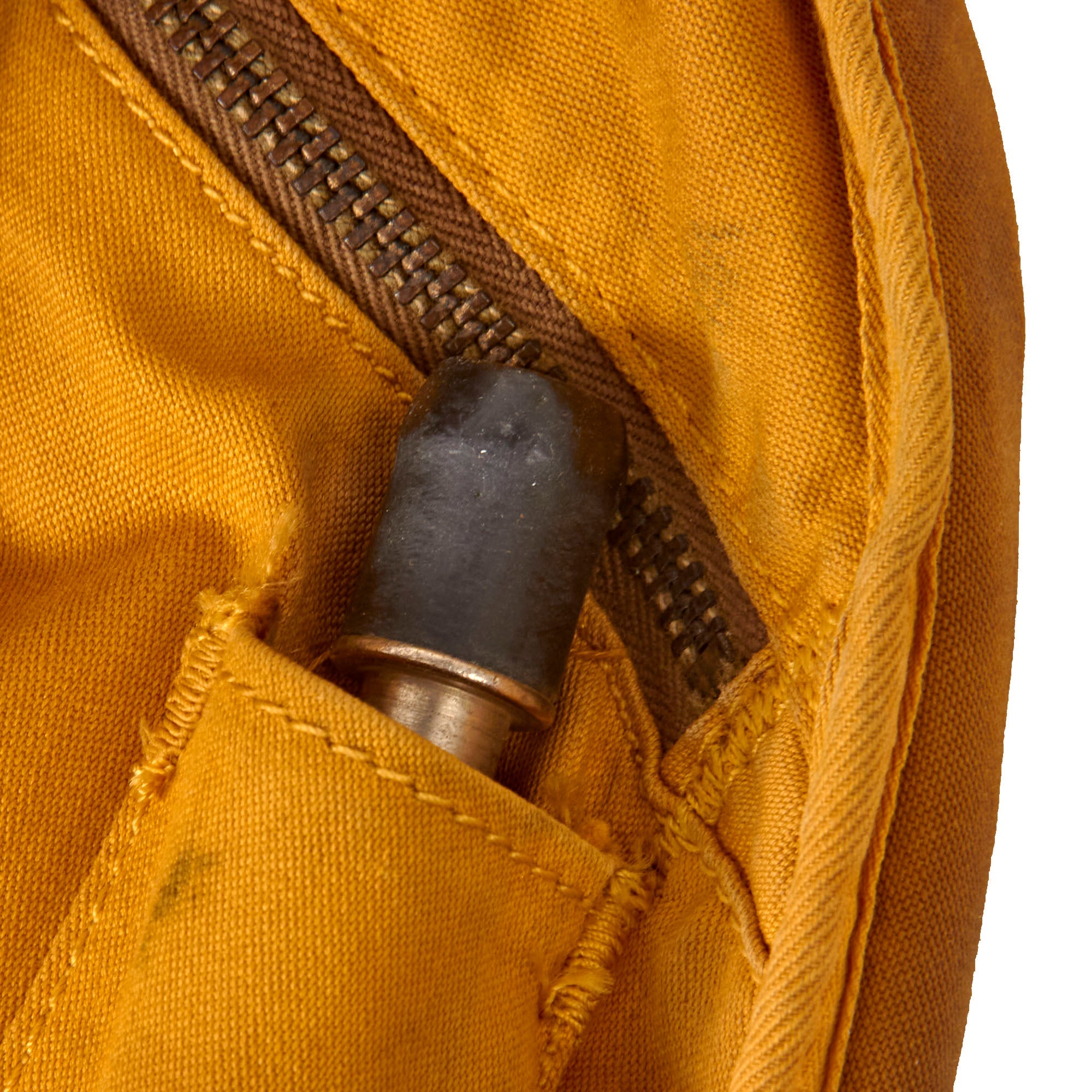 The zipper is in good shape, as are the snaps. The “Mae West” style flotation jacket is in good condition but there are no markings we could find, but one of the rubber inserts inside the jacket has a date of 1956, so still good for Korean War era issue.