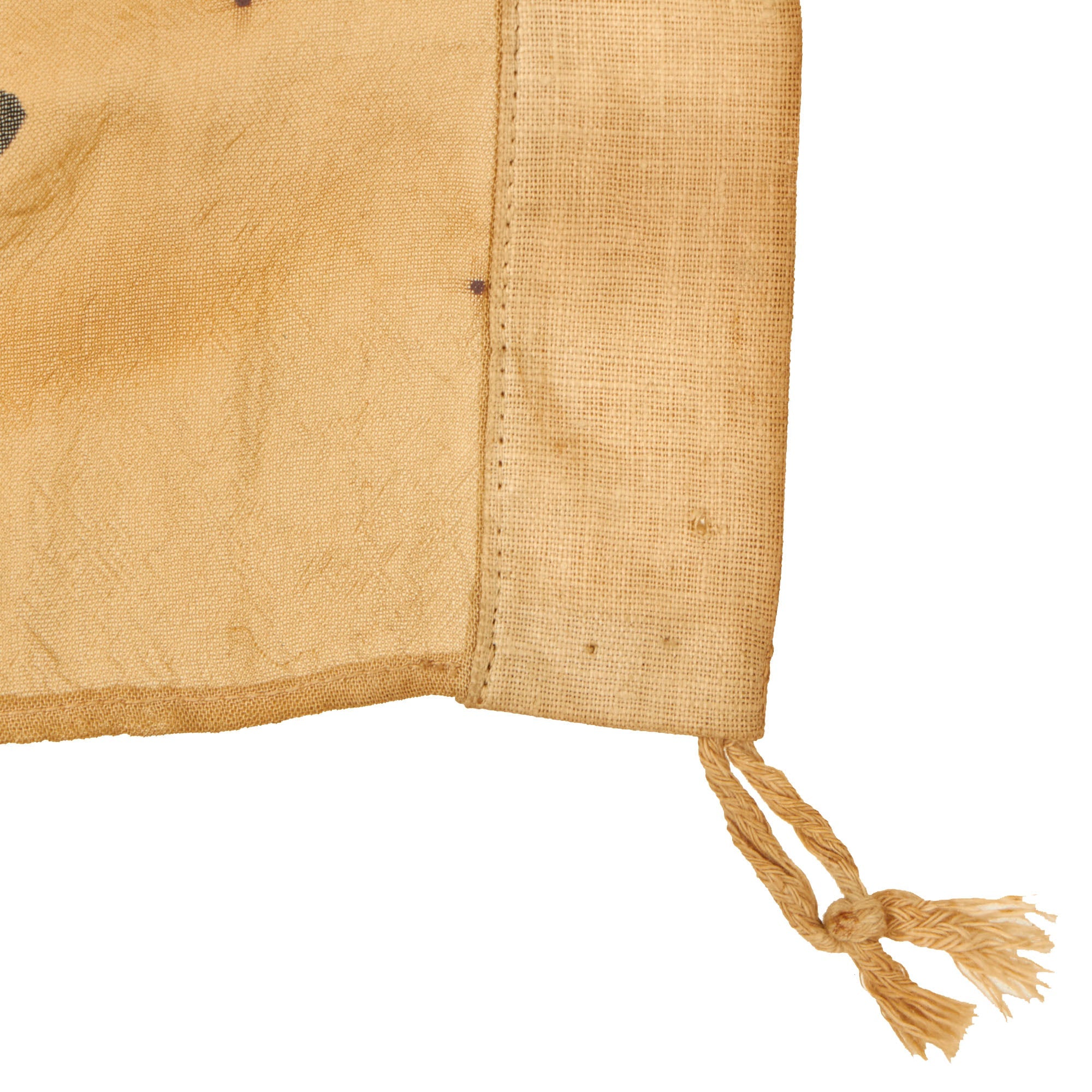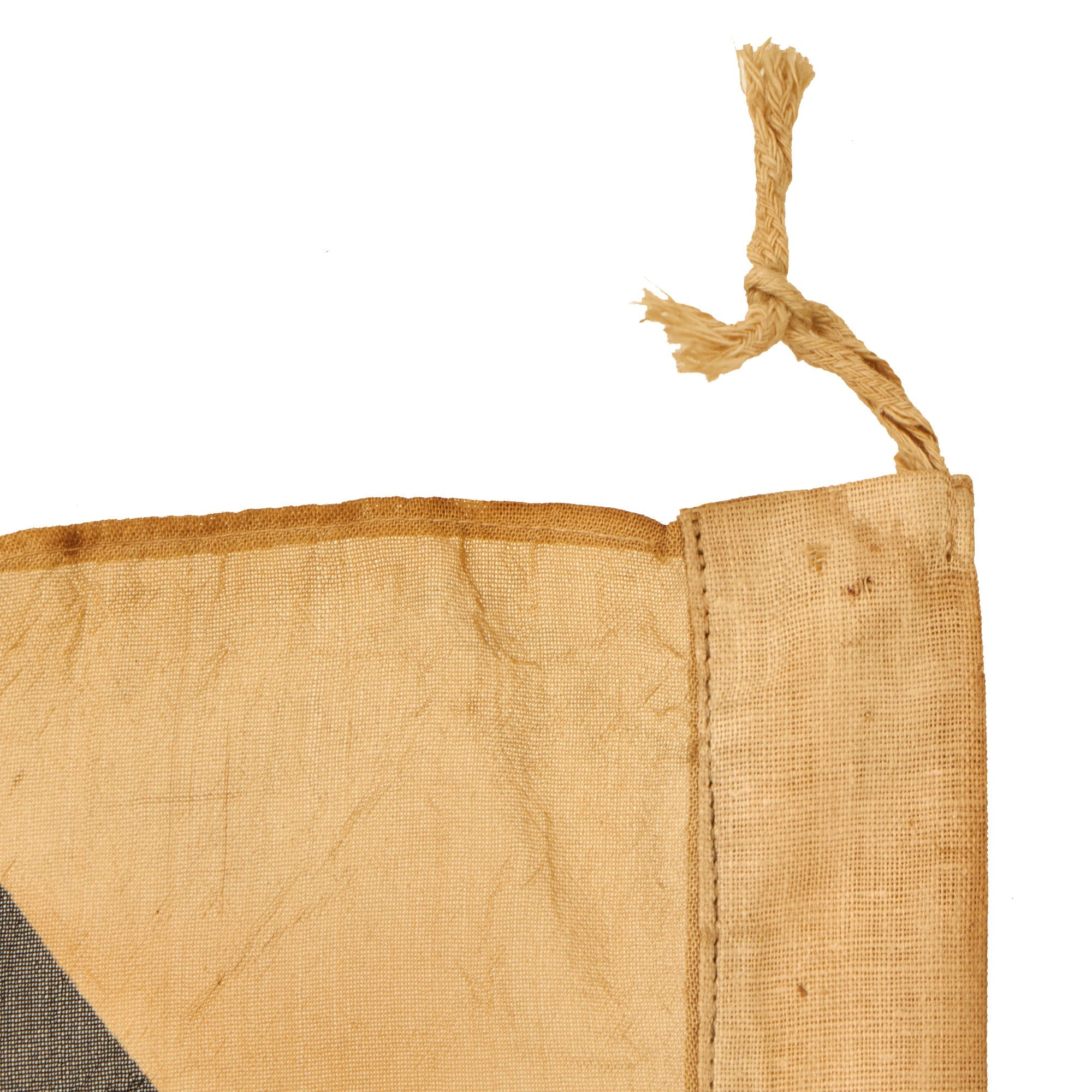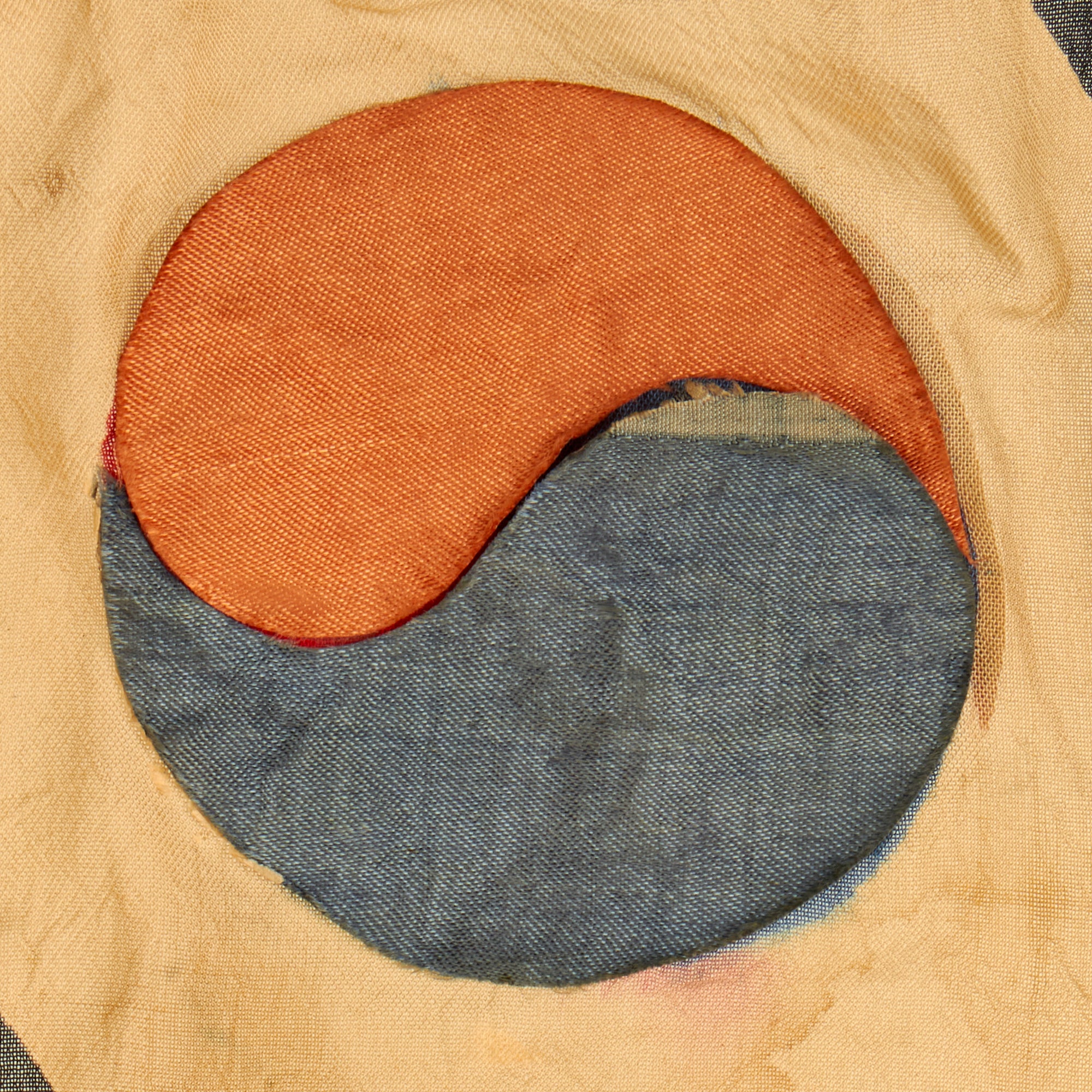This example of the Taegukgi is quite attractive. The black line insignia is printed on and is in great shape with usual creases from being folded. The multi-piece construction is very interesting.