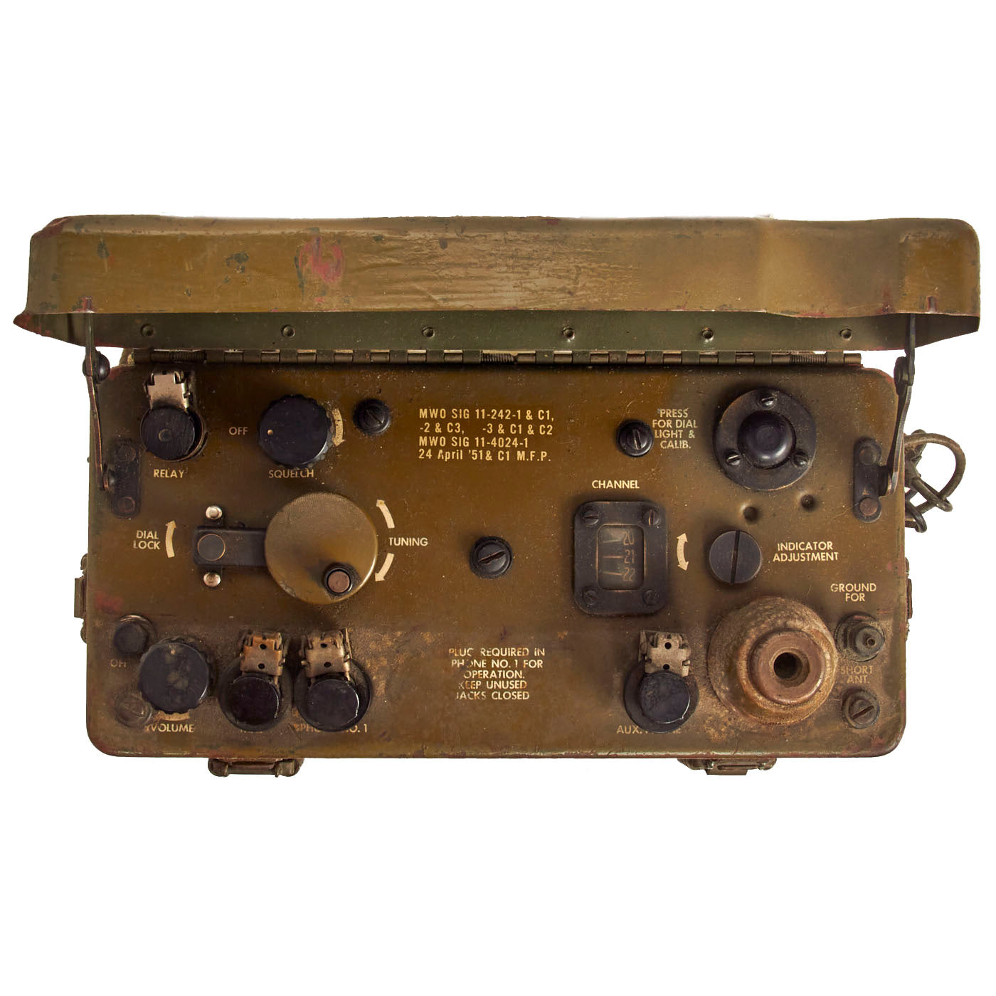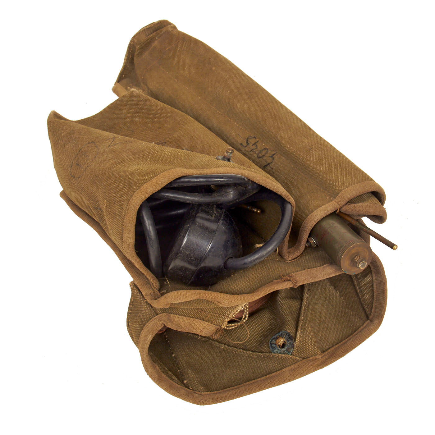 The tubes are intact and present. Knobs and jack covers present. Markings are in English meaning this is not a post war French version. Canvas is in good condition with just small signs of wear.