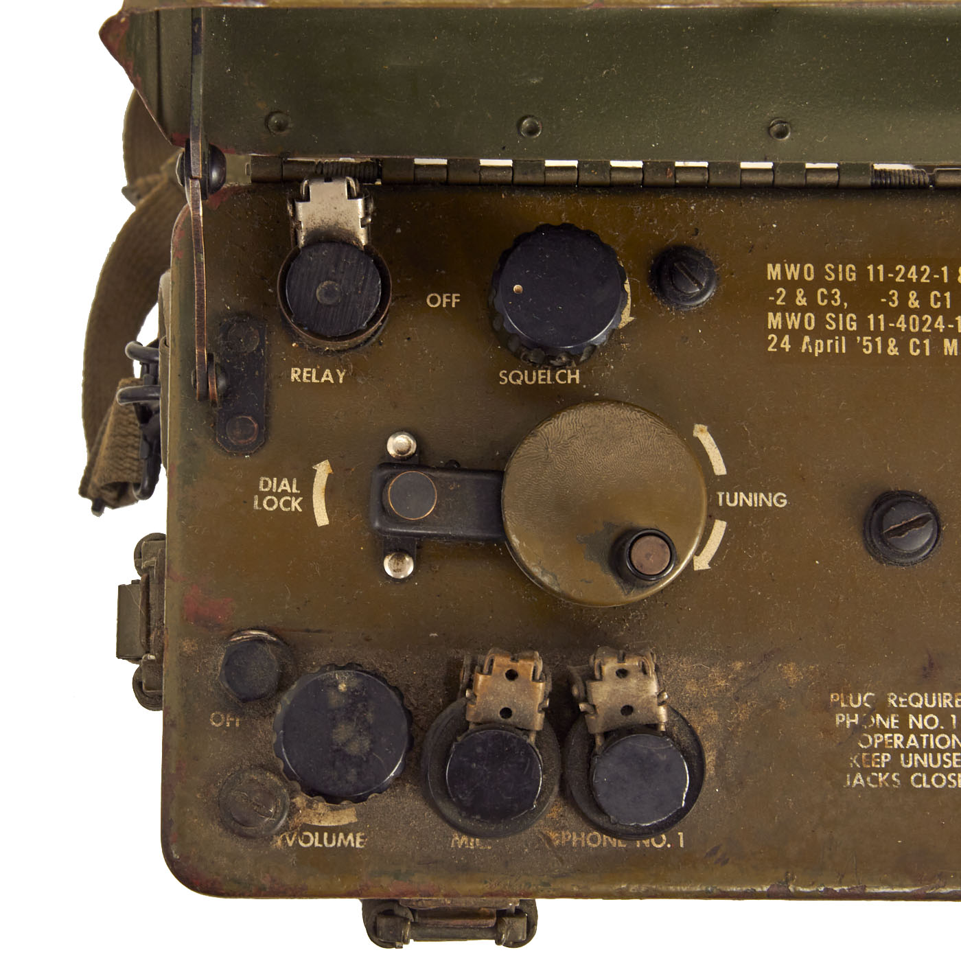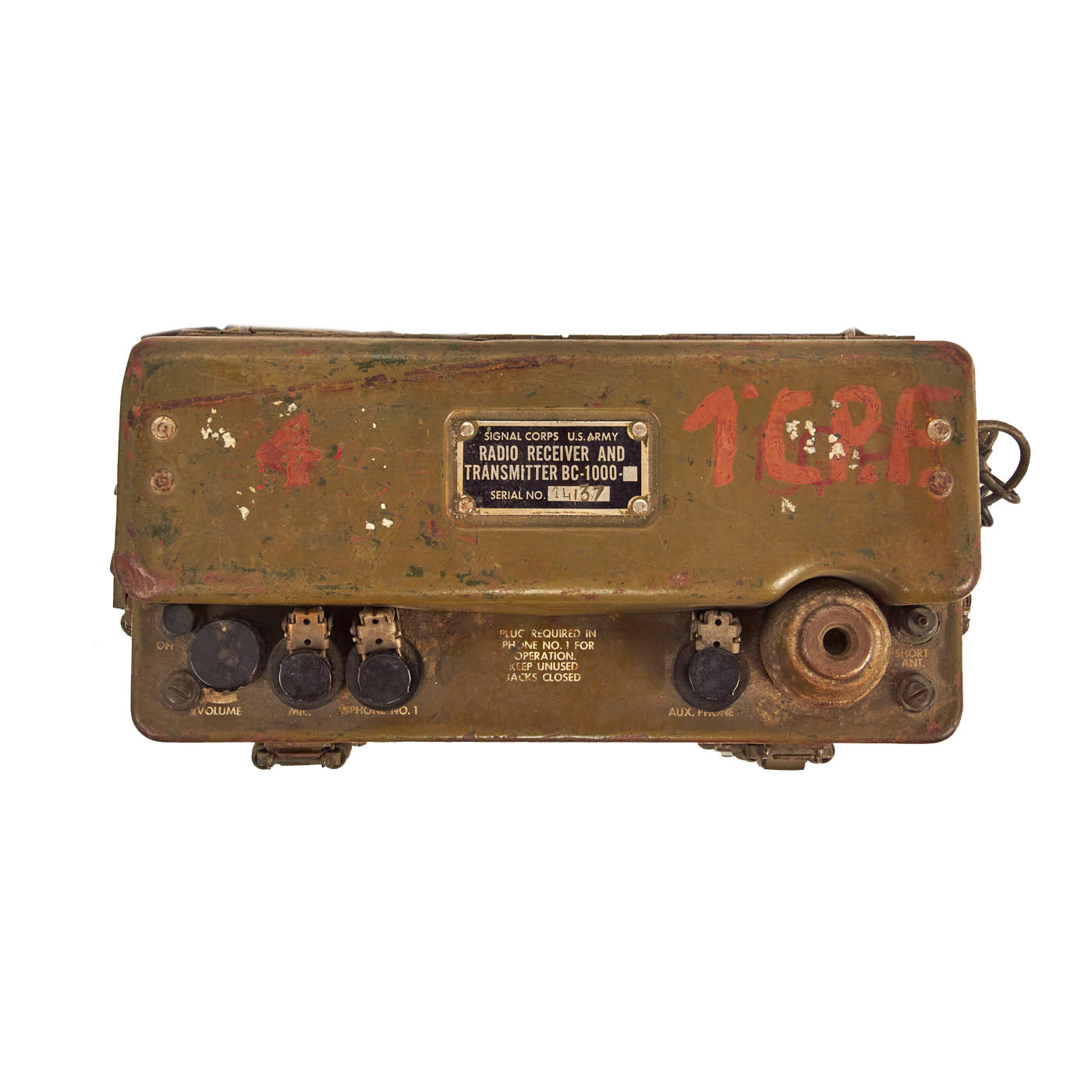 Original Item: Only One Available. This is a great condition, Korean War example of the BC-1000 Walkie Talkie radio set. All pieces are original USGI issue. The case latches are all original Post-WWII style spring loaded latches.