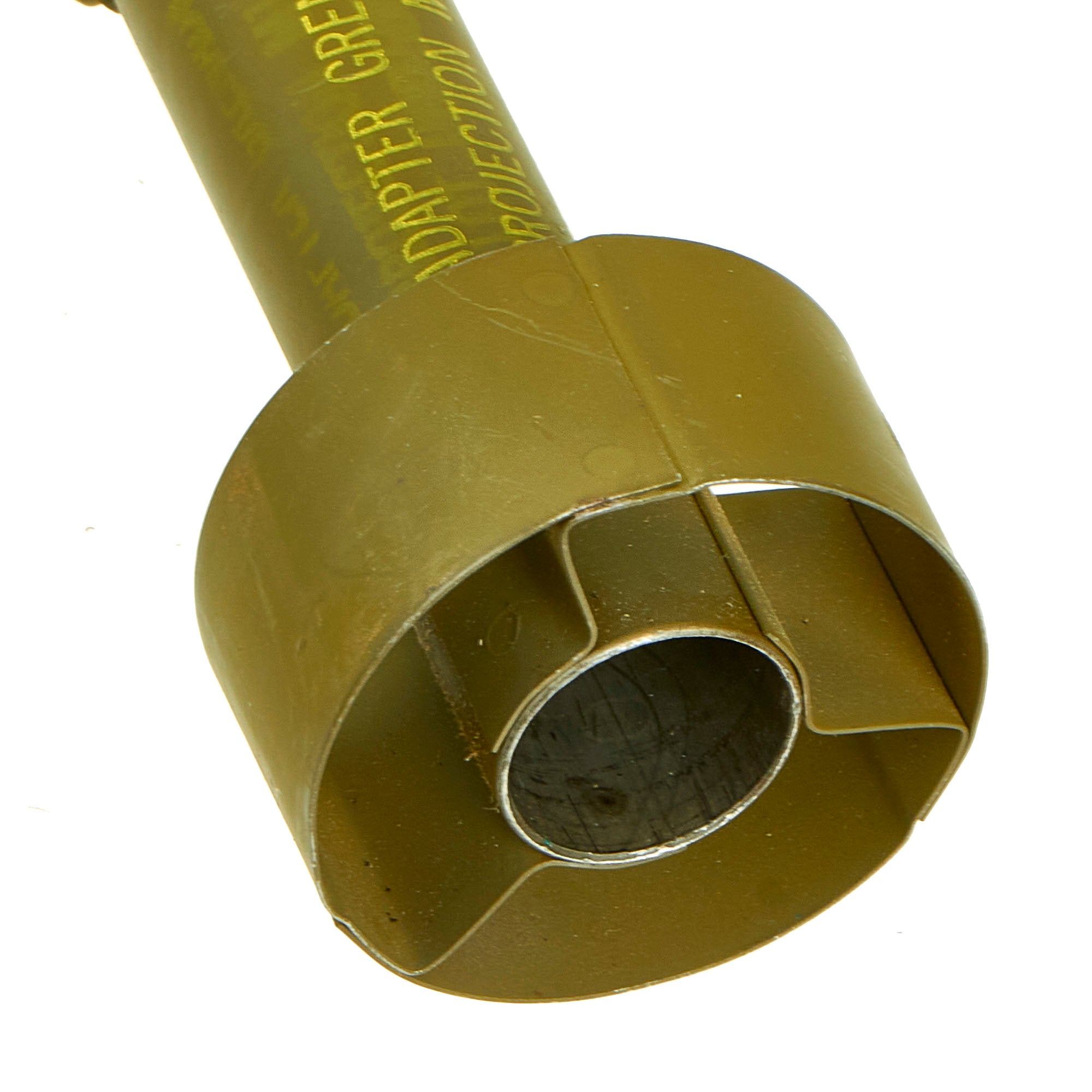This very nice dummy grenade comes complete with a near mint 1969 dated Rifle Grenade Adapter, marked on the side in yellow paint stampings: