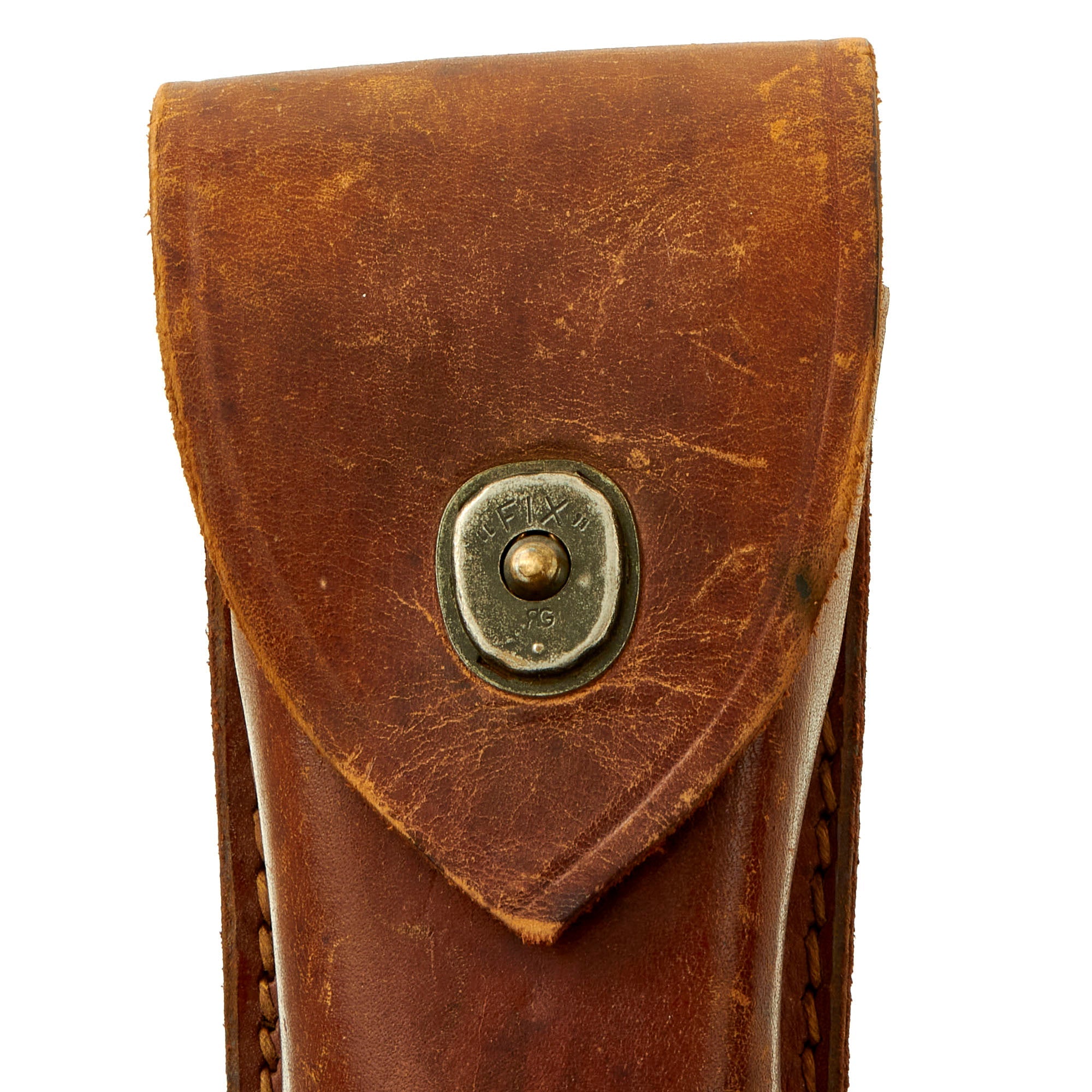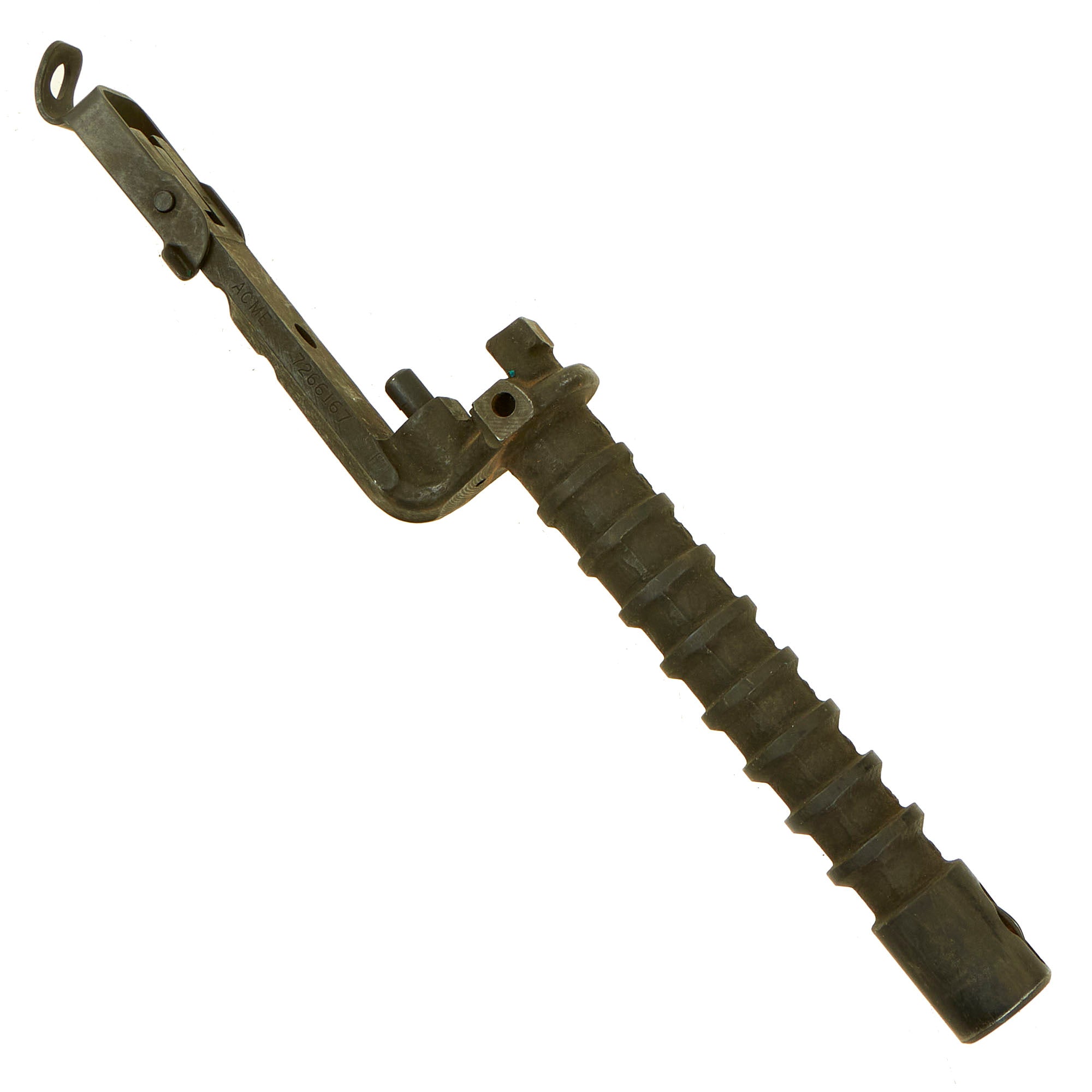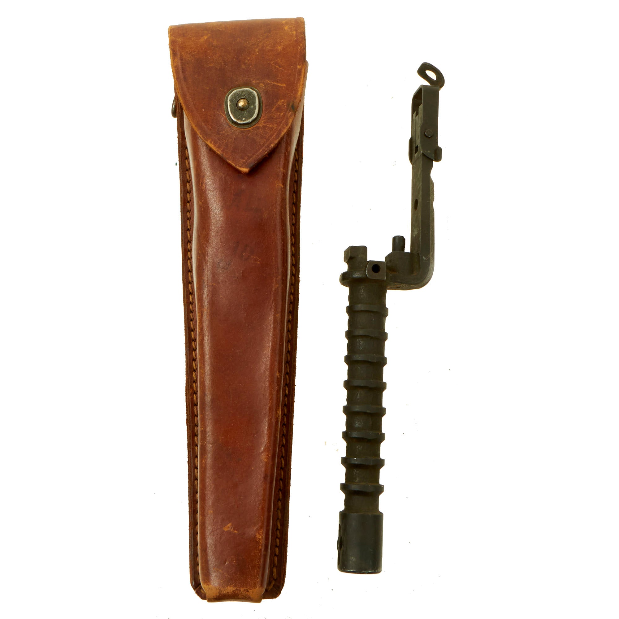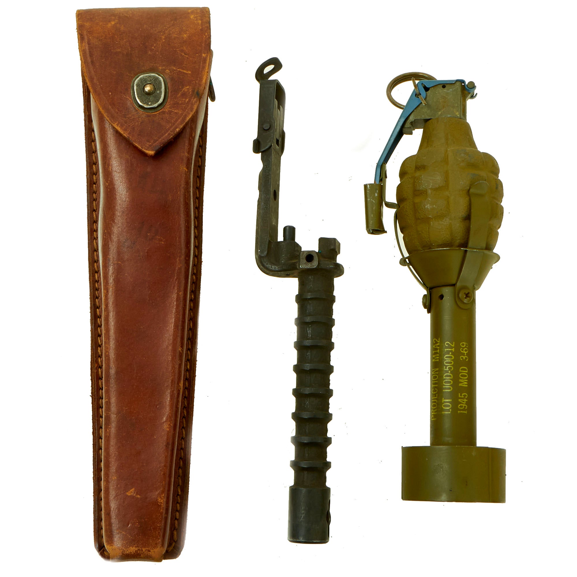 Also included is an M7A2 Grenade Launcher/thrower attachment for the M1 Garand with the rare leather carry case. This attachment is offered in good condition with little surface rust. The markings on the M7 are: