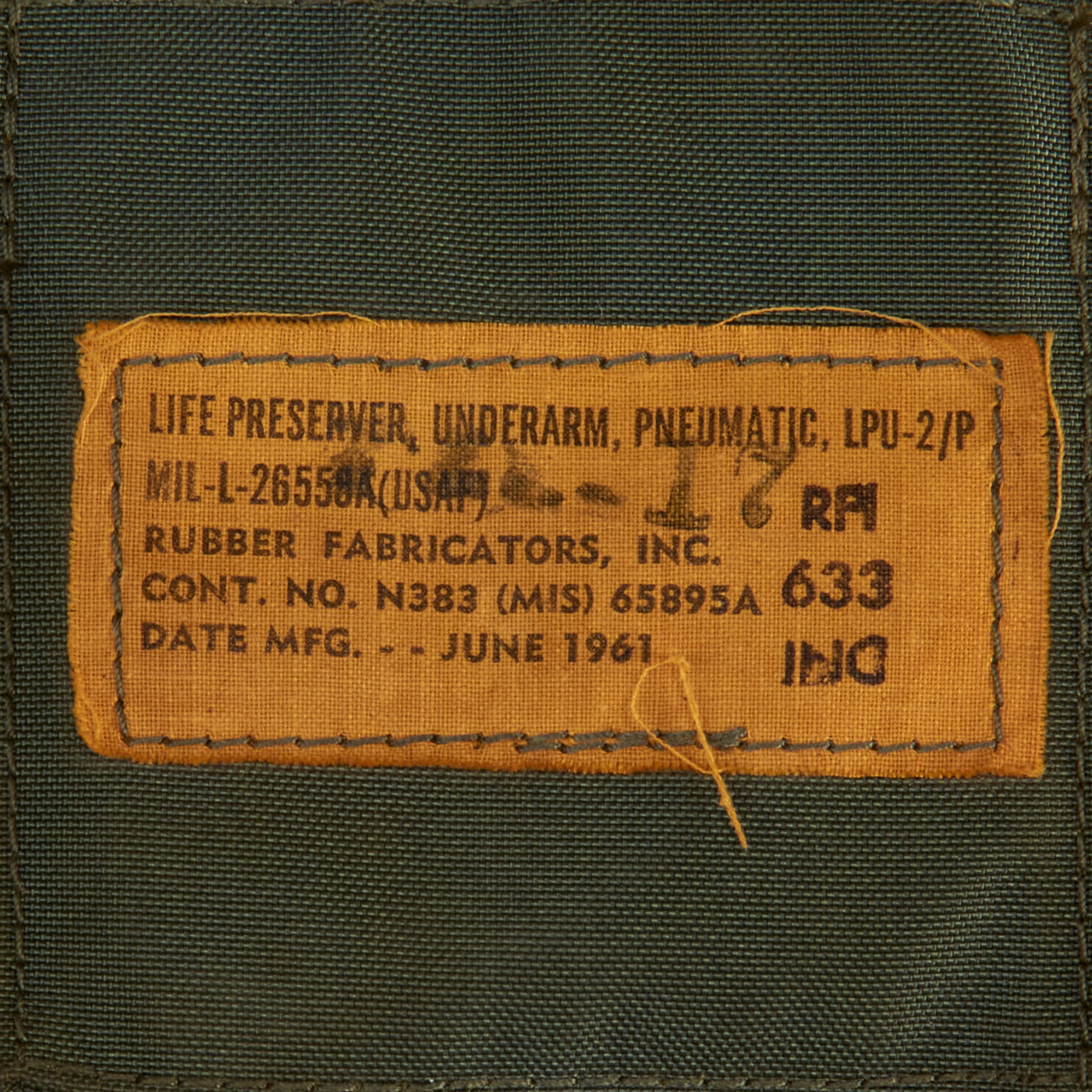 - Black Eye Patch: Accompanying this grouping is a small paper tag from 1992 that states this eye patch as having been “used on strikes against enemy targets. The patch would save one eye in the event of an inadvertent nuclear explosion prior to reaching target”. We have not been able to find any evidence on this, but it would make sense that a pilot would have one of these before the invention of the actual blast protection goggles!