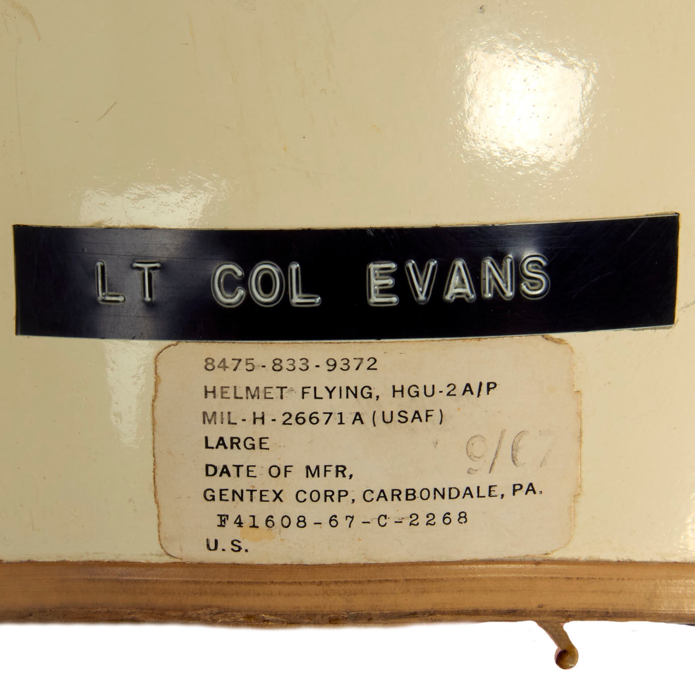 - HGU-2A/P Flight Helmet With Oxygen Mask Dated 1967 (Size Large): The helmet is in lovely condition and is named on the back to Evans. The interior is a little worn with almost all of the leather padding missing. The Type HGU-2A/P protective flying helmet was standard issue for U.S. Air Force flight crews during the early 1960s. First issued in 1961, the HGU-2A/P was an improved version of the HGU-2/P by the addition of ventilation holes, extra padding, and the H-154/AIC headset.