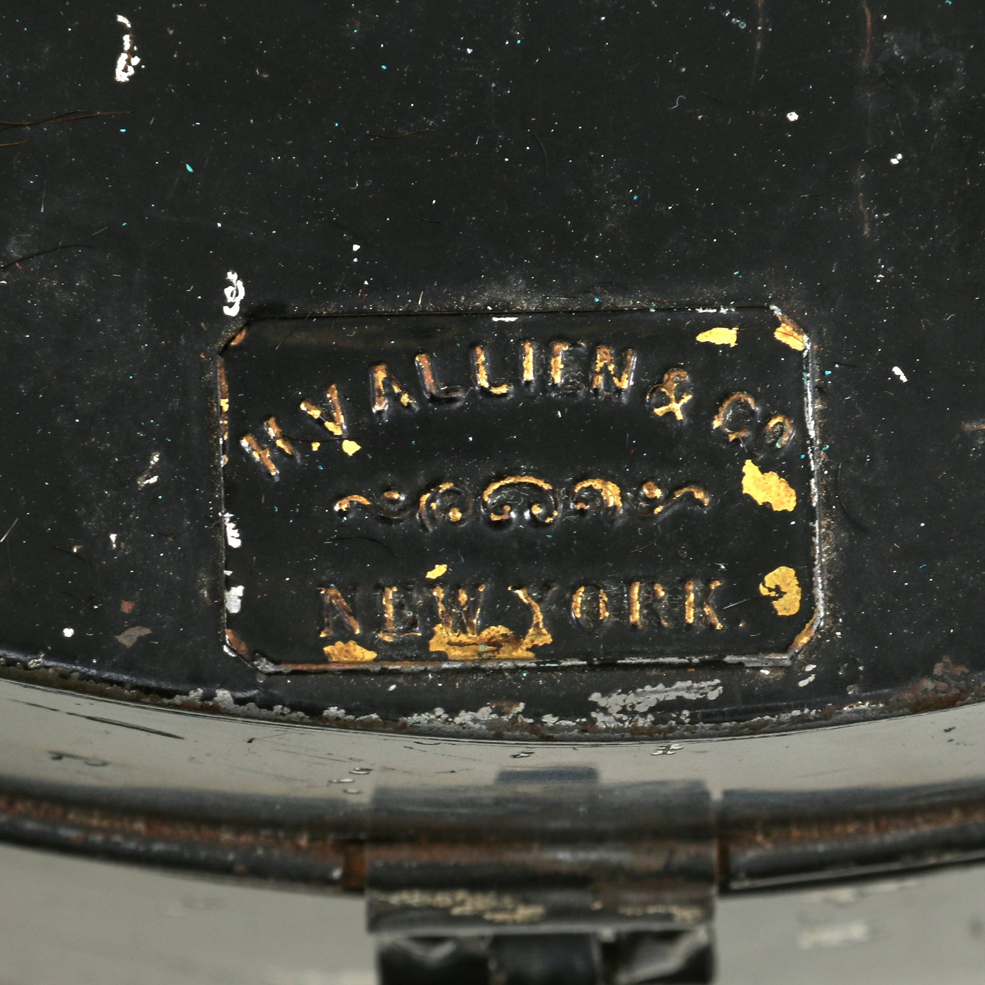 The original tin is intact, and is maker-marked on the top to H.V. ALLIEN & CO. NEW YORK. Henry V Allien (1814-89), though a native of New York, was the son of a French officer from Napoleon's ill-fated expedition to Haiti in 1802. This firm lasted until just after World War II. Allien's obituary noted that he was a member of the New York Light Guard.