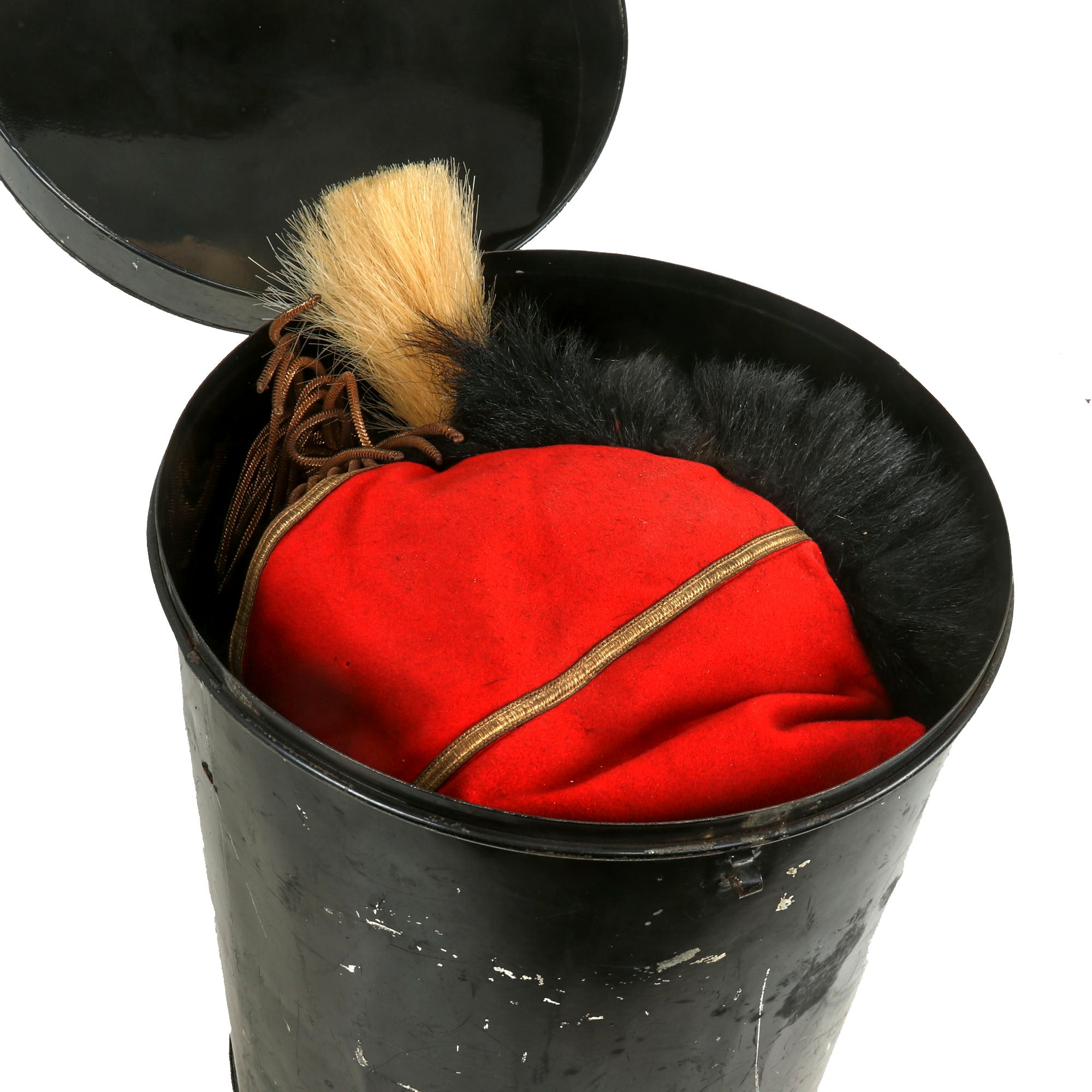 Original Item. Only One Available. This bearskin cap was part of the dress uniform of the Old Guard of the City of New York, a patriotic organization of U.S. veterans established as a ceremonial unit in New York City. It was consolidated in 1868 when state legislation merged the predecessor organizations the New York Light Guard (1826, founded by Col. William W. Tompkins) and the New York City Guard (1833, founded by Capt. William M. McArdle).
