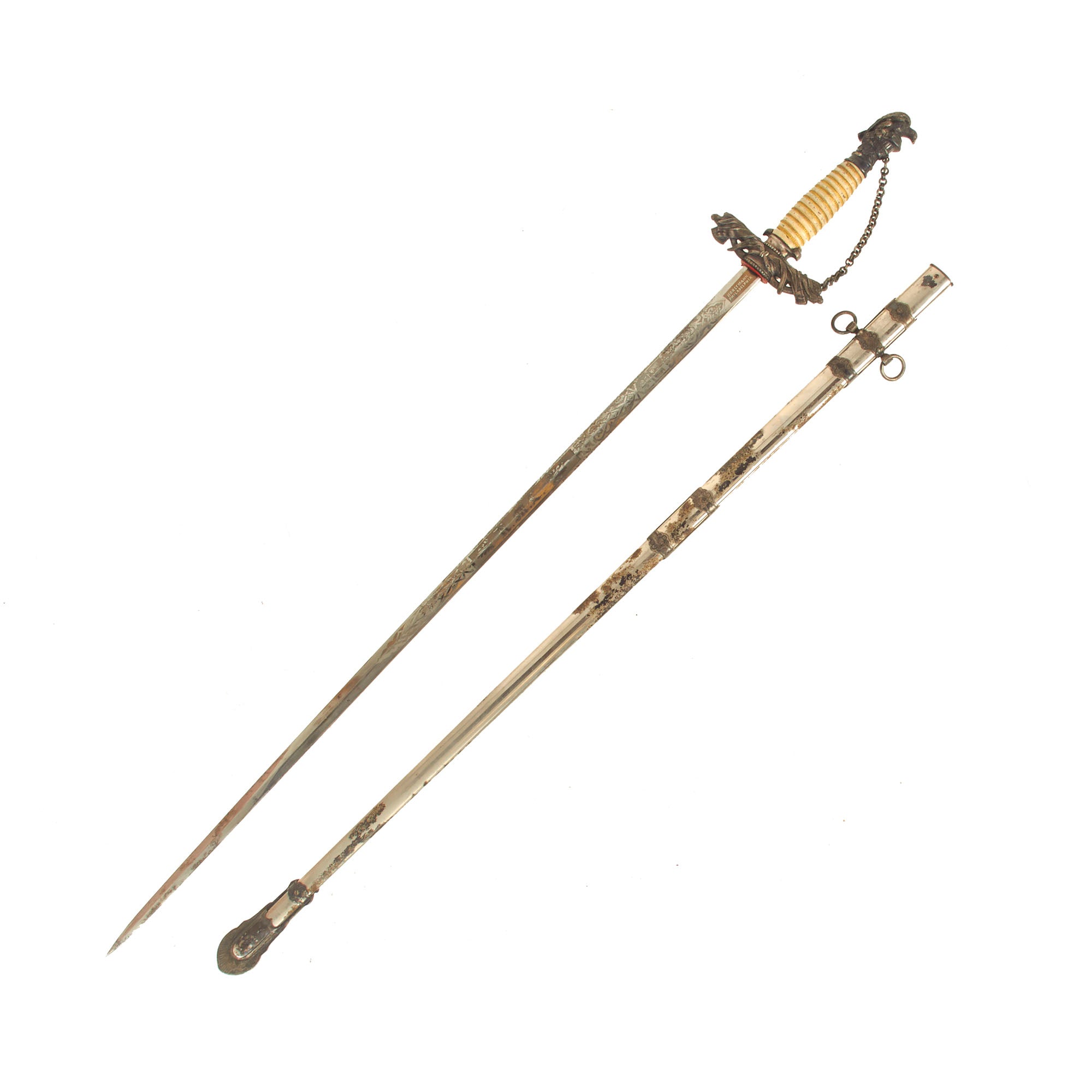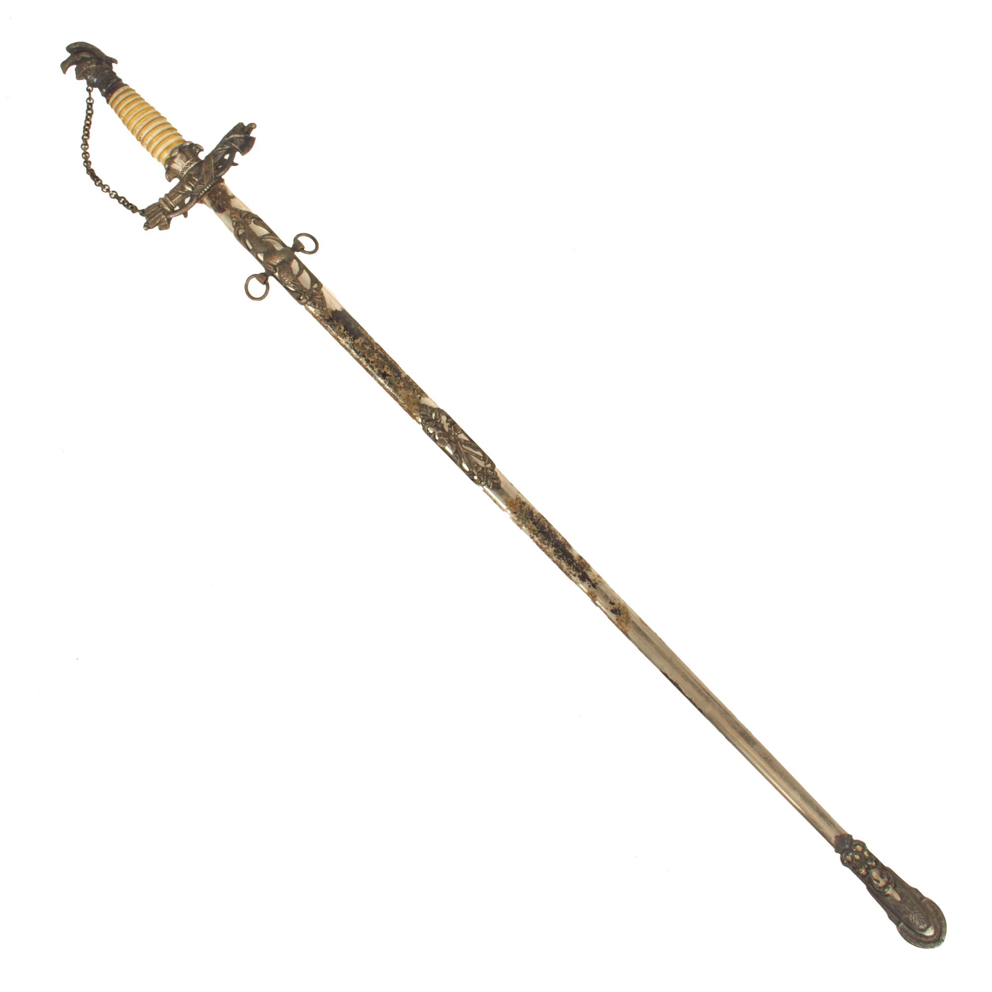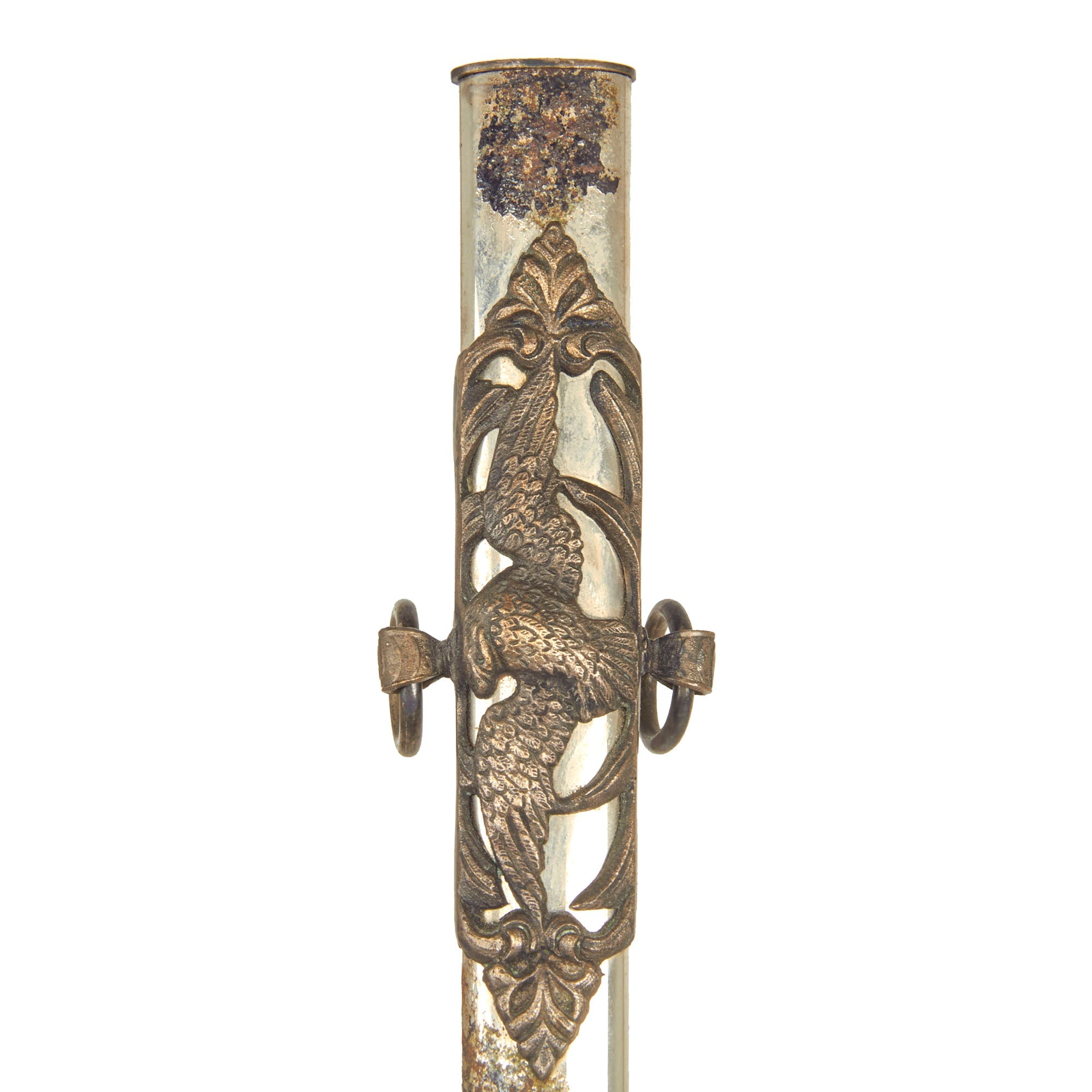The sword is in wonderful condition but there is slight oxidation and staining present on the blade and scabbard as well as some broken fittings on the scabbard as pictured. The overall construction of the sword is still sound and presents itself quite nicely.
