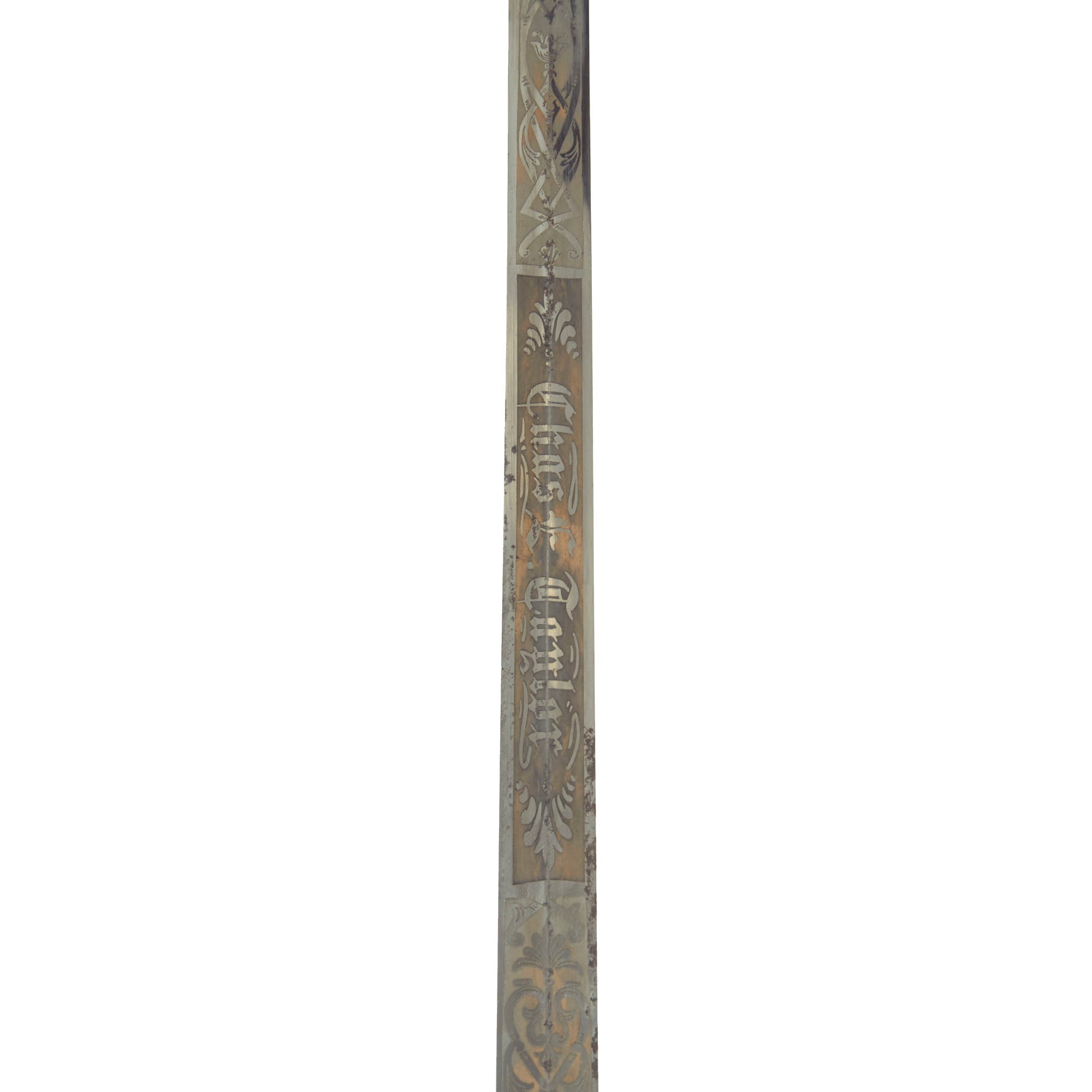 Some of the more common features of these swords include a cast, decorative pommel (often a knight's head like this one and a perched eagle on top), initials of some sort on the hilt and/or scabbard like the URRM here, the owner's name etched into the blade (Chas E. Taylor), and fraternal markings to identify which group the owner belongs to which is RLM for Regular Masonic Jurisdictions. The swords also are usually etched with the maker's name, often such well-known makers of military swords as Ames, Roby, Pettibone, Emerson & Silver and in this case the ever popular Horstmann of Philadelphia.
