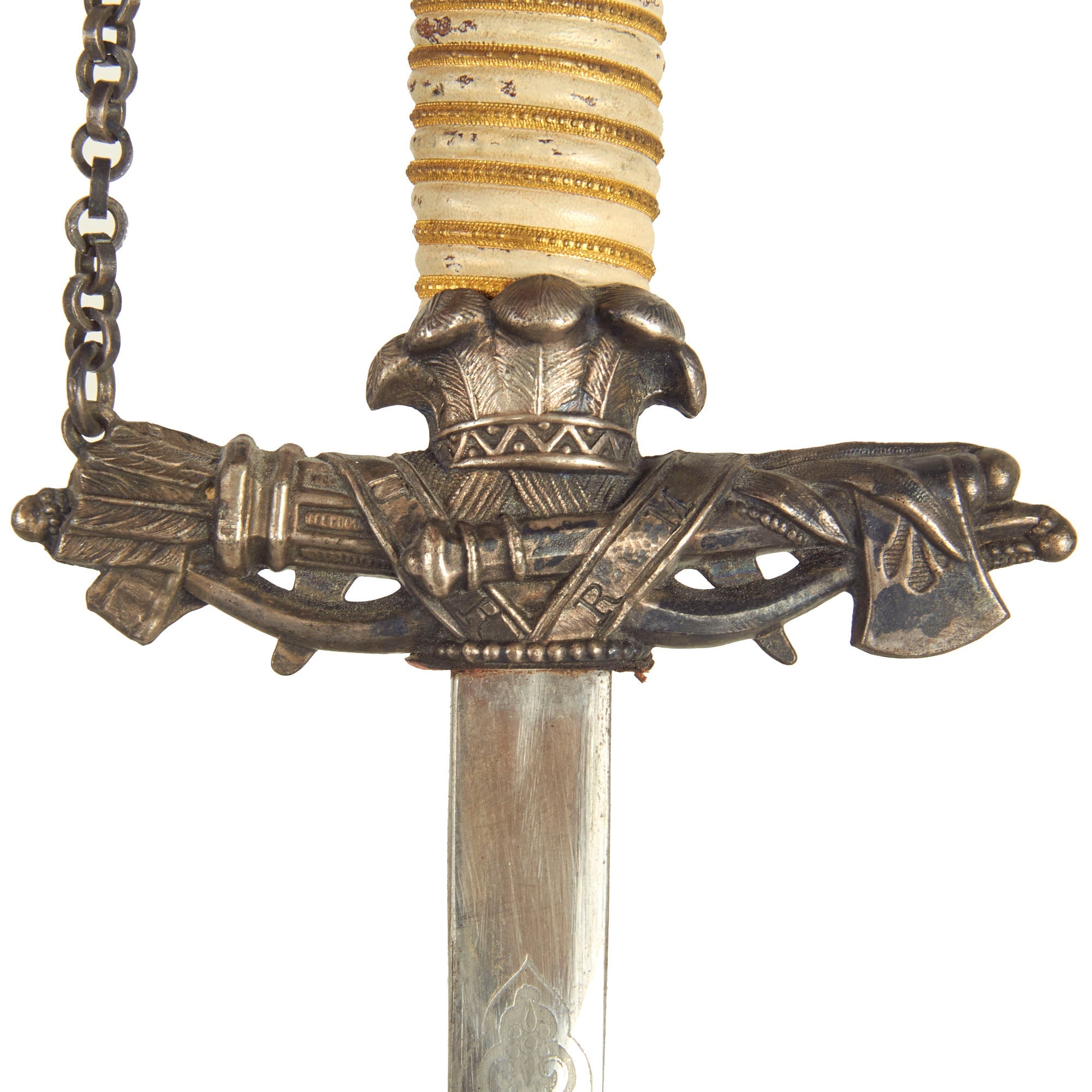 Original Item: Only One Available. This is definitely an interesting sword we have here! While we know who Horstmann of Philadelphia was, as for the URRM fraternity it took some digging. The Knights Templar, full name The United Religious, Military and Masonic Orders of the Temple and of St John of Jerusalem, Palestine, Rhodes and Malta (URRM), is a fraternal order affiliated with Freemasonry. Unlike the initial degrees conferred in a regular Masonic Lodge, which (in most Regular Masonic jurisdictions) only require a belief in a Supreme Being regardless of religious affiliation, the Knights Templar is one of several additional Masonic Orders in which membership is open only to Freemasons who profess a belief in Christianity. One of the obligations entrants to the order are required to declare is to protect and defend the Christian faith. The word "United" in its full title indicates that more than one historical tradition and more than one actual order are jointly controlled within this system. The individual orders 'united' within this system are principally the Knights of the Temple (Knights Templar), the Knights of Malta, the Knights of St Paul, and only within the York Rite, the Knights of the Red Cross.