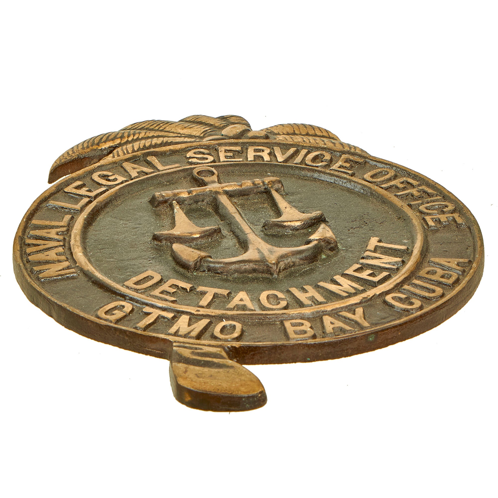 The plaque itself measures approximately 10” x 7” and still retains full, crisp details. The sign is for NAVAL LEGAL SERVICE OFFICE DETACHMENT GTMO BAY CUBA.