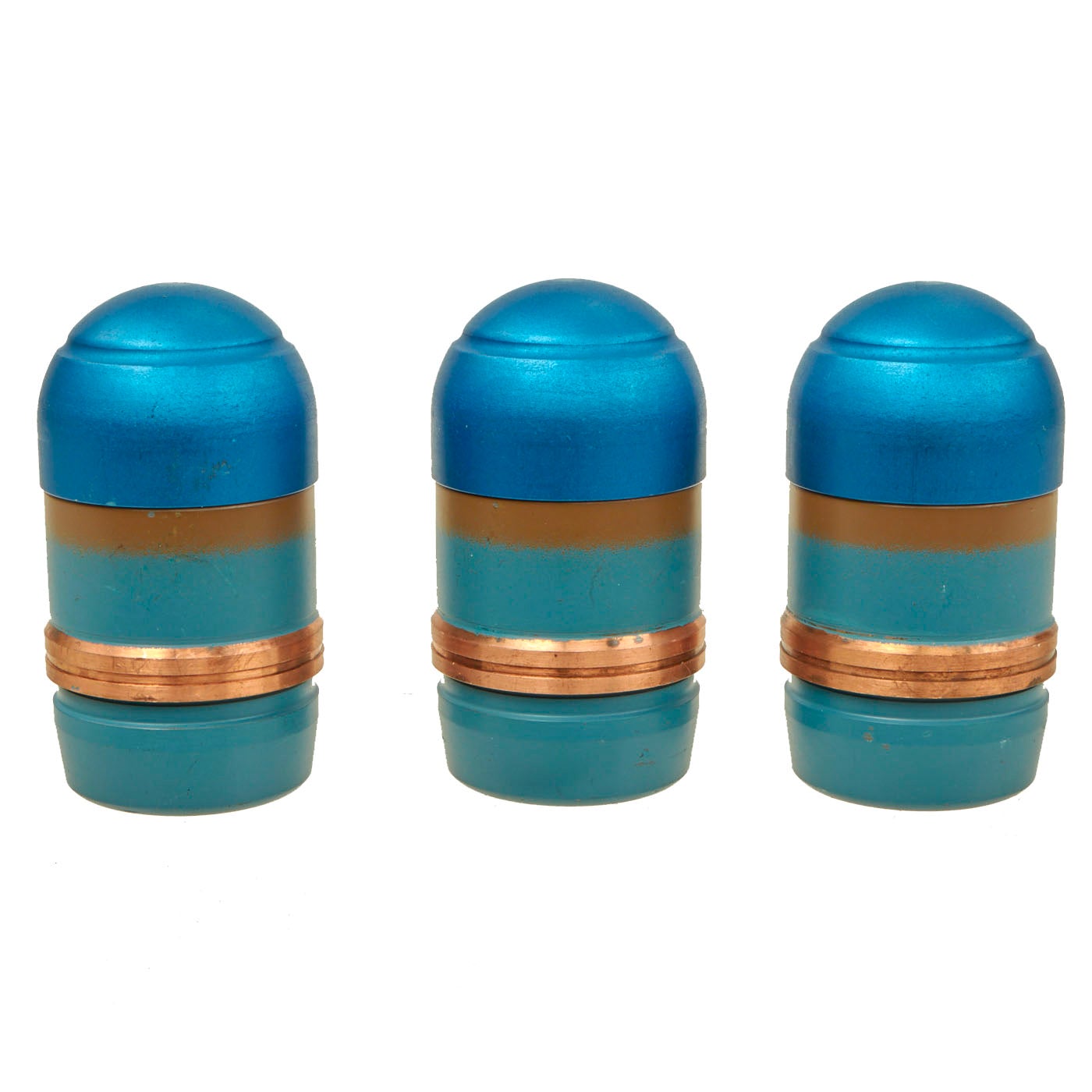 THREE ea. M781 40mm Practice “TP” Rounds for Automatic Weapon: The M781 cartridge is a fixed, practice type ammunition. The M781 replaced the M407 practice cartridge. This item is Code A, approved for service use. This is a training unique item; not used in combat.