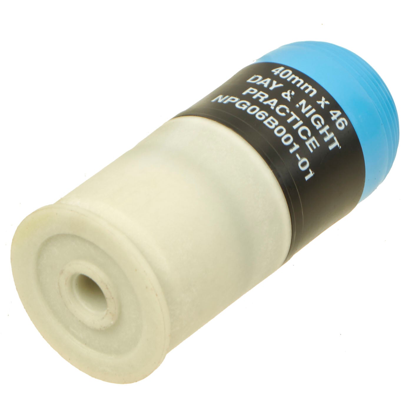 40mm x 46 Day & Night Practice Round: 40 × 46 mm LV (Low Velocity), is a NATO-standard high–low grenade launcher cartridge meant for hand-held grenade launchers, such as the M79, M203, Milkor MGL, Heckler & Koch AG36, and many more. The propellant has low pressure and gives the projectile an average velocity of 78–84 m/s (256–276 ft/s) depending on the ammunition type.