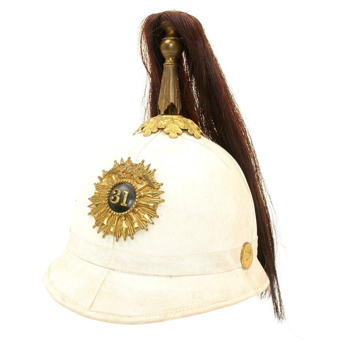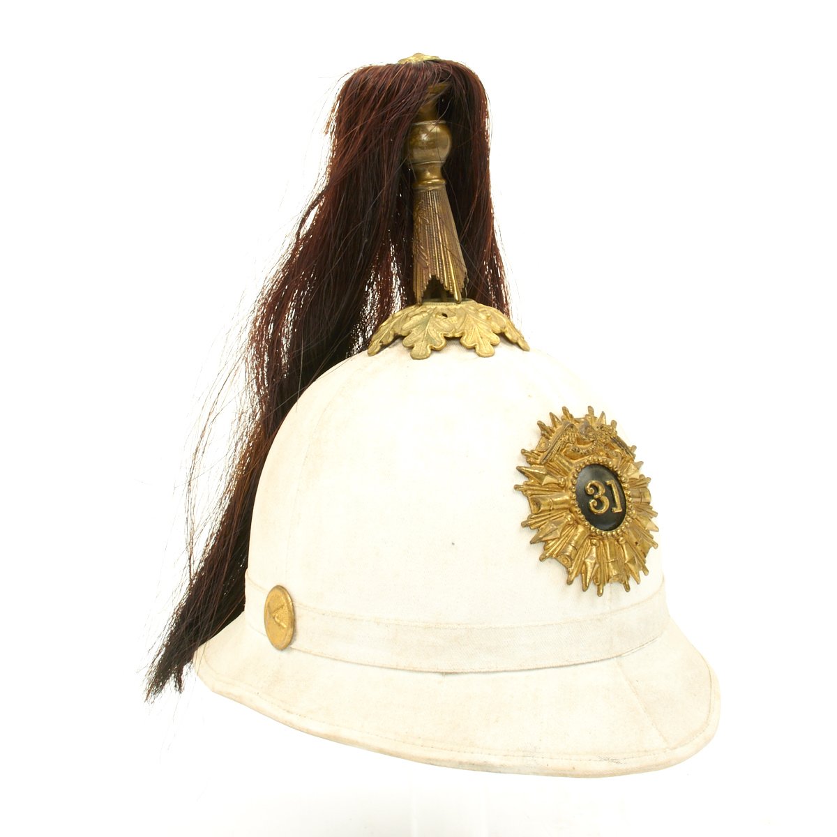Original Item: One Only. Dating from just before the Spanish American War of the 1890s, this is a White plumed Dress Helmet from a Staff officer in the 31st Infantry Regiment.
