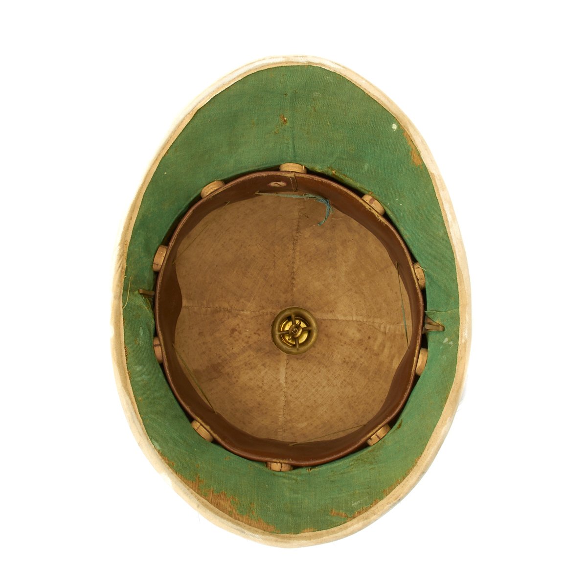 Often referred to as "Sun Hats, Pith Helmets or topees" these helmets were ideal for hot weather as found in Cuba. In very nice condition complete with leather head band and ready to display.