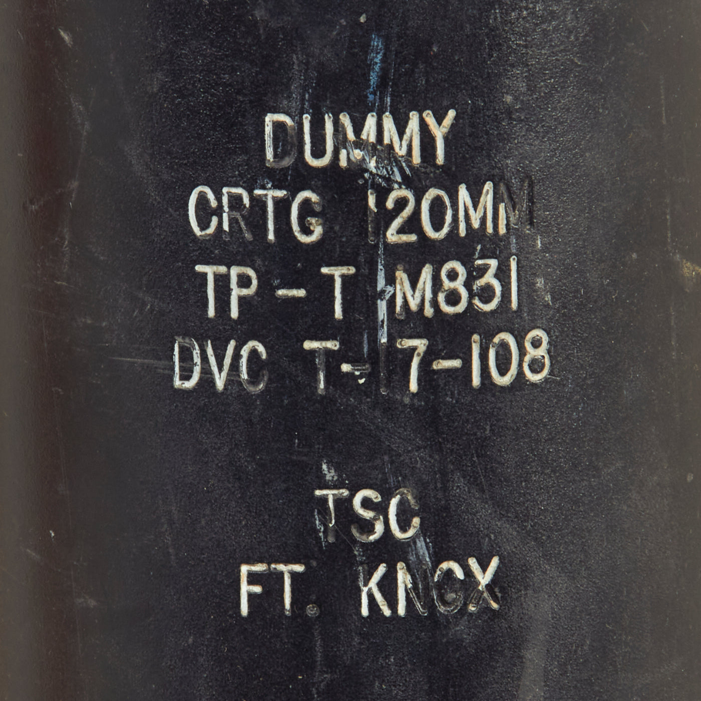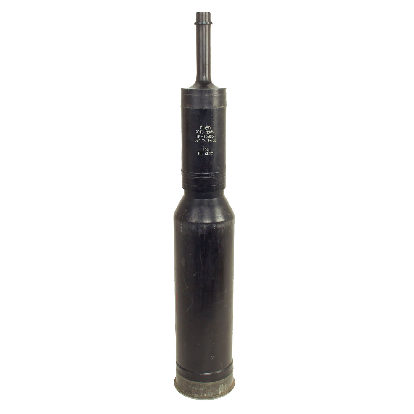 Original Item: Only One Available. This is a fantastic example of a 120mm Training Practice round for the 120mm Smooth Bore M256 Cannon, as equipped on the U.S. M1A1 and M1A2 series of main battle tanks. This is a dummy round and was never filled with any propellant or explosive charges. This round is totally inert and in compliance per the current BATF standards governing inert ordnance.
