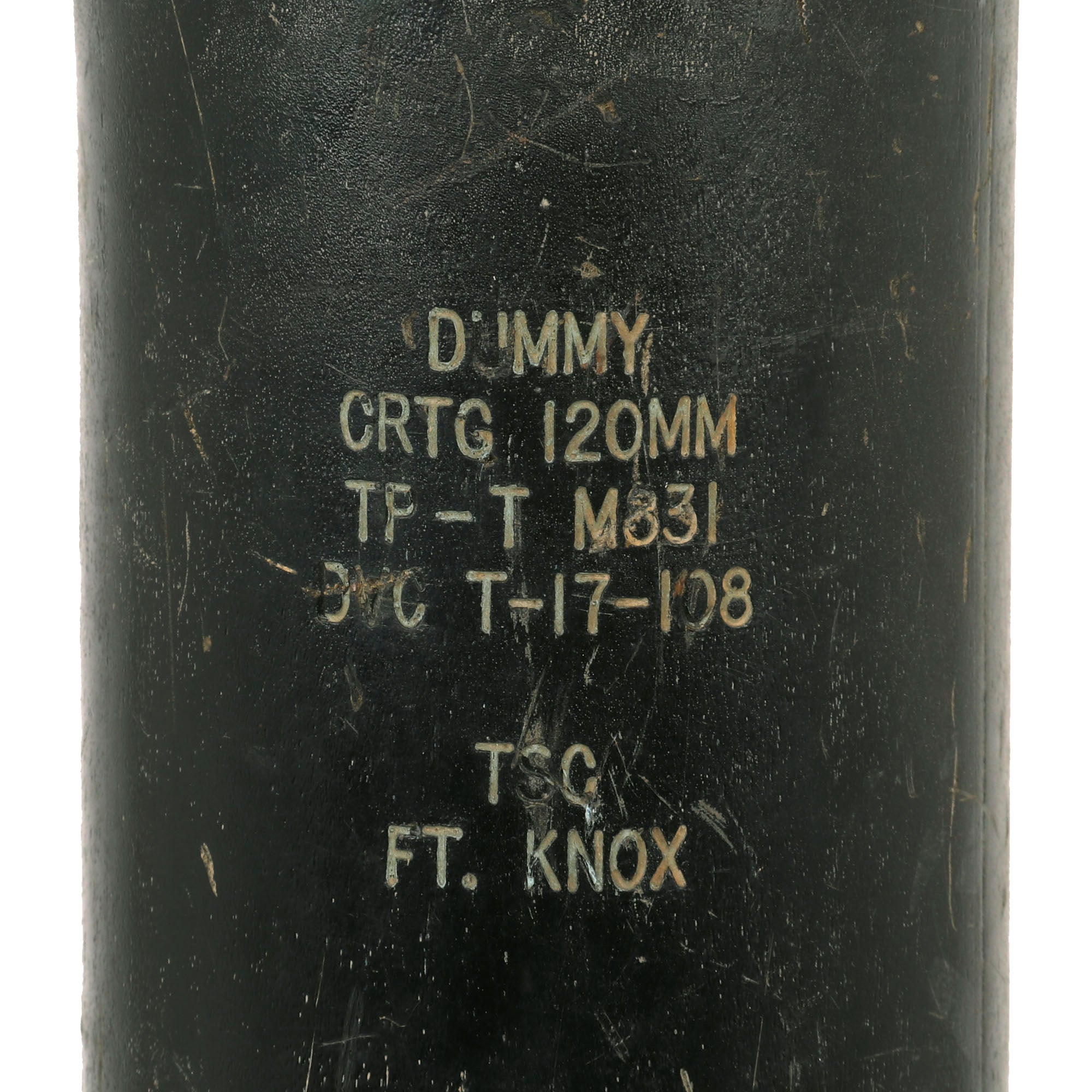 Original Item: Only One Available. This is a fantastic example of a 120mm Training Practice round for the 120mm Smooth Bore M256 Cannon, as equipped on the U.S. M1A1 and M1A2 series of main battle tanks. This is a dummy round and was never filled with any propellant or explosive charges. This round is totally inert and in compliance per the current BATF standards governing inert ordnance.