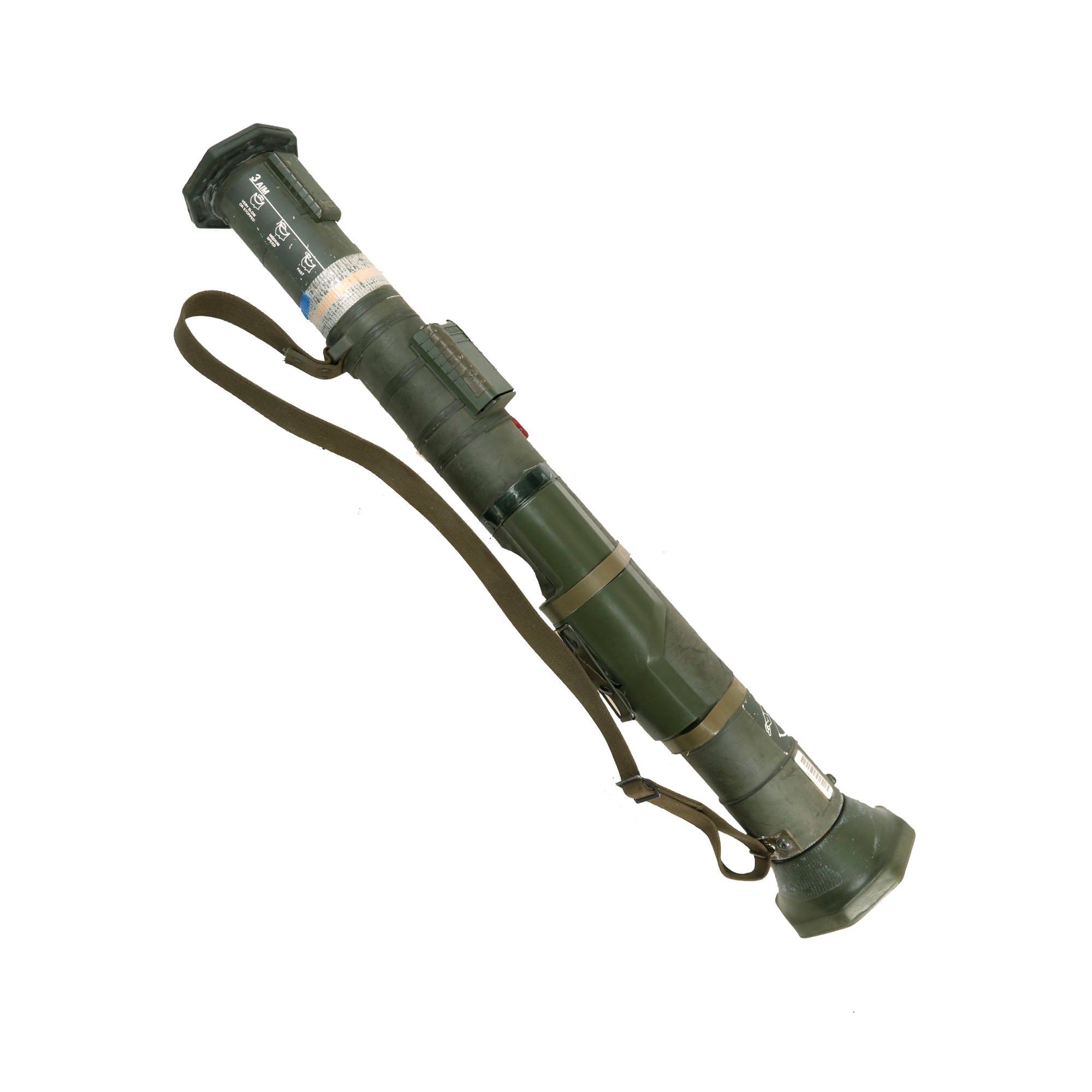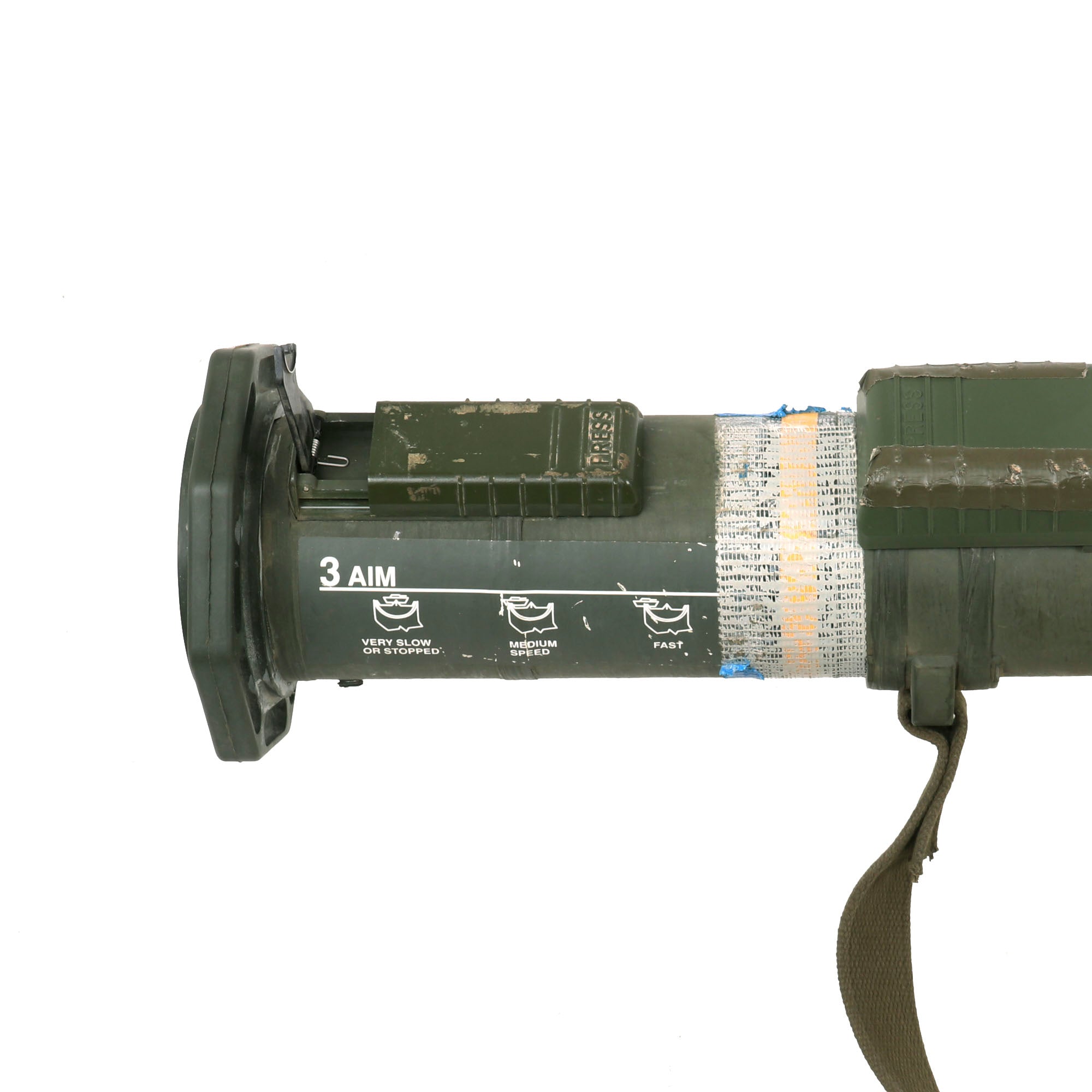 As it is "recoilless", that does mean that anyone standing to the rear of it is in quite a bit of danger due to the back blast. However now in this very safe display form, which are generally discarded after use. Like the U.S. LAW series of Anti-Tank weapons, the AT-4 is packaged as a launcher and round unit, with the launcher being considered "Disposable". Thankfully this one was saved from that fate, as it is definitely one of the best that we have ever seen! Ready to display!