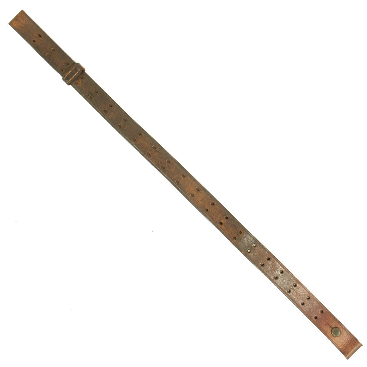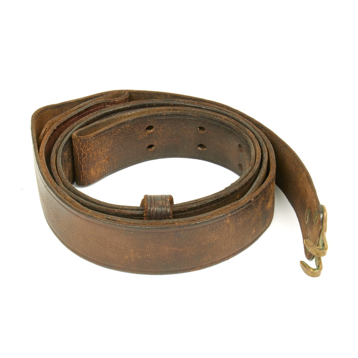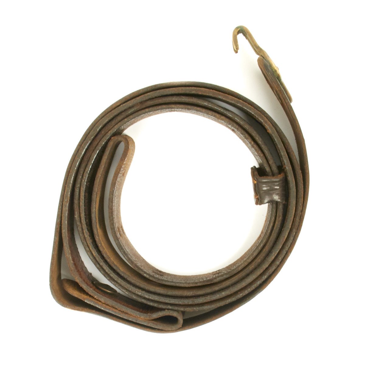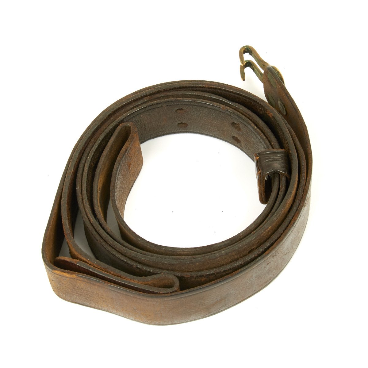 Original Item: Only One Available. Genuine U.S. M1887 sling. Constructed as a one piece sling - not the stitched 2 piece type- with brass double claw hook on one end and a brass stud button on the other. There is one leather keeper loop. Designed for the for Springfield Trapdoor or Krag rifles.