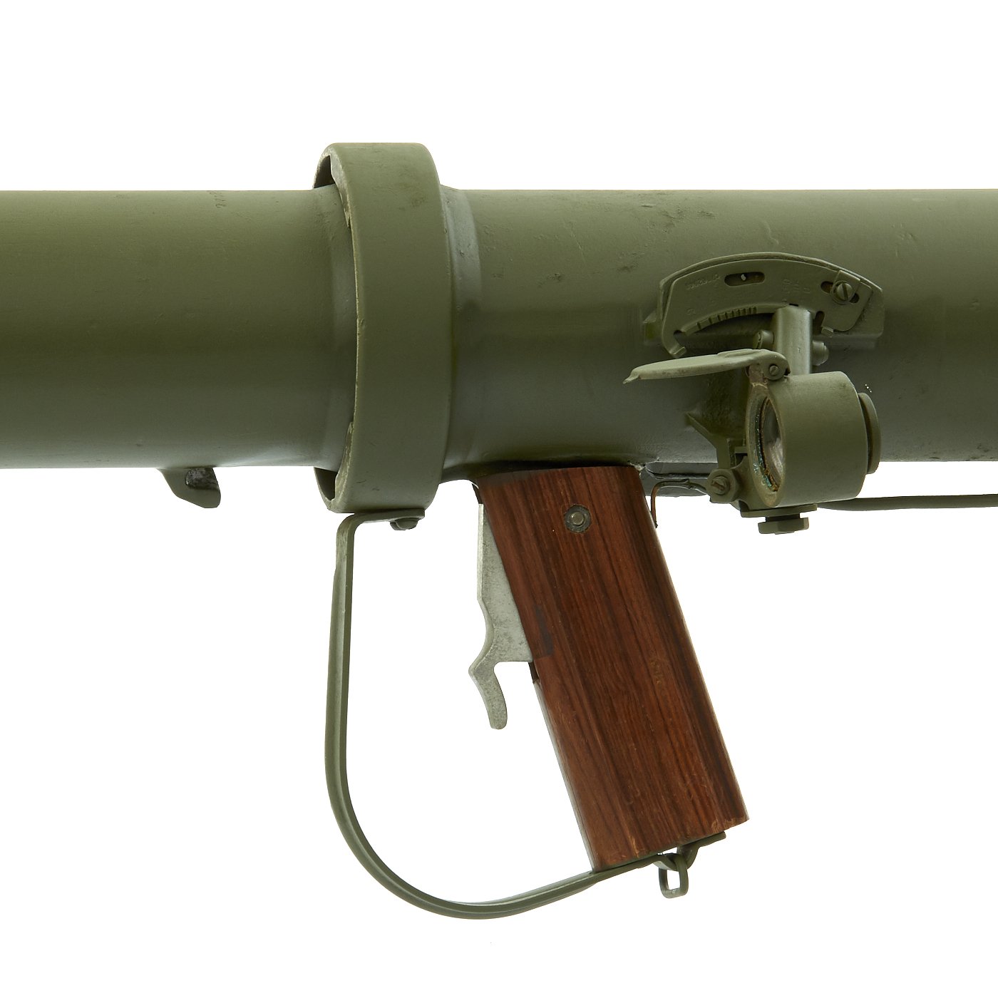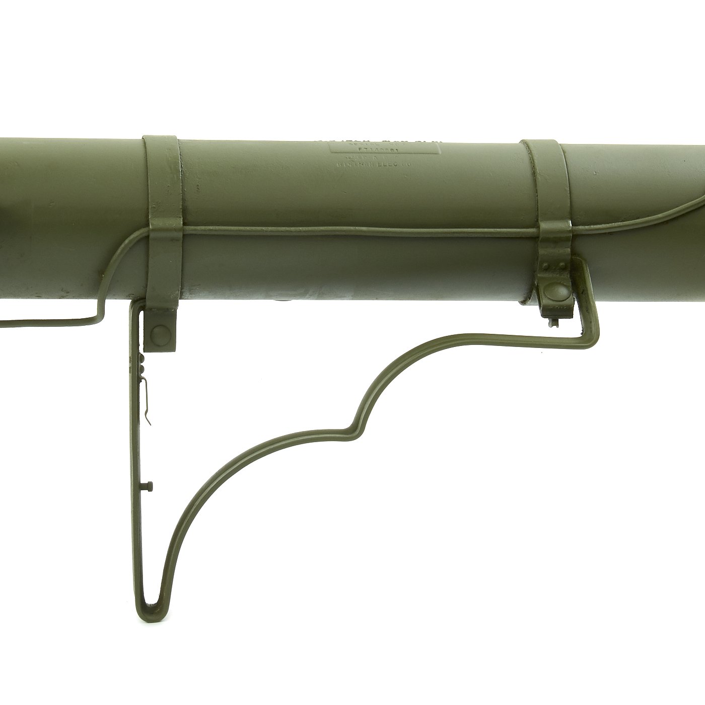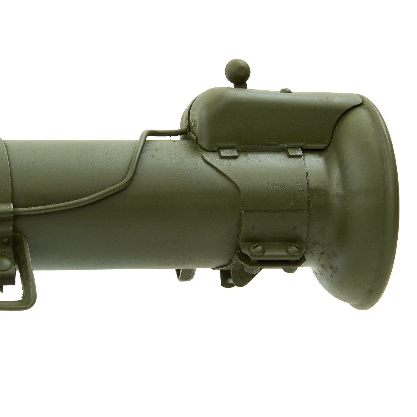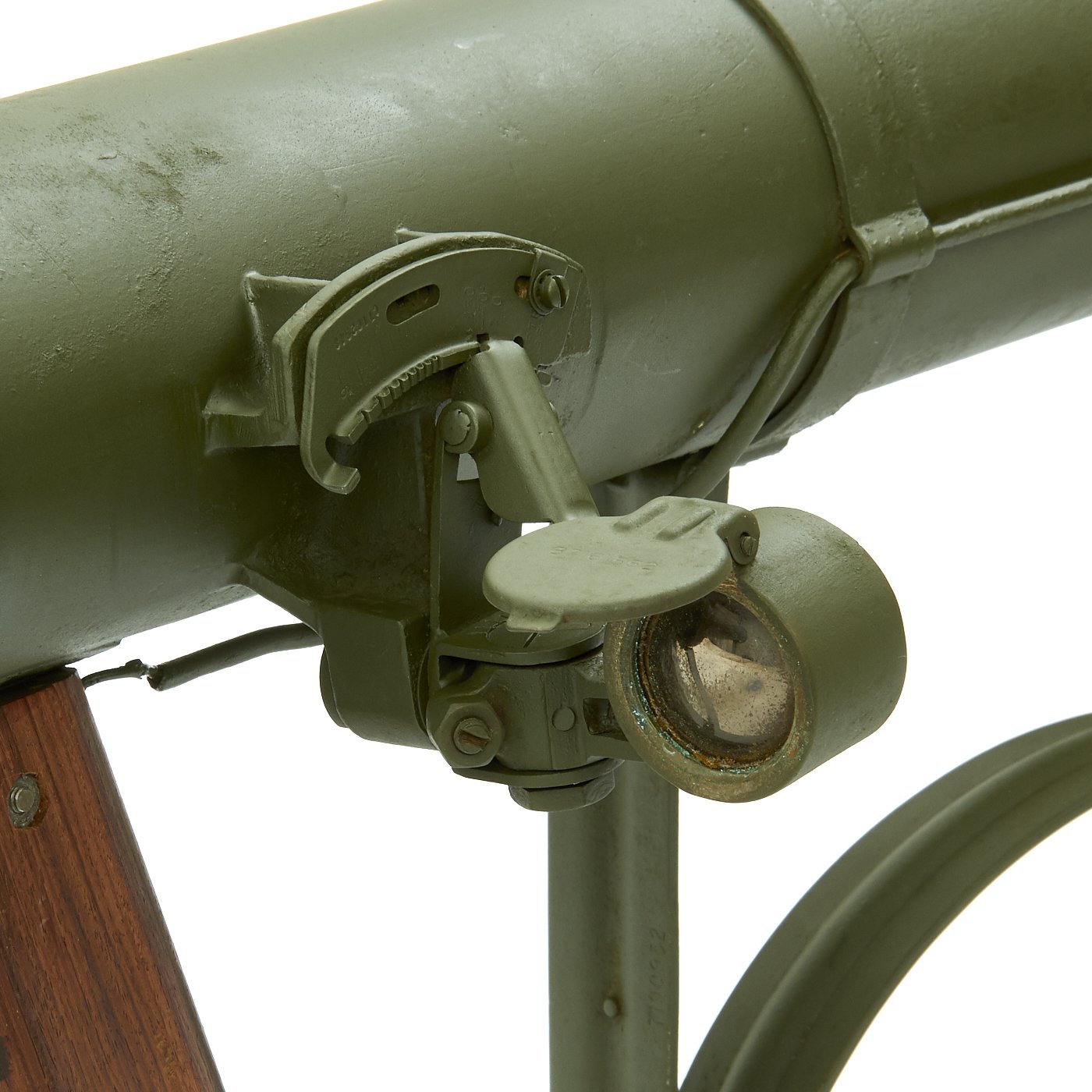 Comes complete with original optical sight and original paint, though it has been repainted several times. Also included is an U.S. M20 Super Bazooka Inert Practice Round, dated 10 - 52. Light weight, it assembles to approximately 60 inches in overall length.