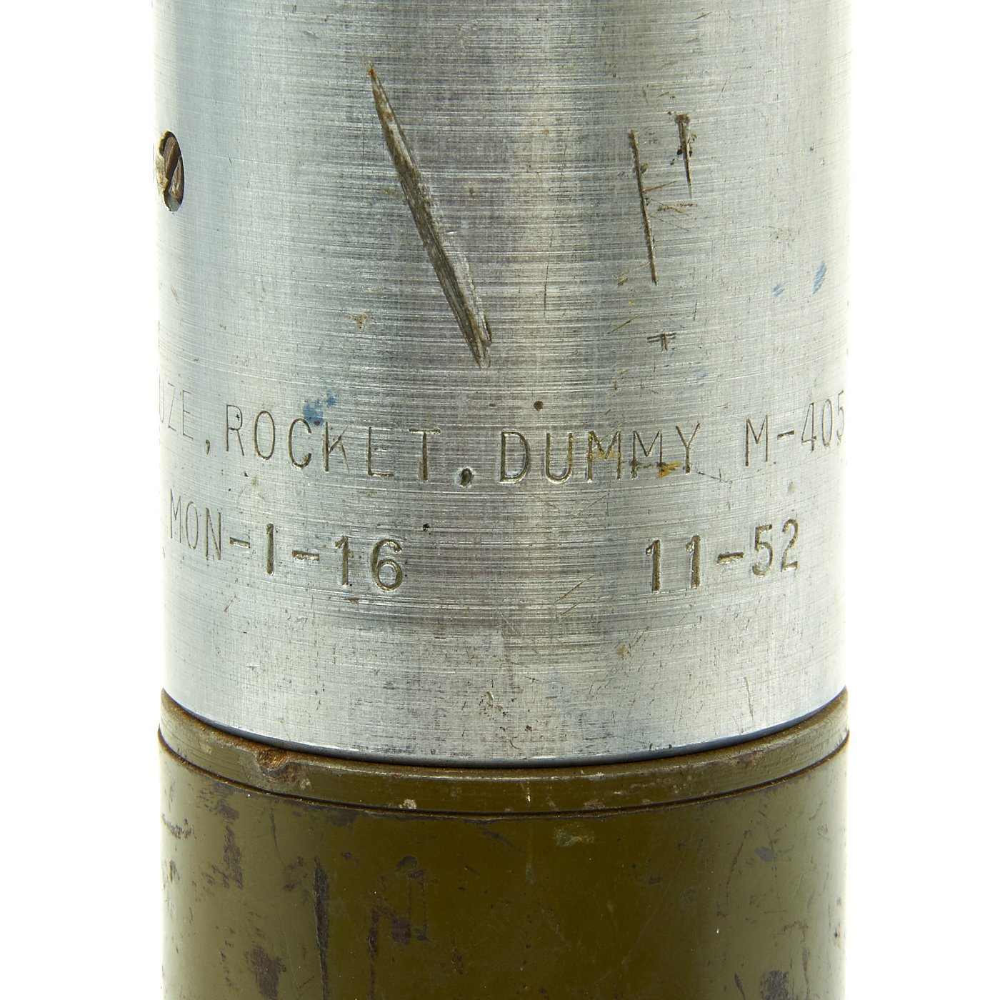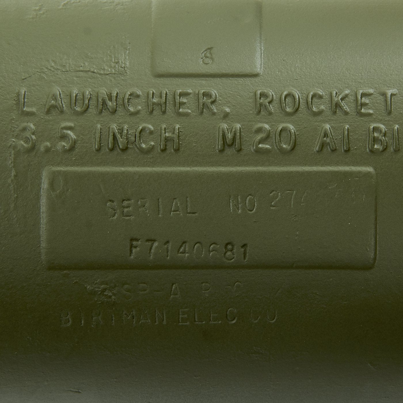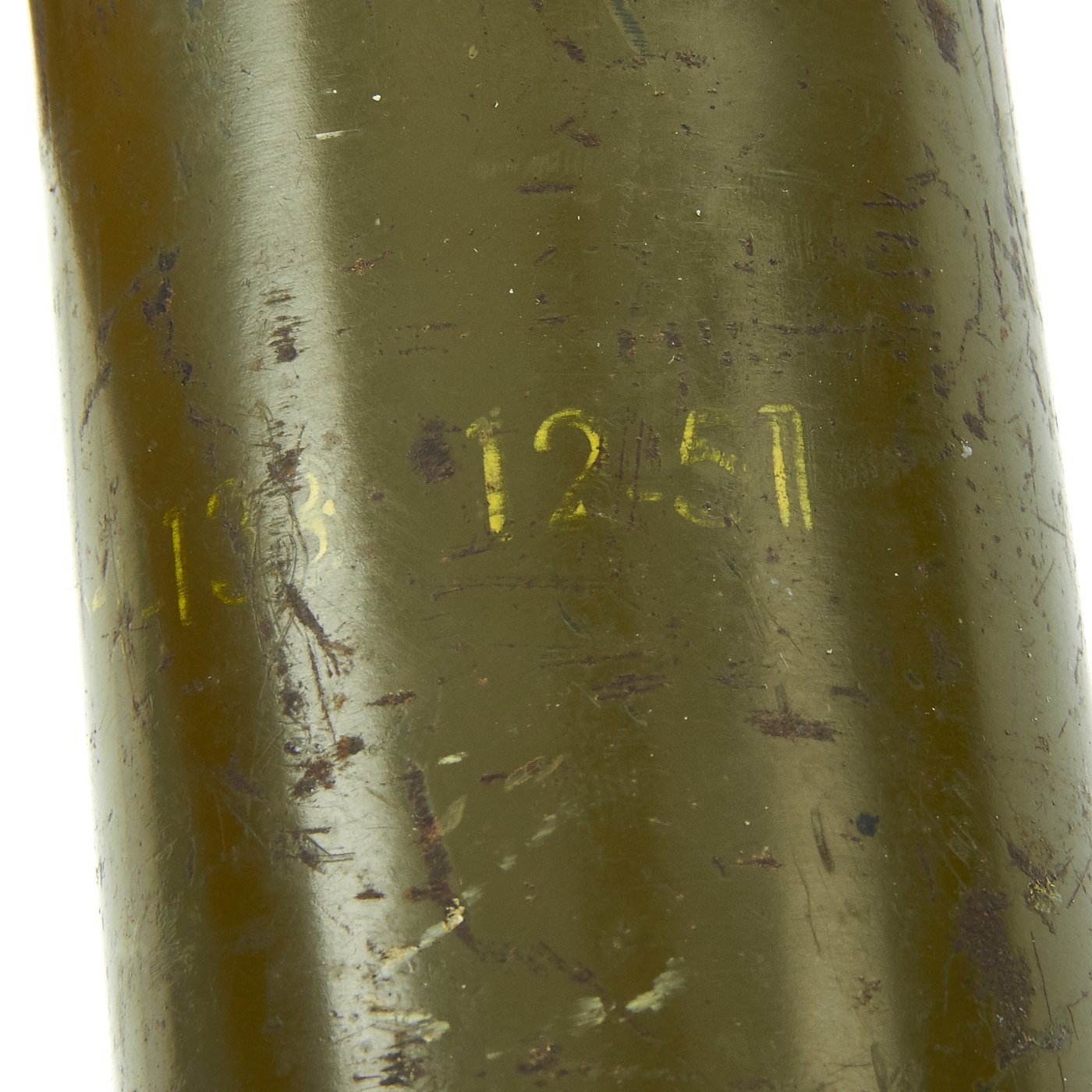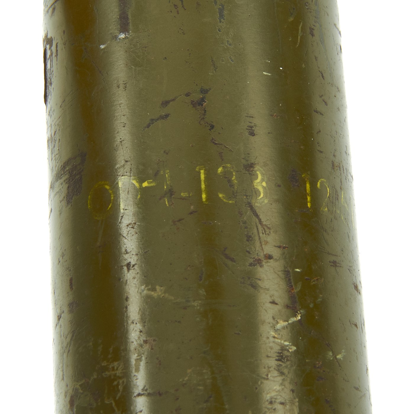 Comes complete with original optical sight and original paint, though it has been repainted several times. Also included is an U.S. M20 Super Bazooka Inert Practice Round, dated 10 - 52. Light weight, it assembles to approximately 60 inches in overall length.