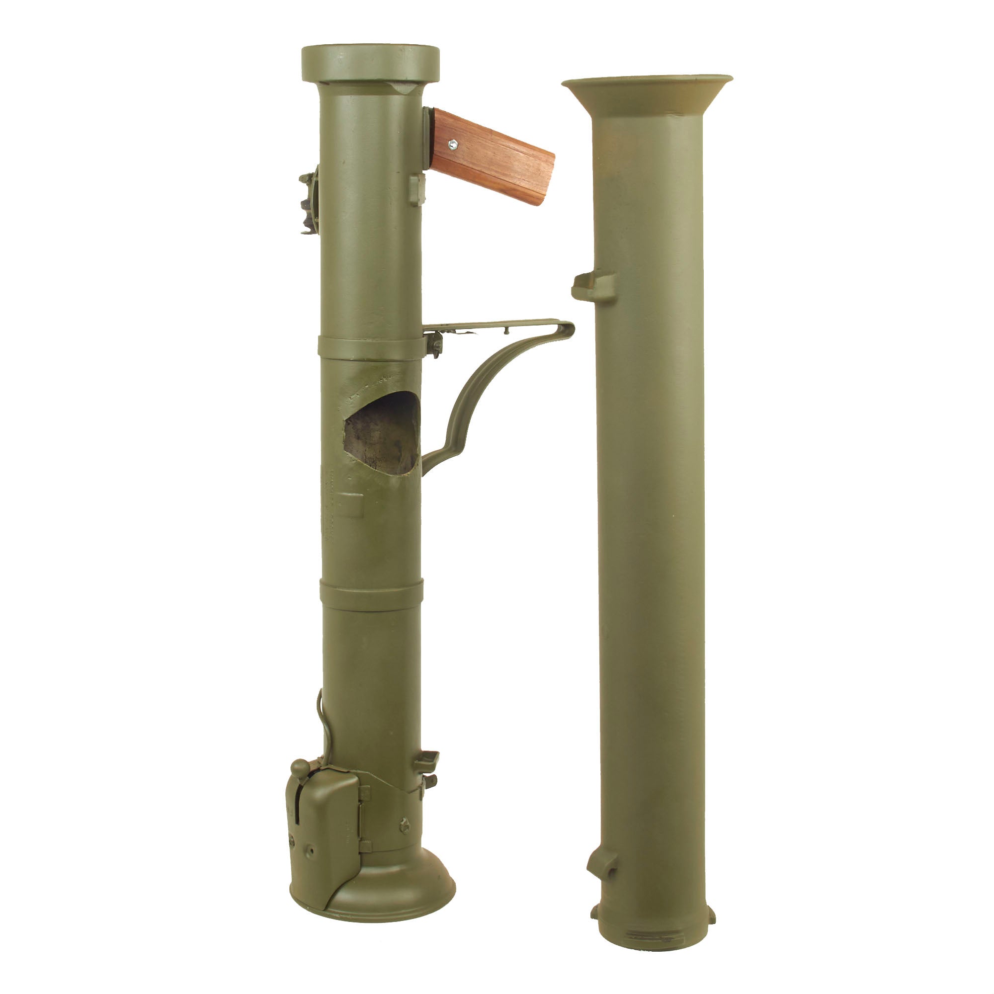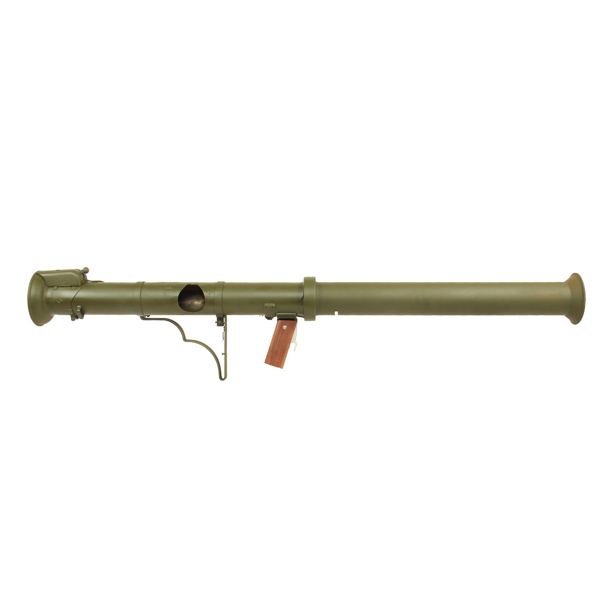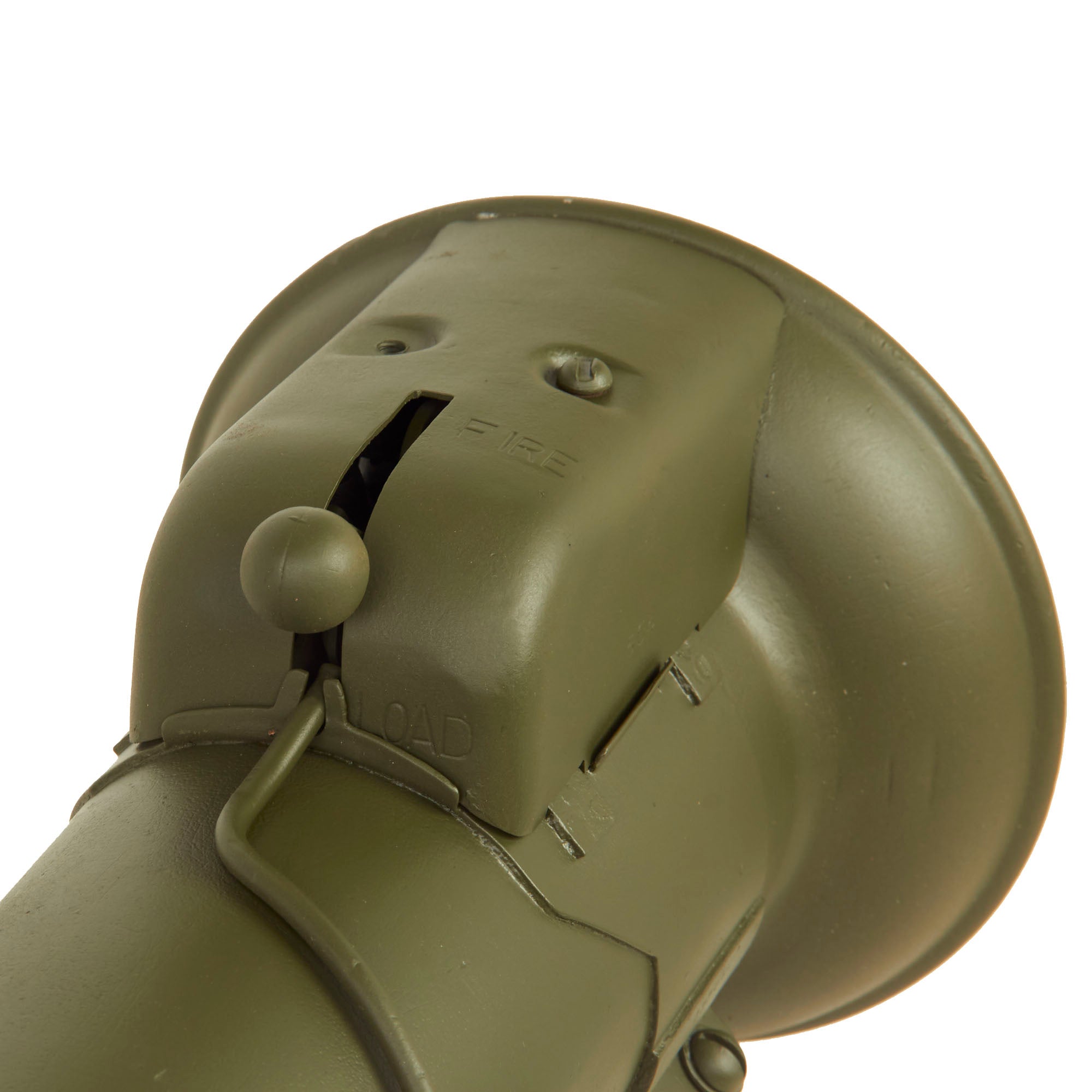 This example is not one of many made under license by R.F.I. in India, and is definitely the real U.S. Issue. The loading switch still moves and the bazooka breaks down correctly, making this a great display piece. Only issues to note are that the optical sight is VERY stiff when folding down, and the locking tab on the center joint is missing. The spring loaded catch for attaching the front tube to the side of the rear is also missing.