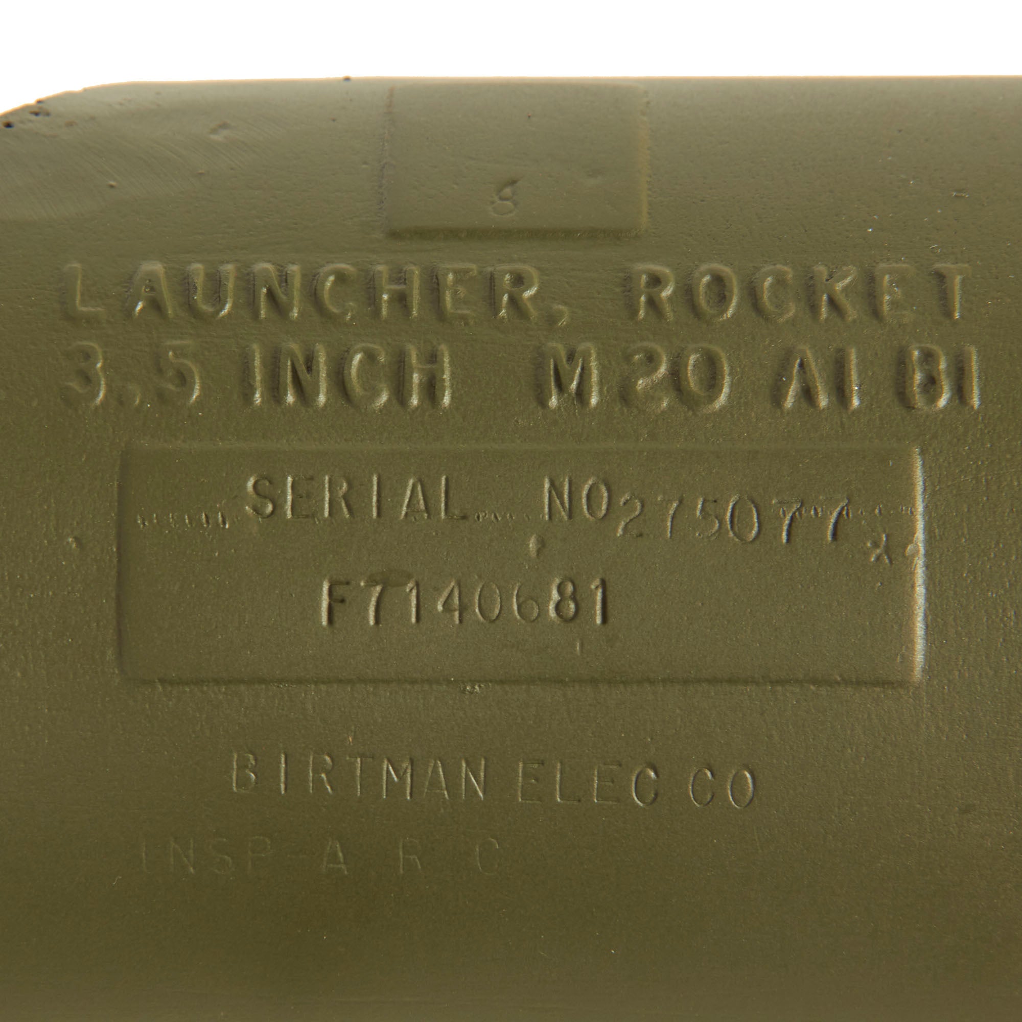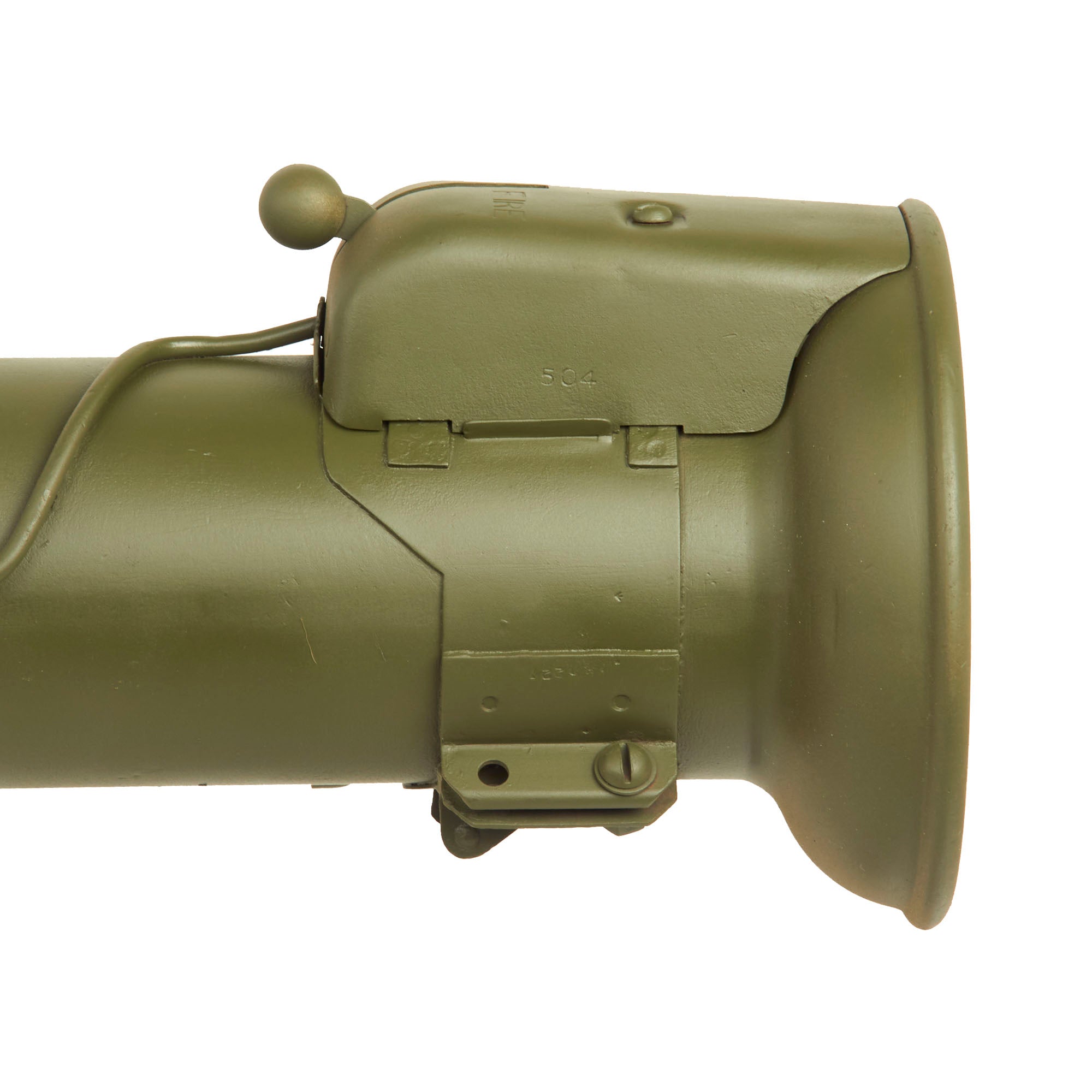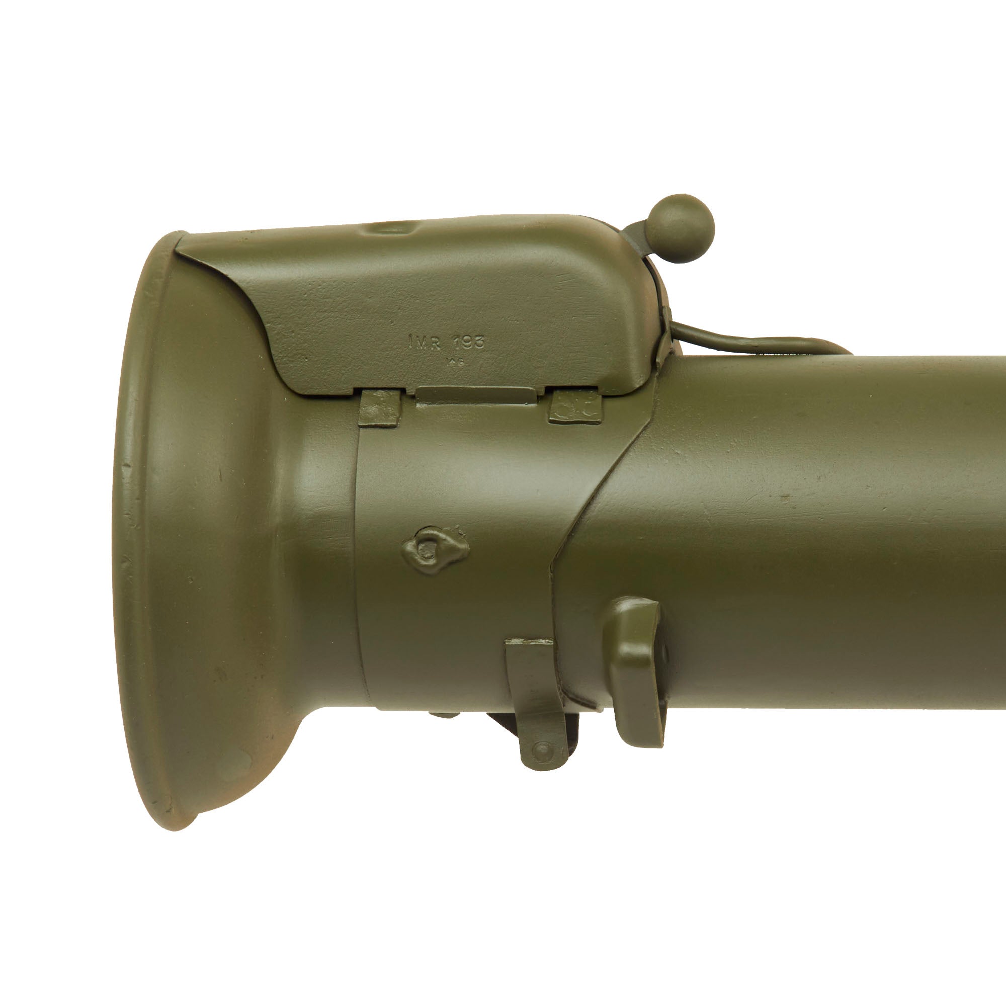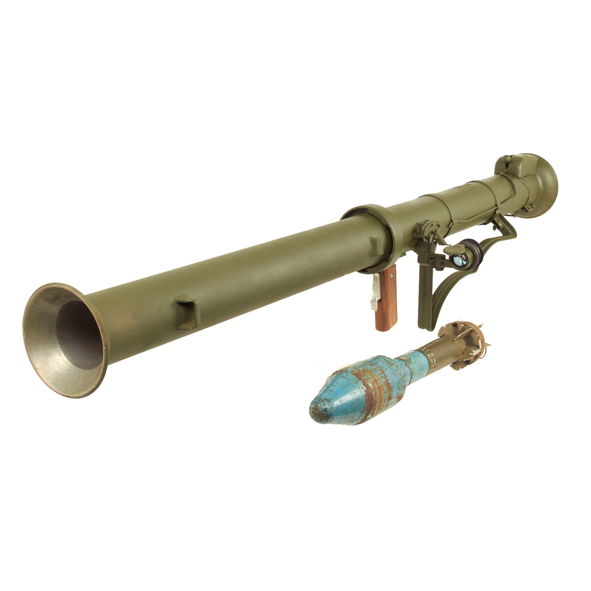 This example is not one of many made under license by R.F.I. in India, and is definitely the real U.S. Issue. The loading switch still moves and the bazooka breaks down correctly, making this a great display piece. Only issues to note are that the optical sight is VERY stiff when folding down, and the locking tab on the center joint is missing. The spring loaded catch for attaching the front tube to the side of the rear is also missing.