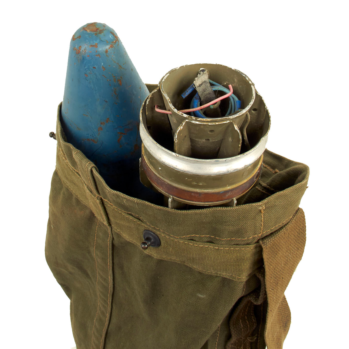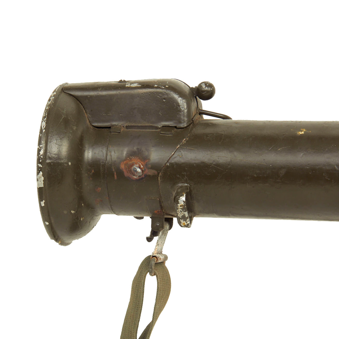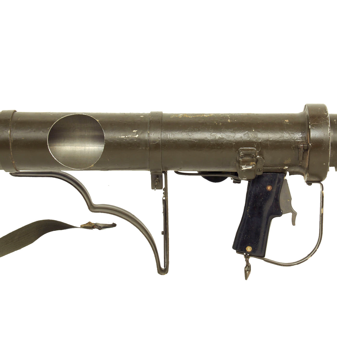 Comes complete with original optical sight and post war paint as well as TWO 1953 dated practice rounds and a second pattern M6 rocket bag dated 1945 ! Light weight and assembles to approximately 60 inches in overall length.