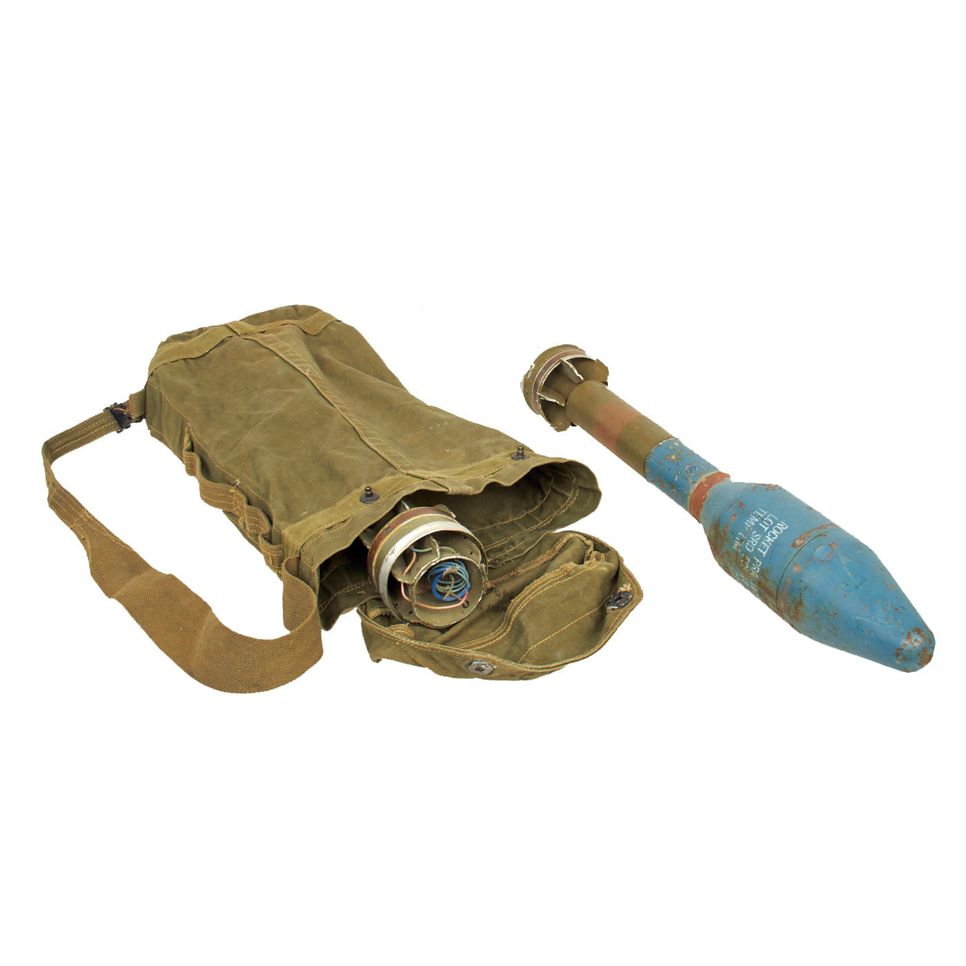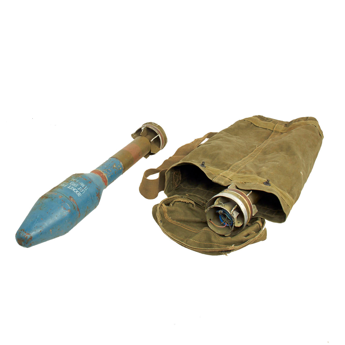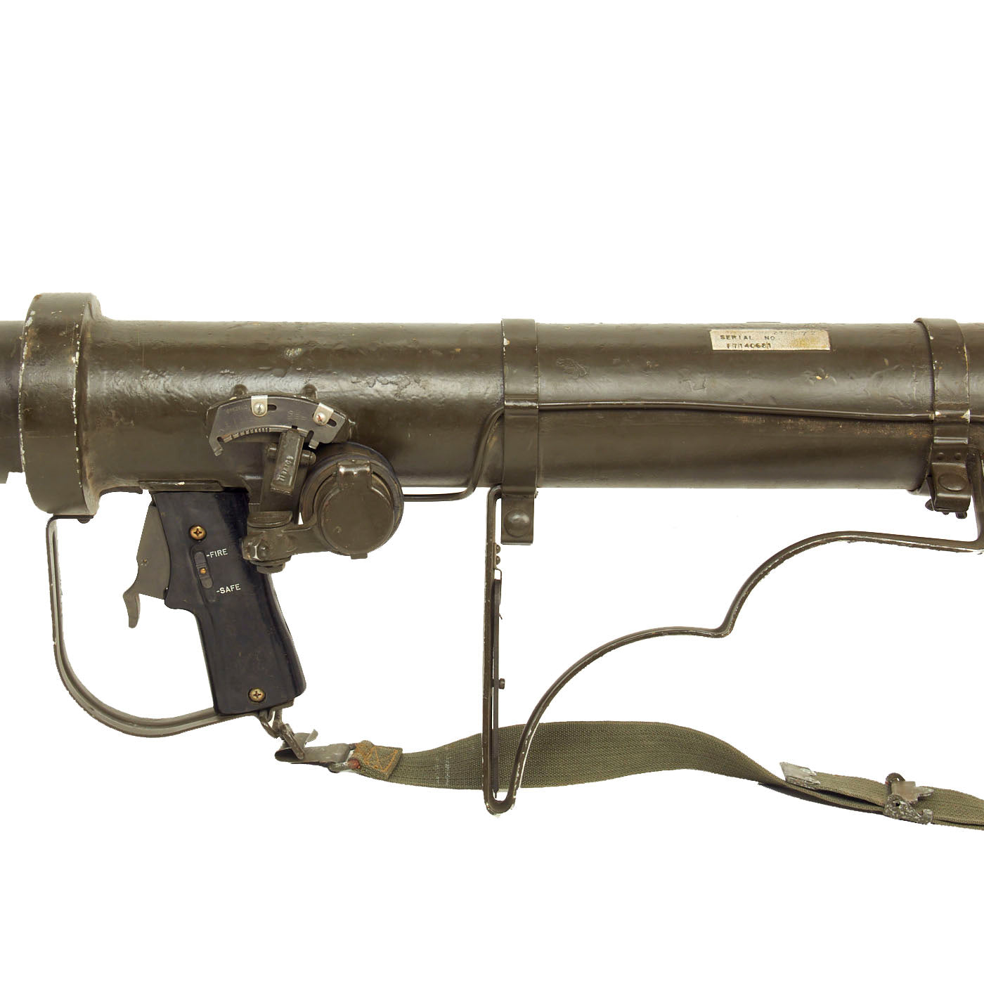 Comes complete with original optical sight and post war paint as well as TWO 1953 dated practice rounds and a second pattern M6 rocket bag dated 1945 ! Light weight and assembles to approximately 60 inches in overall length.