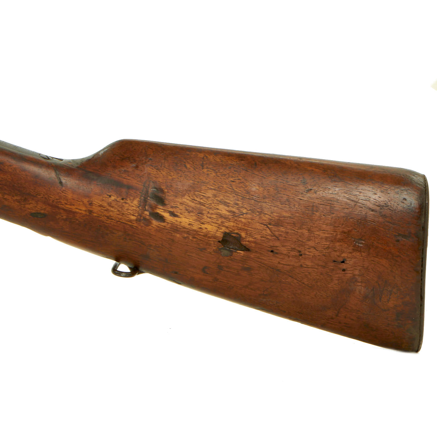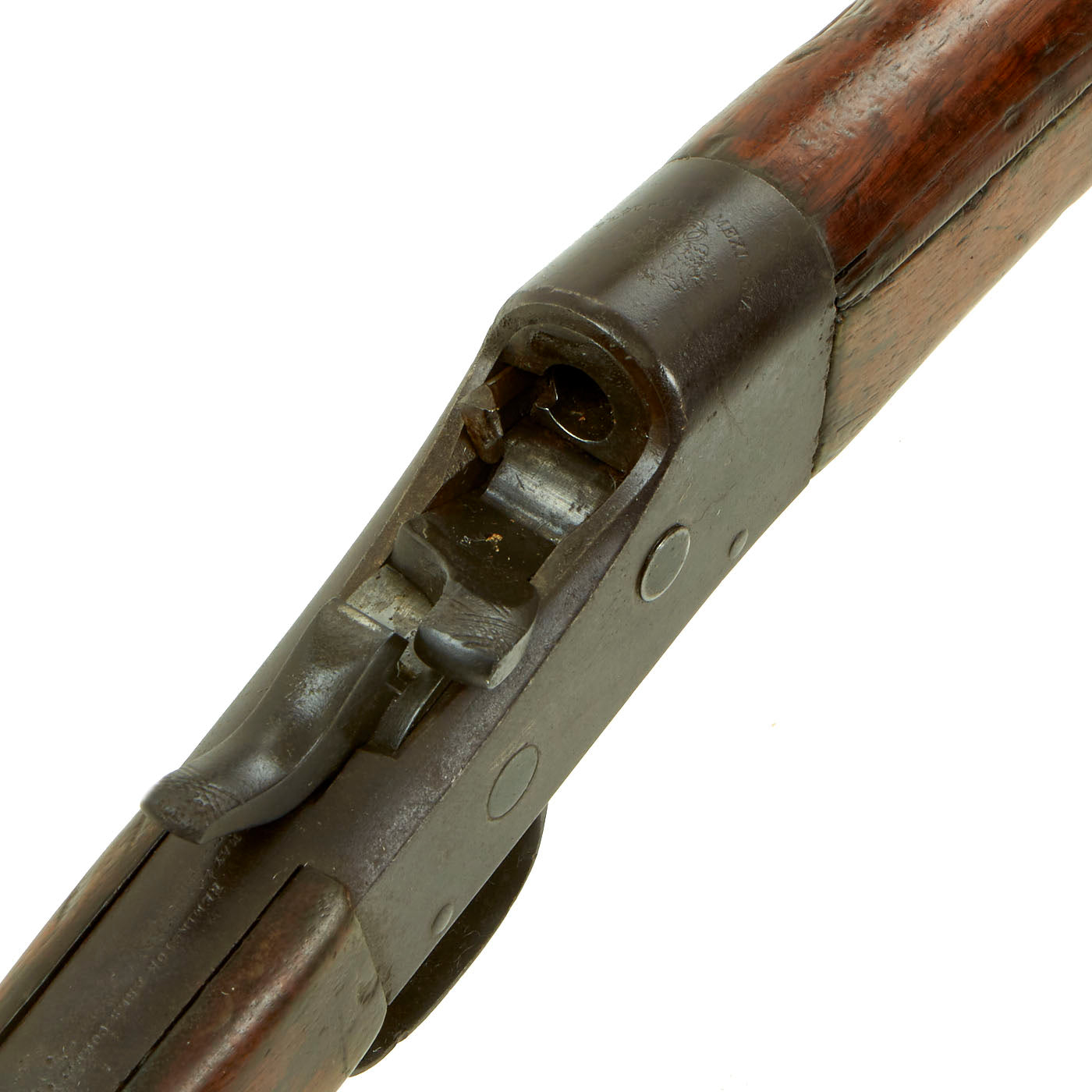This is a very nice service used example of a Mexican Contract M1897 Remington Rolling block., which came to us a bit worse for wear, but has now been cleaned to put it in its best light. It has the correct REPUBLICA MEXICANA marking on the breech ring of the receiver, over the Mexican Coat of Arms. This was produced during the era of Mexican history known as the Porfiriato, when when General Porfirio Díaz ruled Mexico as president in the late 19th and early 20th centuries.