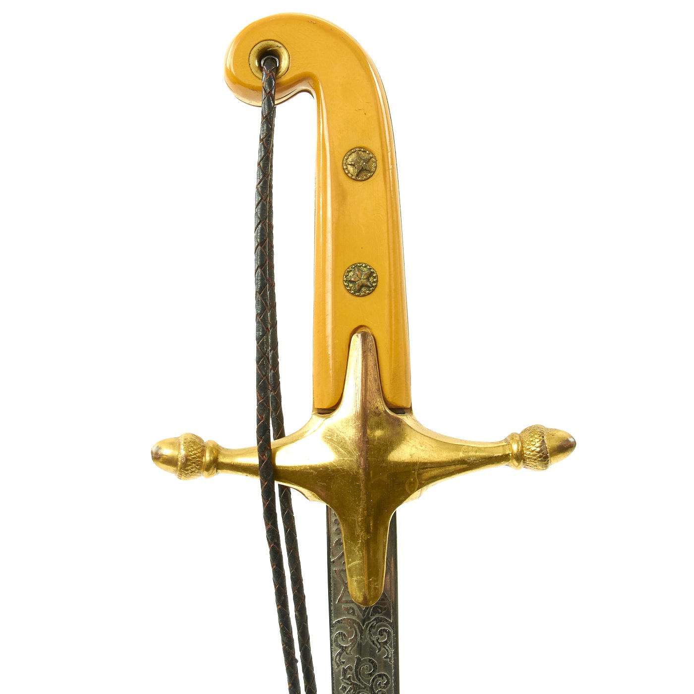 Original Item: One-of-a-kind. This is an incredible WWII era USMC Mameluke Officer Sword Named to U.S. Marine Corps First Lieutenant Keigler E. Flake. It even still has the original leather sword knot! Lt. Flake's Silver Star Citation for actions during the WWII New Britain action can be found at this link. It reads: