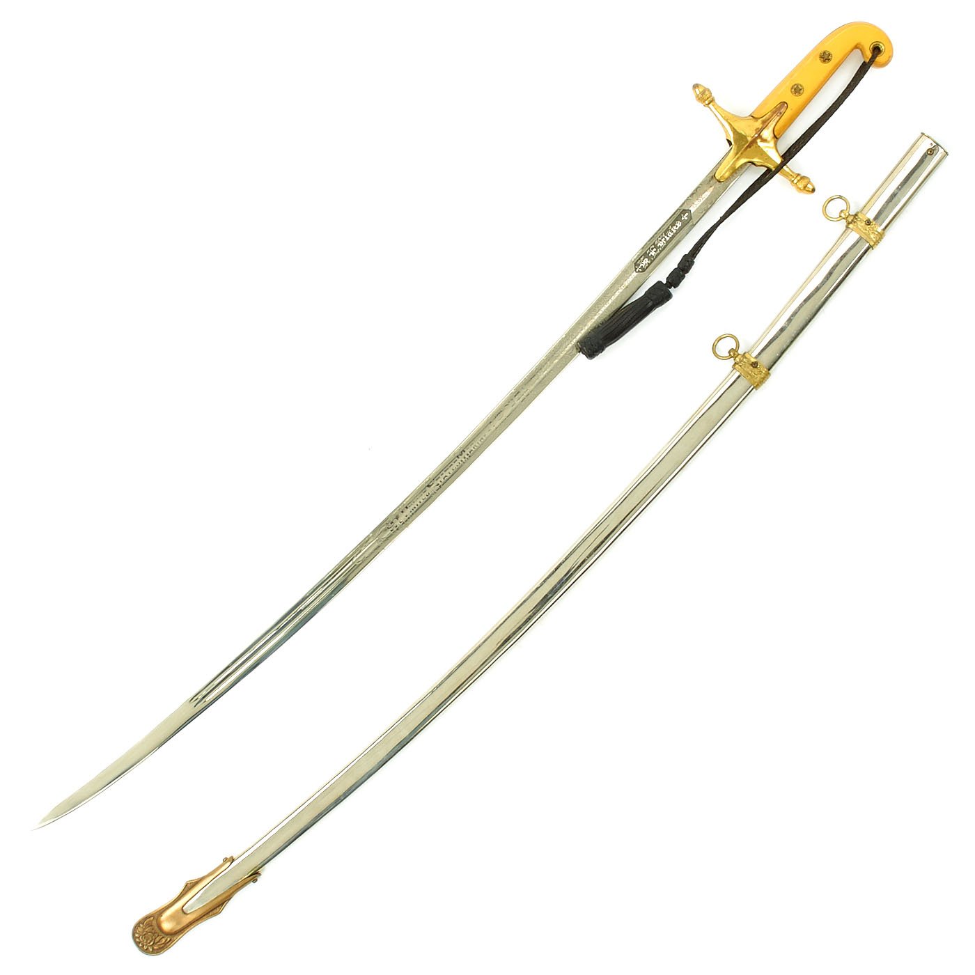 Marine Corps history states that a sword of this type was presented to Marine First Lieutenant Presley O'Bannon by the Ottoman Empire viceroy, Prince Hamet, on December 8, 1805, during the First Barbary War, in Libya, as a gesture of respect and praise for the Marines' actions at the Battle of Derna (1805). Upon his return to the United States, the state of Virginia presented him with a silver-hilted sword featuring an eaglehead hilt and a curved blade modeled after the original Mameluke sword given to him by Hamet. Its blade is inscribed with his name and a commemoration of the Battle of Tripoli Harbor.