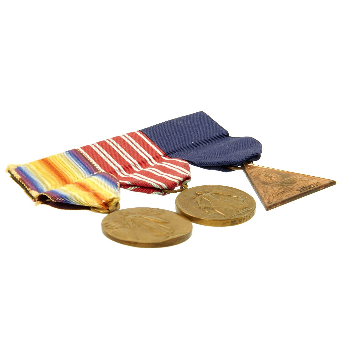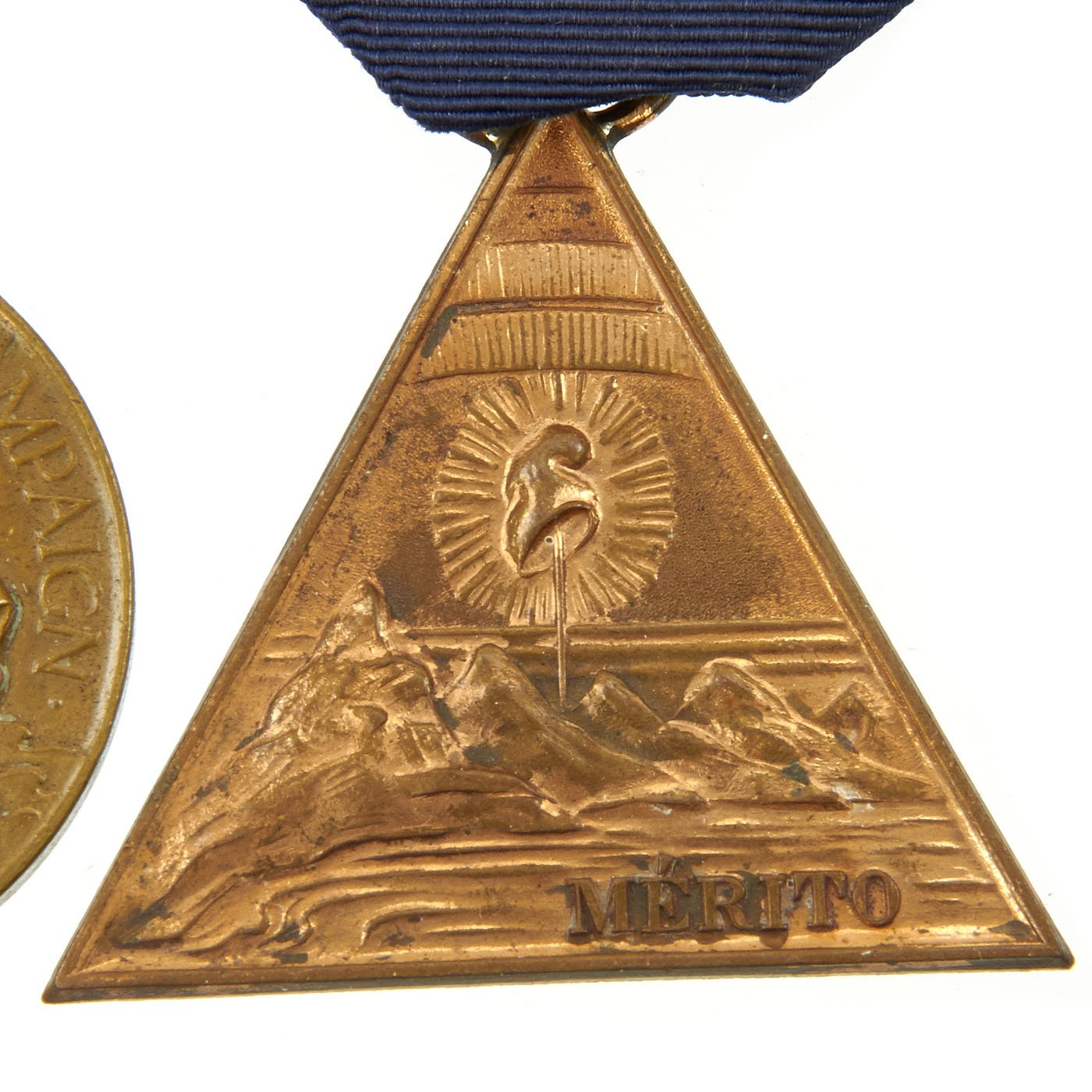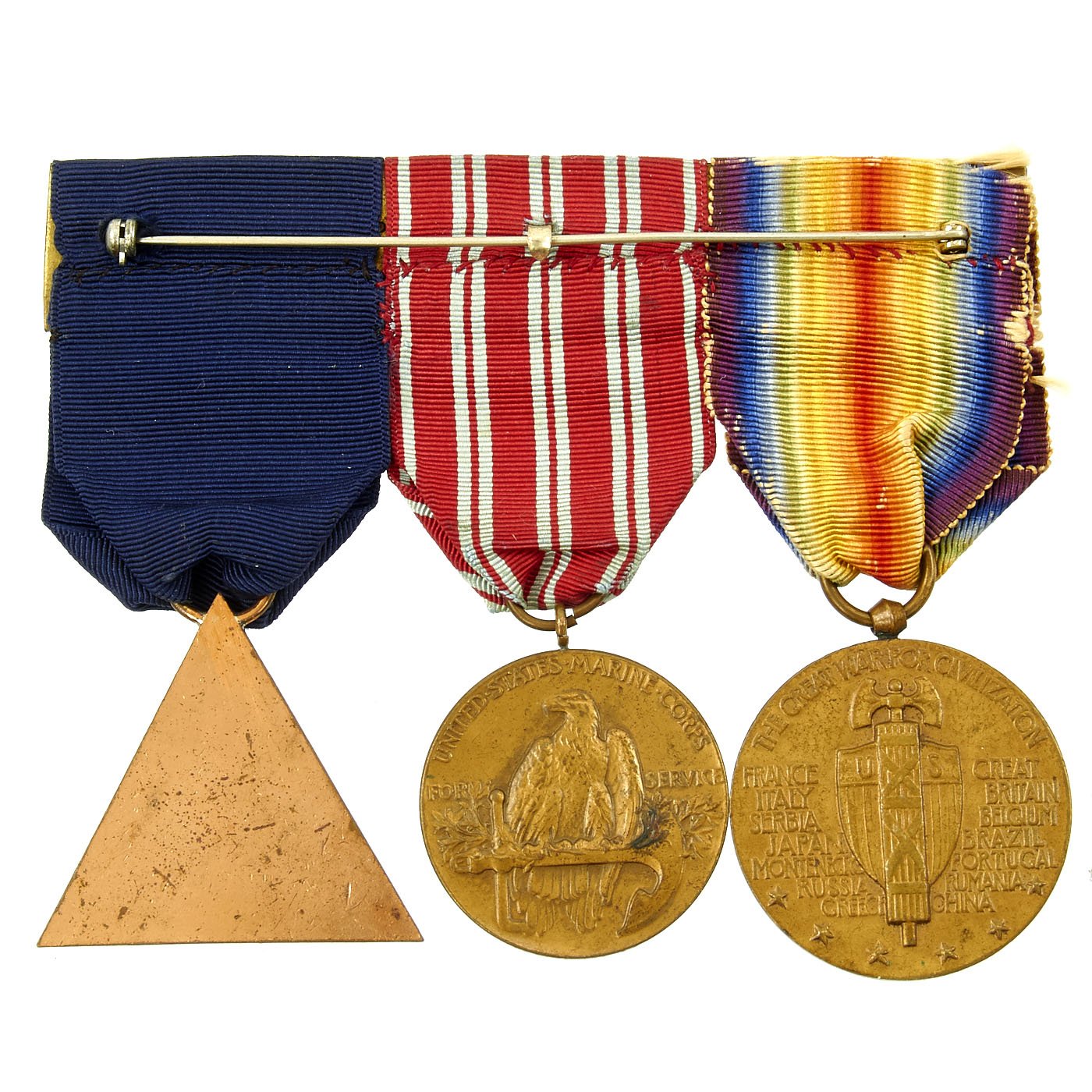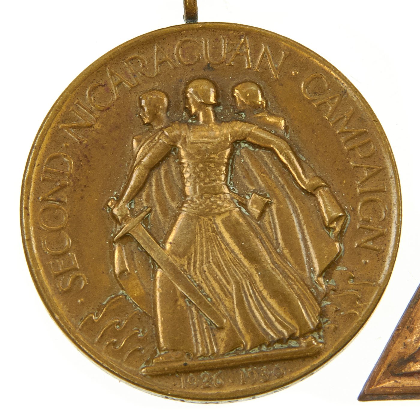 Original Items: One-of-a-kind Set. This is a set of original medals to a unknown Marine that served in the Great War and the 2nd Nicaraguan campaign. The set includes a medal bar with WWI Victory Medal, 2nd Nicaraguan Campaign Medal with rim number 108 and ultra rare Nicaragua Medal of Merit. Also included is a a pair of 1920s officer collar EGA insignia lapel pins and an original photo of a Marine Crops office with side arm drawn.