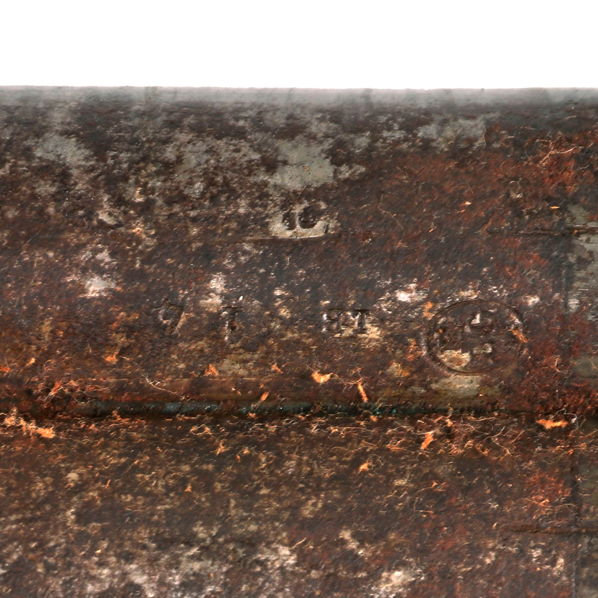 We can however still see an E / L G / * in an Oval proof, indicating manufacture in Liège, Belgium. This small country, which only gained independence in the early 19th century, had long been a firearms production powerhouse, with Liège being the center of manufacturing. Due to oxidation many markings are probably obscured, but we were able to see a CROWN / LB proof mark next to number 14, as well as 16.8, the bore measurement in millimeters.
