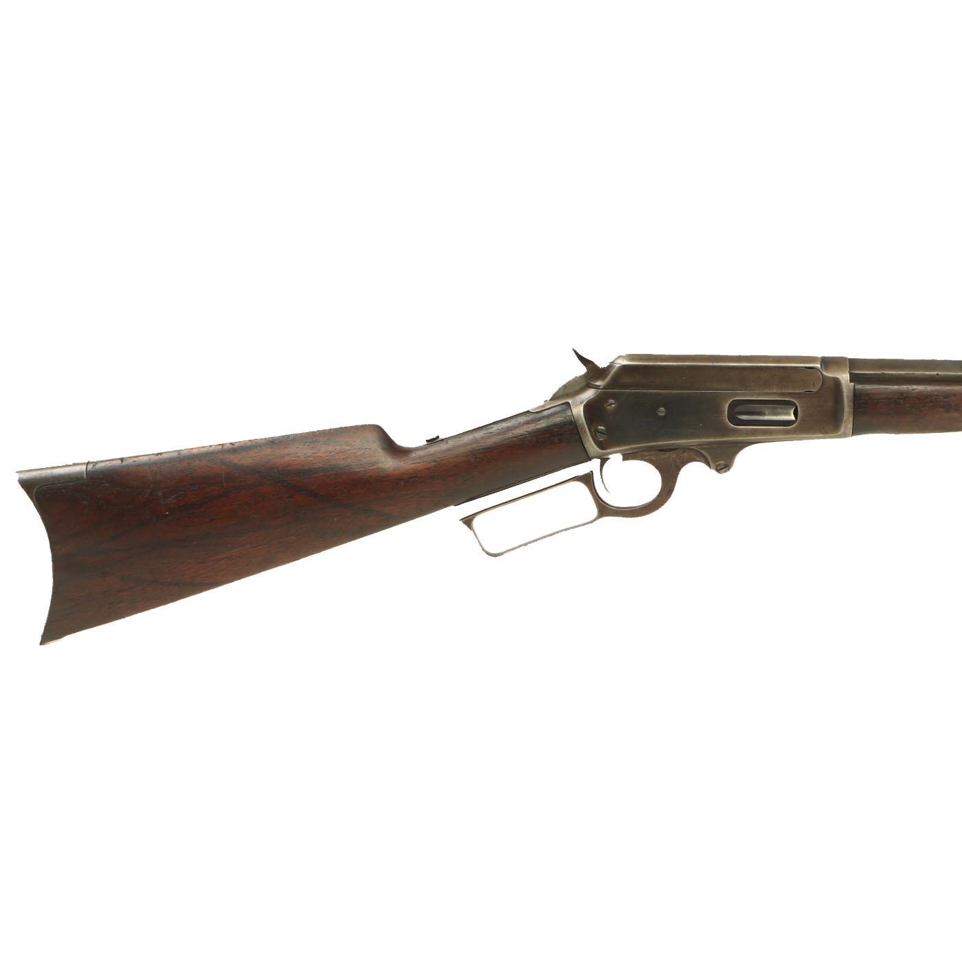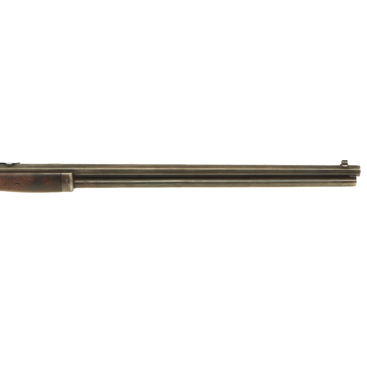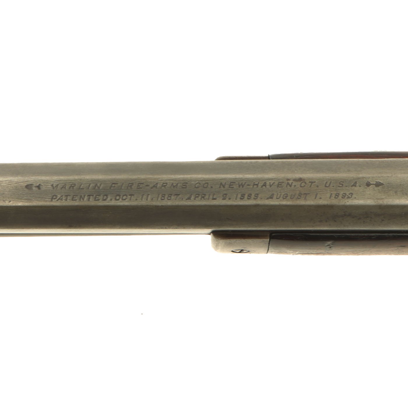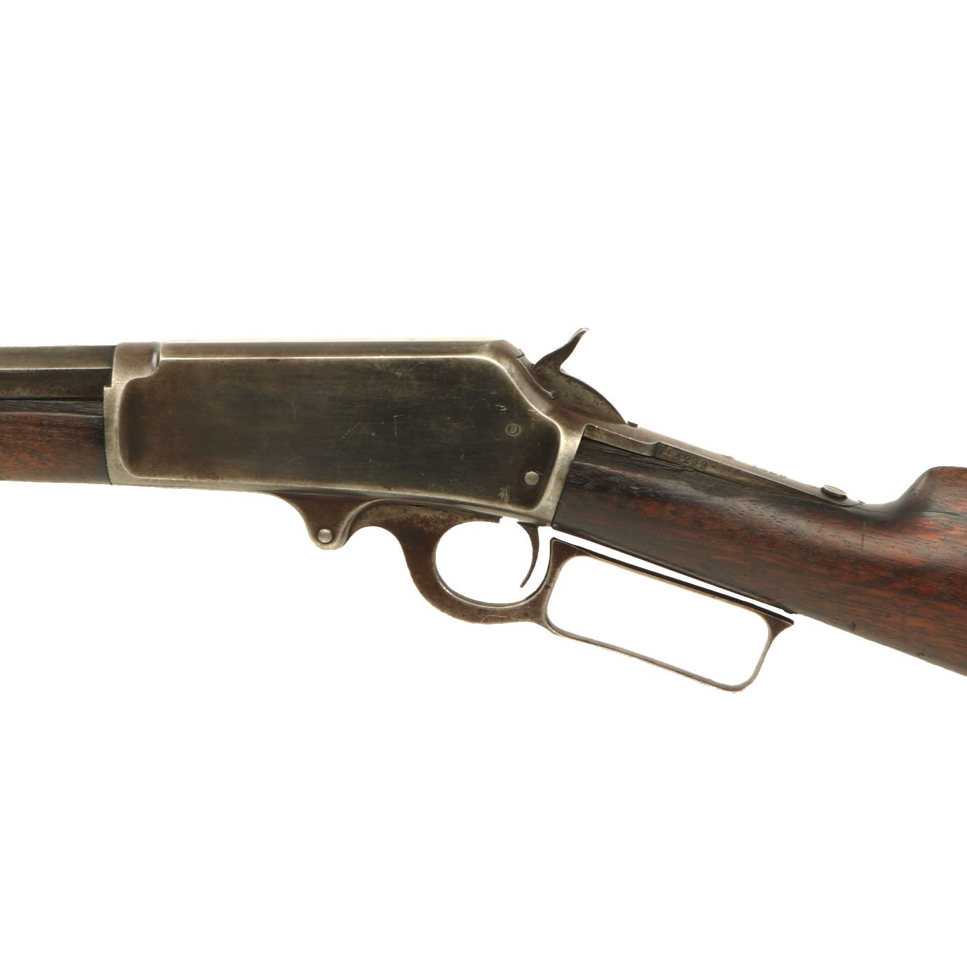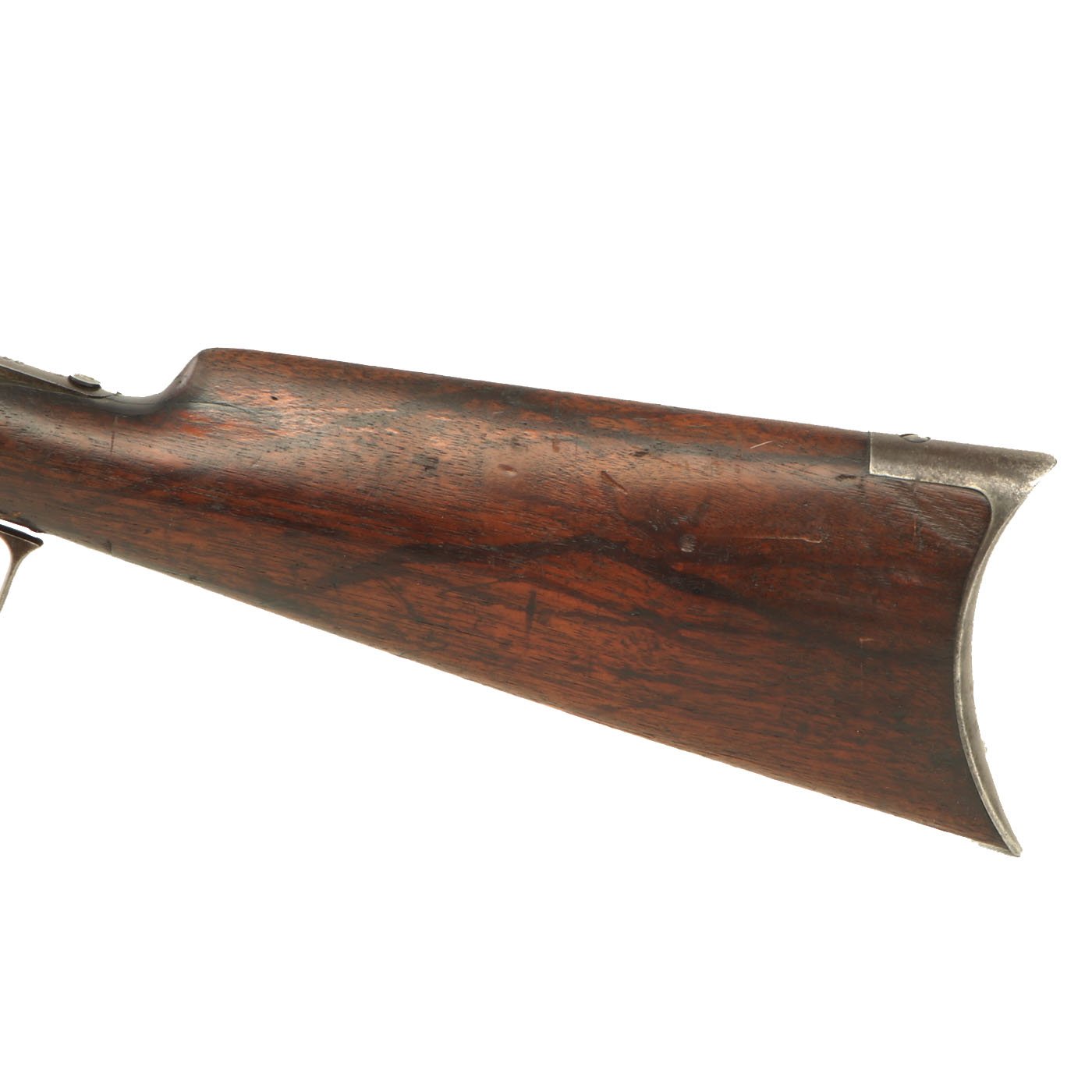 This classic '93 example is in .30-30 Winchester caliber (marked 30-30 over the Chamber), with a 26" octagonal barrel with some original bluing still intact along with traces of case hardening in places. The model 1893 was a refinement of the earlier "New Safety" Model 1889, which was he first solid-top receiver, lever action rifle with a side ejection that threw the fired cases, or live cartridges, to the right-hand side of the rifle as opposed to being thrown straight up and out of the gun.