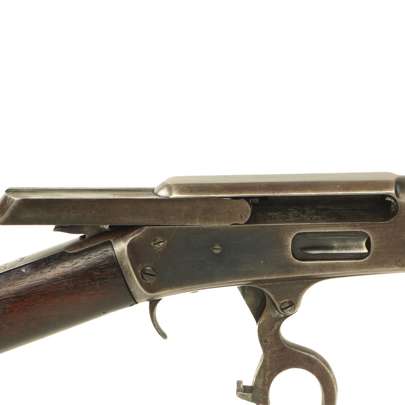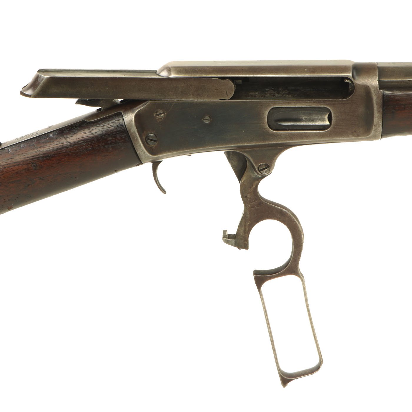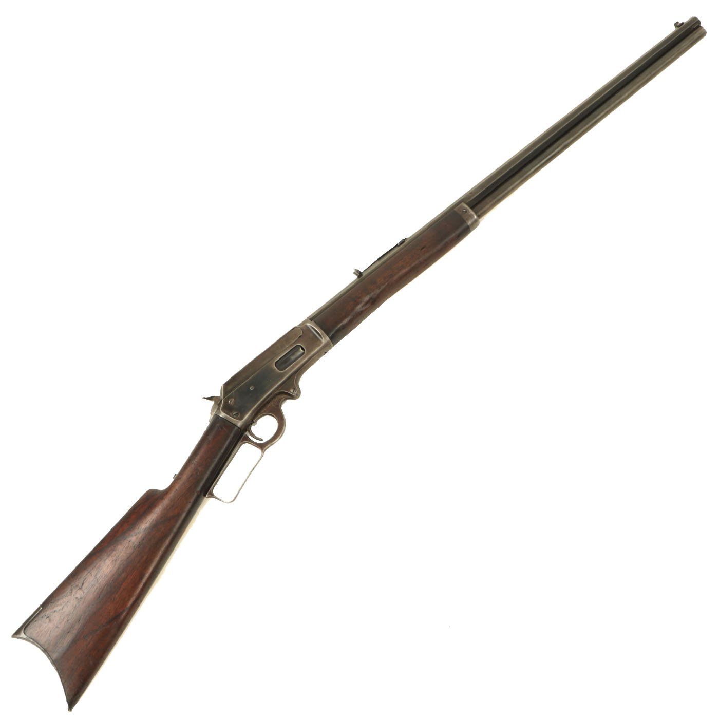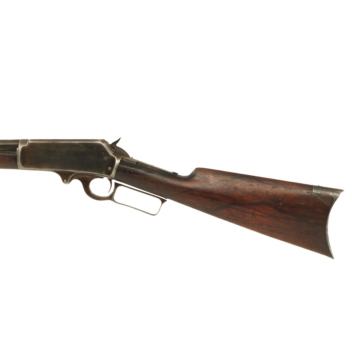 This classic '93 example is in .30-30 Winchester caliber (marked 30-30 over the Chamber), with a 26" octagonal barrel with some original bluing still intact along with traces of case hardening in places. The model 1893 was a refinement of the earlier "New Safety" Model 1889, which was he first solid-top receiver, lever action rifle with a side ejection that threw the fired cases, or live cartridges, to the right-hand side of the rifle as opposed to being thrown straight up and out of the gun.