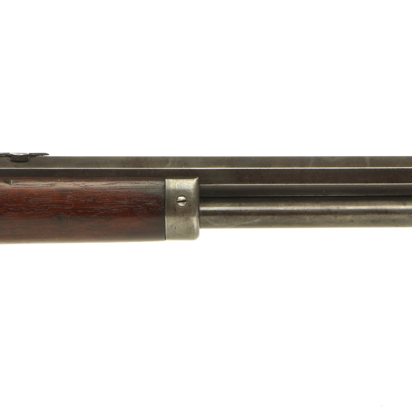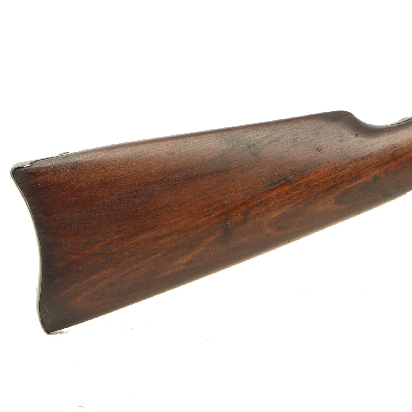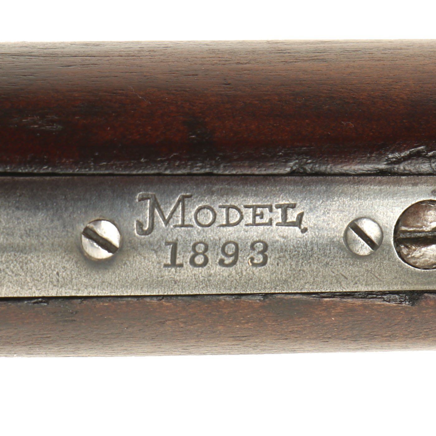This classic '93 example is in .38-55 Winchester caliber (marked 38-55 over the Chamber), with a 24" octagonal barrel and much original bluing still intact along with traces of case hardening in places. The model 1893 was a refinement of the earlier "New Safety" Model 1889, which was he first solid-top receiver, lever action rifle with a side ejection that threw the fired cases, or live cartridges, to the right-hand side of the rifle as opposed to being thrown straight up and out of the gun.