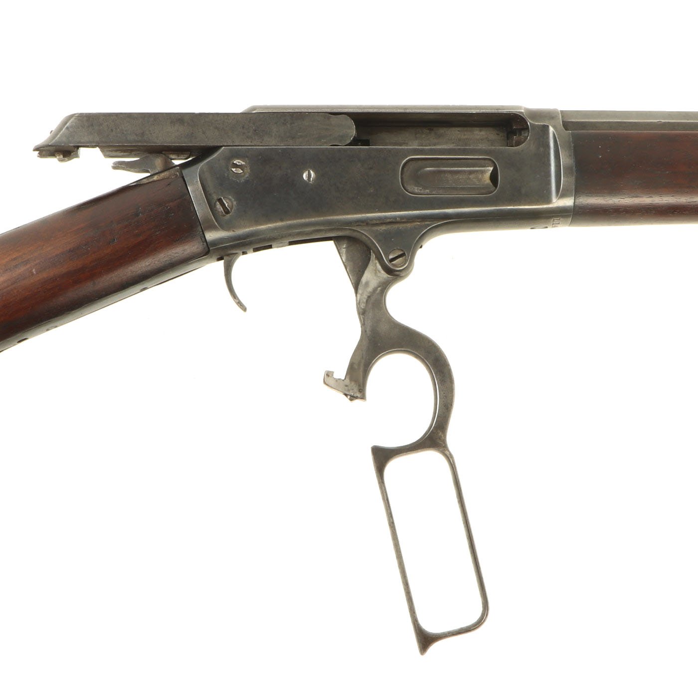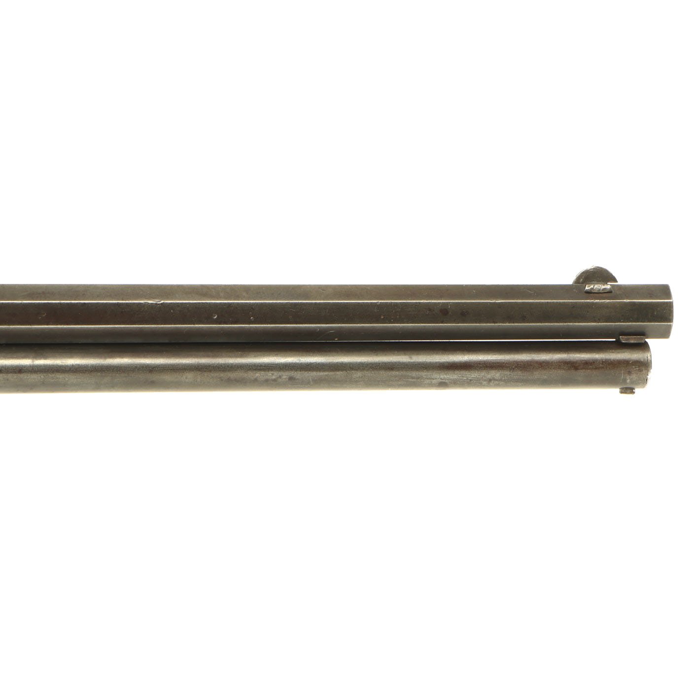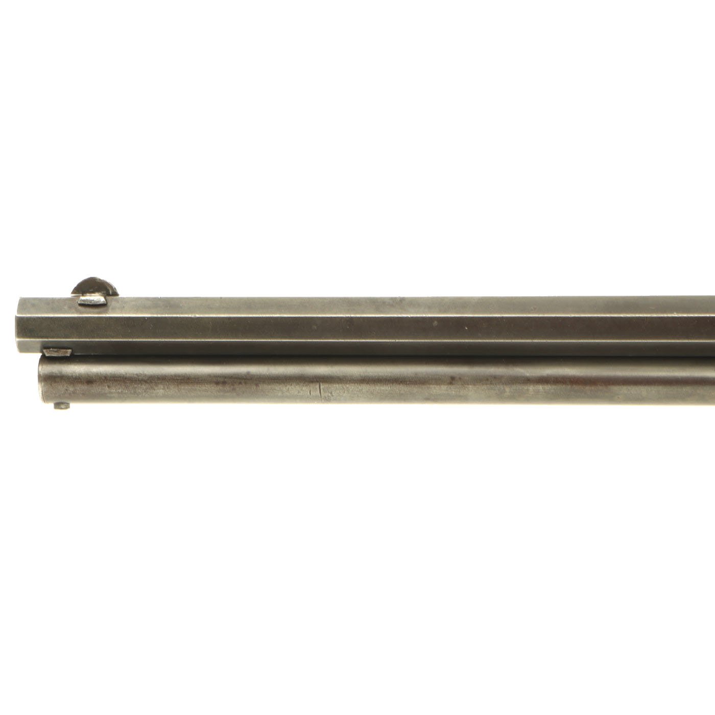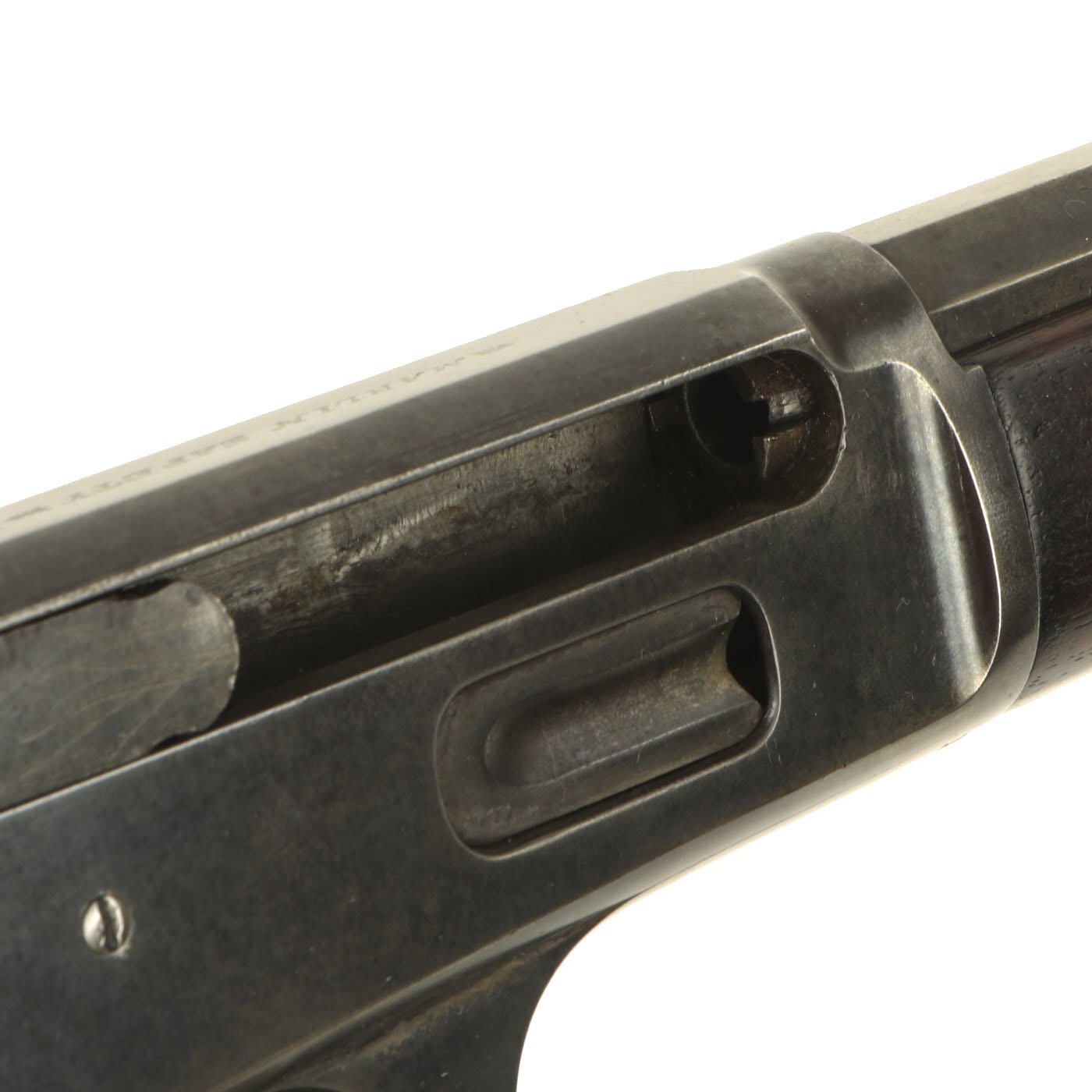 This classic '93 example is in .38-55 Winchester caliber (marked 38-55 over the Chamber), with a 24" octagonal barrel and much original bluing still intact along with traces of case hardening in places. The model 1893 was a refinement of the earlier "New Safety" Model 1889, which was he first solid-top receiver, lever action rifle with a side ejection that threw the fired cases, or live cartridges, to the right-hand side of the rifle as opposed to being thrown straight up and out of the gun.