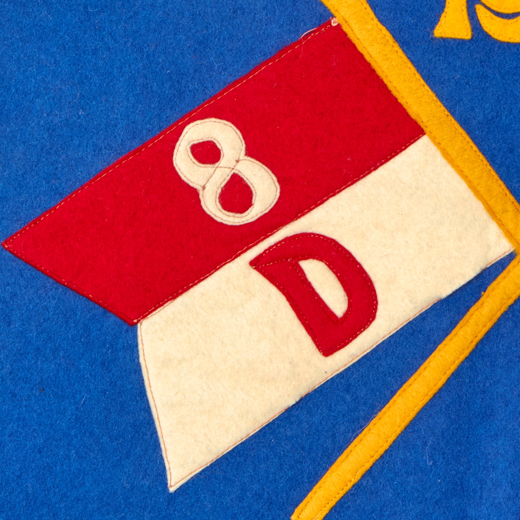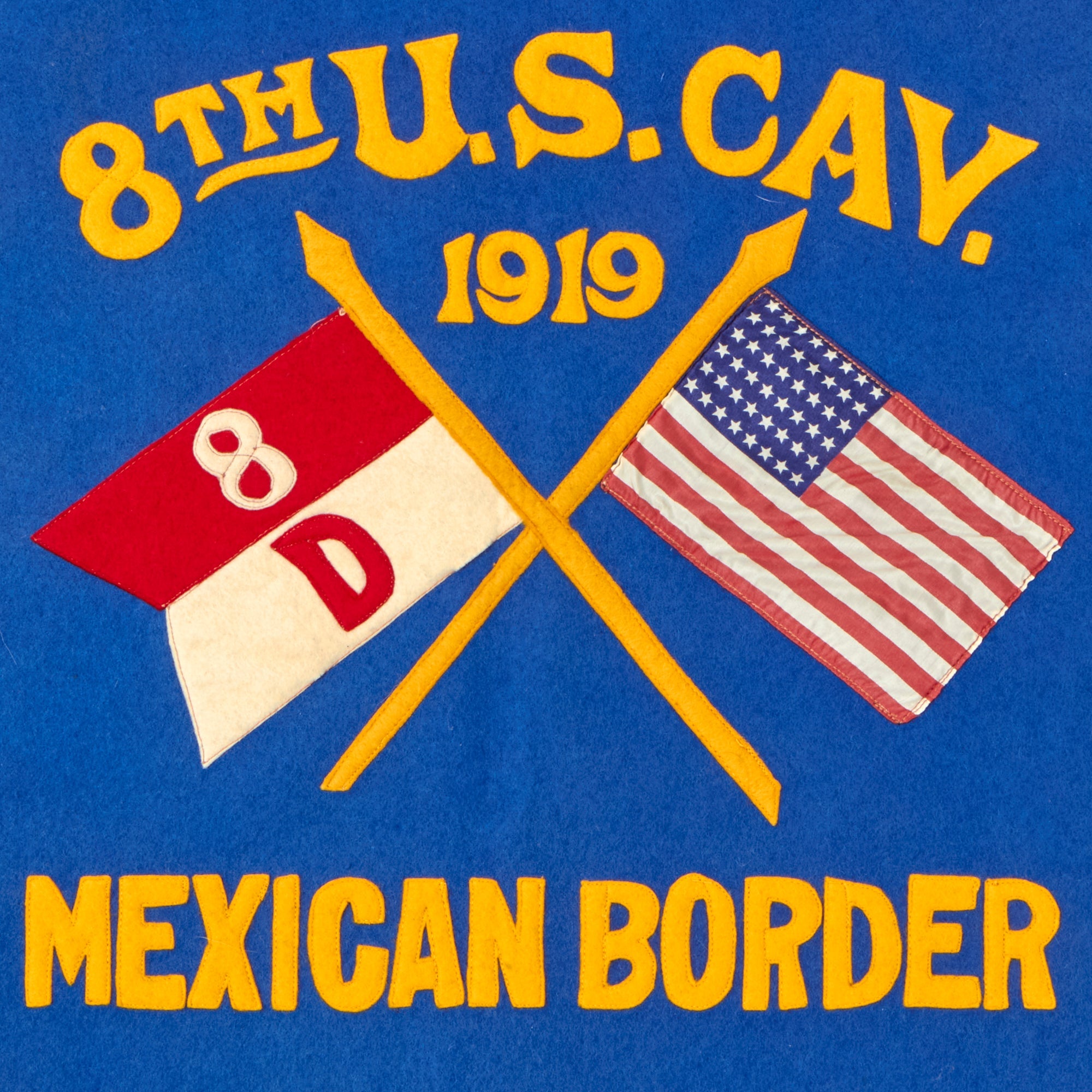 Original Item: Only One Available. This unique wall hanger is a stunning tribute to D Troop, 8th Cavalry Regiment's service during the Mexican Border War (1910-1919). The hanger is crafted with a combination of soft felt and elegant ribbons, and all the separate letterings are meticulously sewn together. The colors of the piece are still rich and vivid, adding to its beauty. Despite being a century old, the wall hanger shows no significant signs of wear and tear, suggesting that it was cherished and well-cared for over the years. It is truly a piece of history that would be a valuable addition to any collection.
